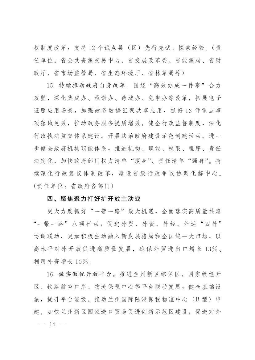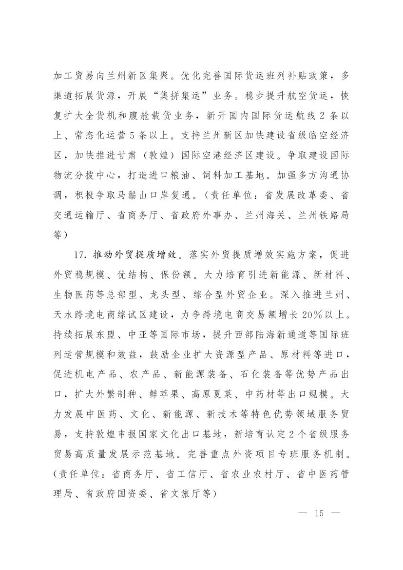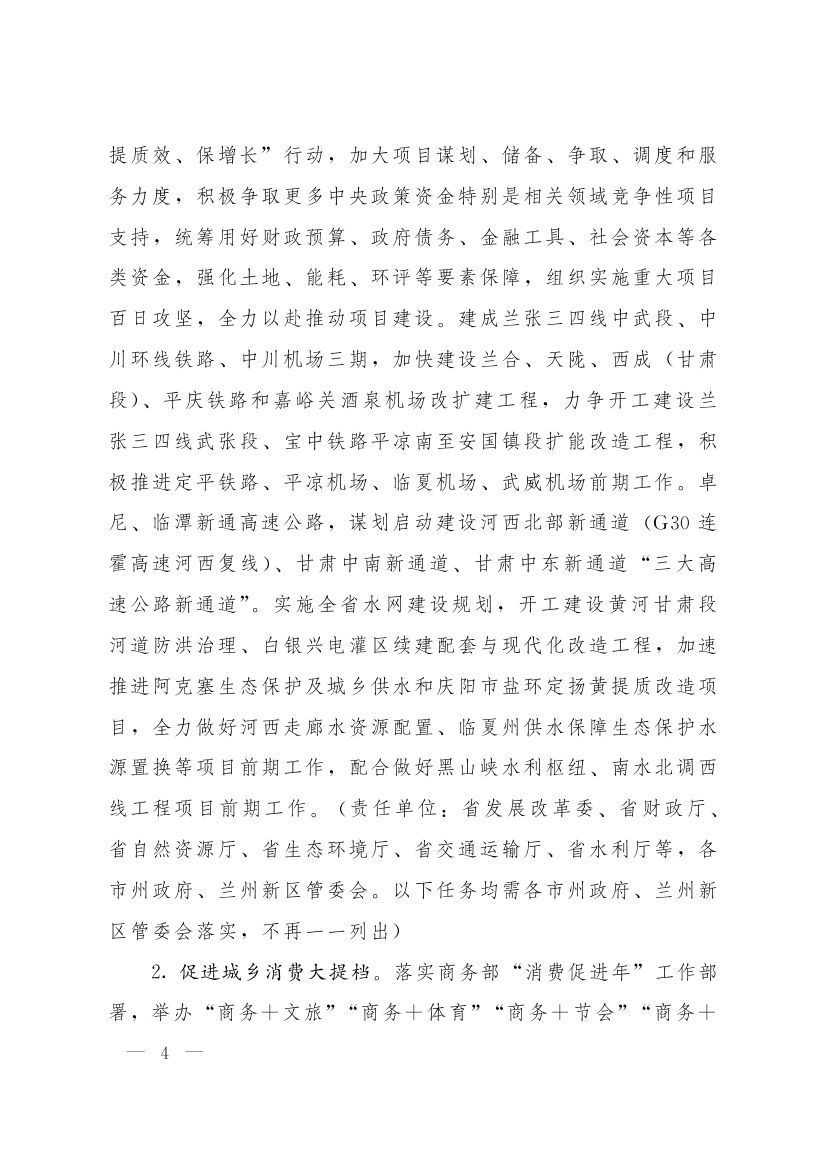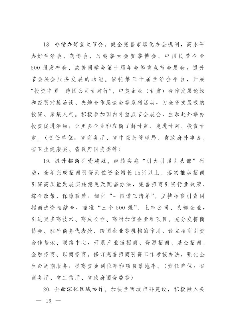 3月19日,甘肅省人民政府發(fā)布《甘肅省人民政府辦公廳關于印發(fā)全面貫徹落實省委經濟工作會議和省兩會精神聚焦聚力打好高質量發(fā)展“六場戰(zhàn)役”行動方案的通知》。 《通知》提出,要加快能源資源開發(fā)突破提升。推動新能源綜合開發(fā)利用示范區(qū)獲批實施。加快風光電大基地項目建設,全面啟動隴電入魯工程配套新能源項目,新增新能源并網裝機1200萬千瓦。爭取新開工建設抽水蓄能項目2—3個,新開工1000萬千瓦內用和外送煤電項目,新增新型儲能裝機200萬千瓦。推進電力外送通道建設,爭取隴電入魯工程早日建成投產,隴電入浙、隴電入川工程早日開工建設。 通知還提出要推動園區(qū)建設,打造一個新能源及新能源裝備制造國家級先進制造業(yè)產業(yè)集群。支持蘭州新區(qū)打造千億級綠色化工產業(yè)集群、百萬噸級新能源新材料“儲能之谷”。支持慶陽“東數西算”產業(yè)園建設。 壯大提升園區(qū)經濟增長極。推動項目向園區(qū)集中、產業(yè)向園區(qū)集聚,充分發(fā)揮鏈主企業(yè)帶動作用,吸引14條重點產業(yè)鏈龍頭企業(yè)和配套企業(yè),建設一批“飛地經濟”產業(yè)園。打造特色優(yōu)勢產業(yè)集群,爭創(chuàng)石化化工、冶金有色、新能源及新能源裝備制造等3個國家級先進制造業(yè)產業(yè)集群,打造裝備制造、數字經濟、生物醫(yī)藥、醫(yī)療裝備等省級先進制造業(yè)集群,培育認定5個省級中小企業(yè)特色產業(yè)集群。支持蘭州新區(qū)打造千億級綠色化工產業(yè)集群、百萬噸級新能源新材料“儲能之谷”。支持蘭州新區(qū)、蘭白經濟區(qū)承接產業(yè)轉移示范區(qū)重點園區(qū)基礎設施、公共服務平臺建設,提升產業(yè)承載能力。支持金昌經開區(qū)打造全國重要的有色金屬新材料基地和新能源電池及電池材料供應基地。支持慶陽“東數西算”產業(yè)園建設。 通知全文如下: