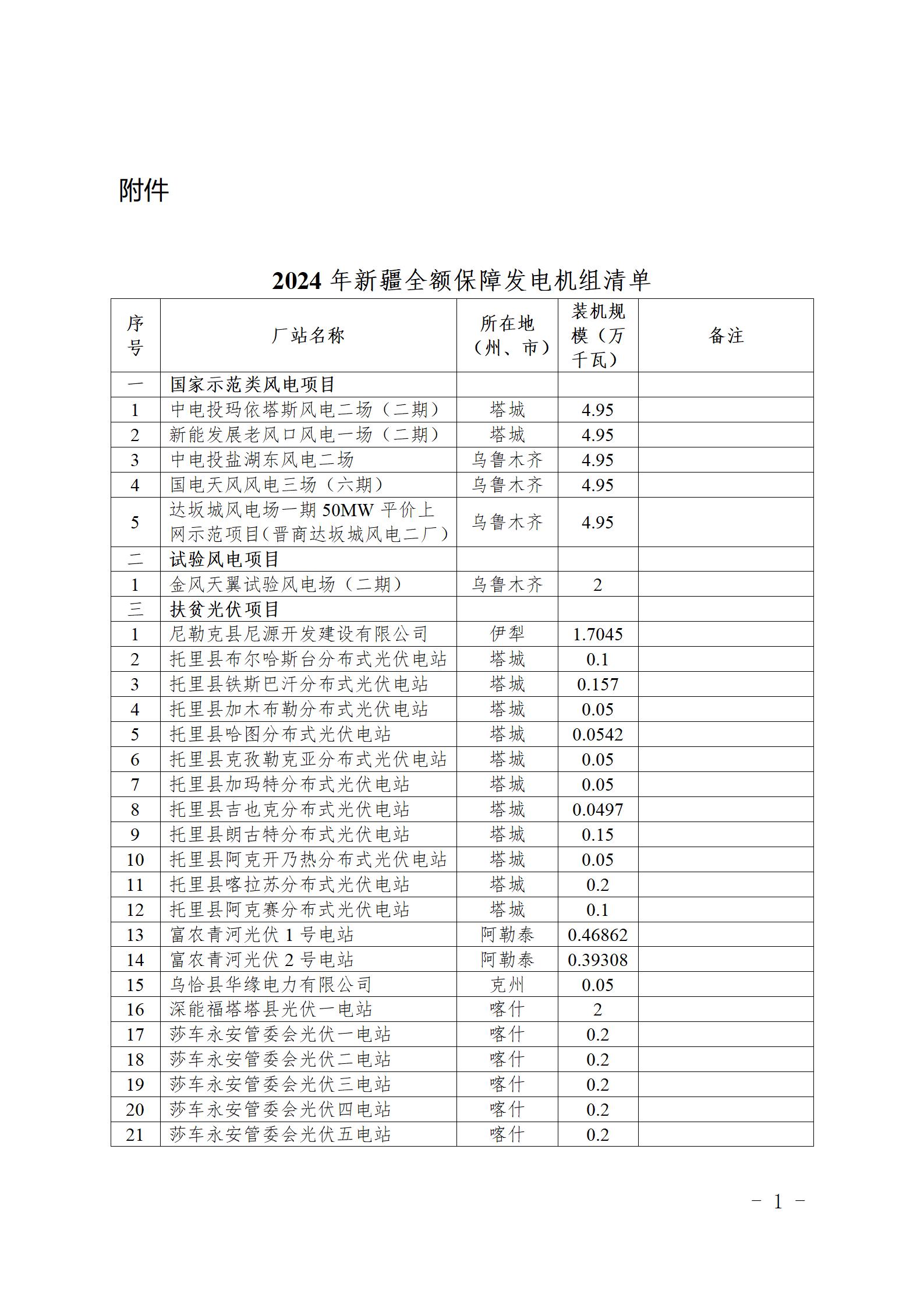 4月7日,新疆自治區(qū)發(fā)展改革委關于自治區(qū)2024年全額保障發(fā)電機組清單的公示。 根據(jù)公示,新疆2024年新疆全額保障發(fā)電機組清單包括國家示范類風電項目、試驗風電項目、扶貧光伏項目、分布式光伏項目、國家示范光熱項目、非省調水電機組、省調直調水電機組。其中,光伏項目規(guī)??傆嫗?75.79MW。 全文見下: 自治區(qū)發(fā)展改革委關于自治區(qū)2024年全額保障發(fā)電機組清單的公示 根據(jù)《國家發(fā)展改革委關于印發(fā)〈可再生能源發(fā)電全額保障性收購管理辦法〉的通知》(發(fā)改能源〔2016〕625號)和《國家發(fā)展改革委關于進一步深化燃煤發(fā)電上網(wǎng)電價市場化改革的通知》(發(fā)改價格〔2021〕1439號)等文件要求,現(xiàn)將自治區(qū)2024年全額保障發(fā)電機組清單進行公示(具體詳見附件),接受社會監(jiān)督。 公示期為2024年4月7日至4月16日。如有異議,請在公示期間將有關情況書面(或以傳真方式)反饋自治區(qū)發(fā)展和改革委員會;公示期滿無異議的,公示內容自動生效。 聯(lián)系人:彭莎莎 電話:0991-2819333,2823713(傳真) 地 址:烏魯木齊市天山區(qū)明德路102號 郵編:830002 自治區(qū)發(fā)展改革委 2024年4月7日 附件:自治區(qū)2024年全額保障發(fā)電機組清單