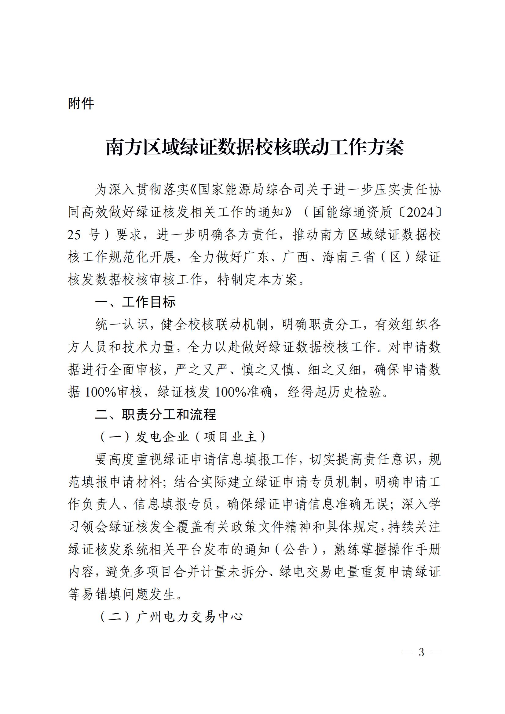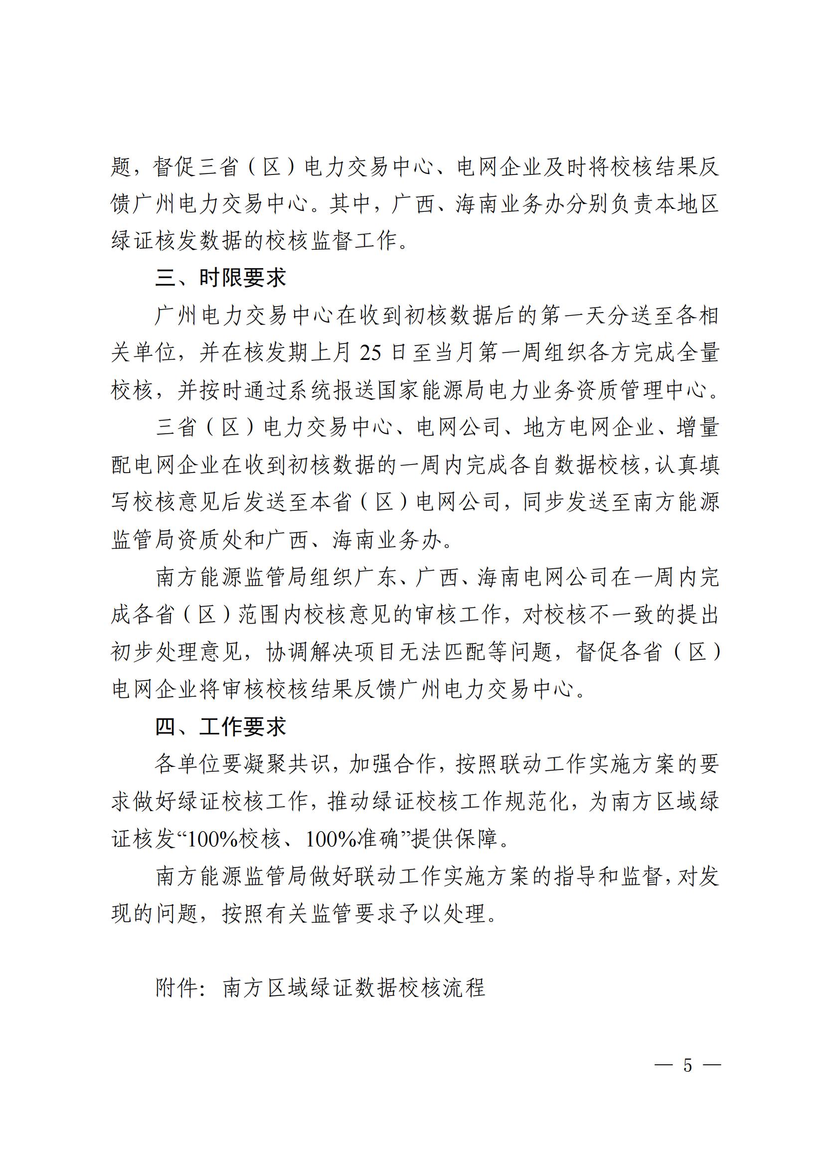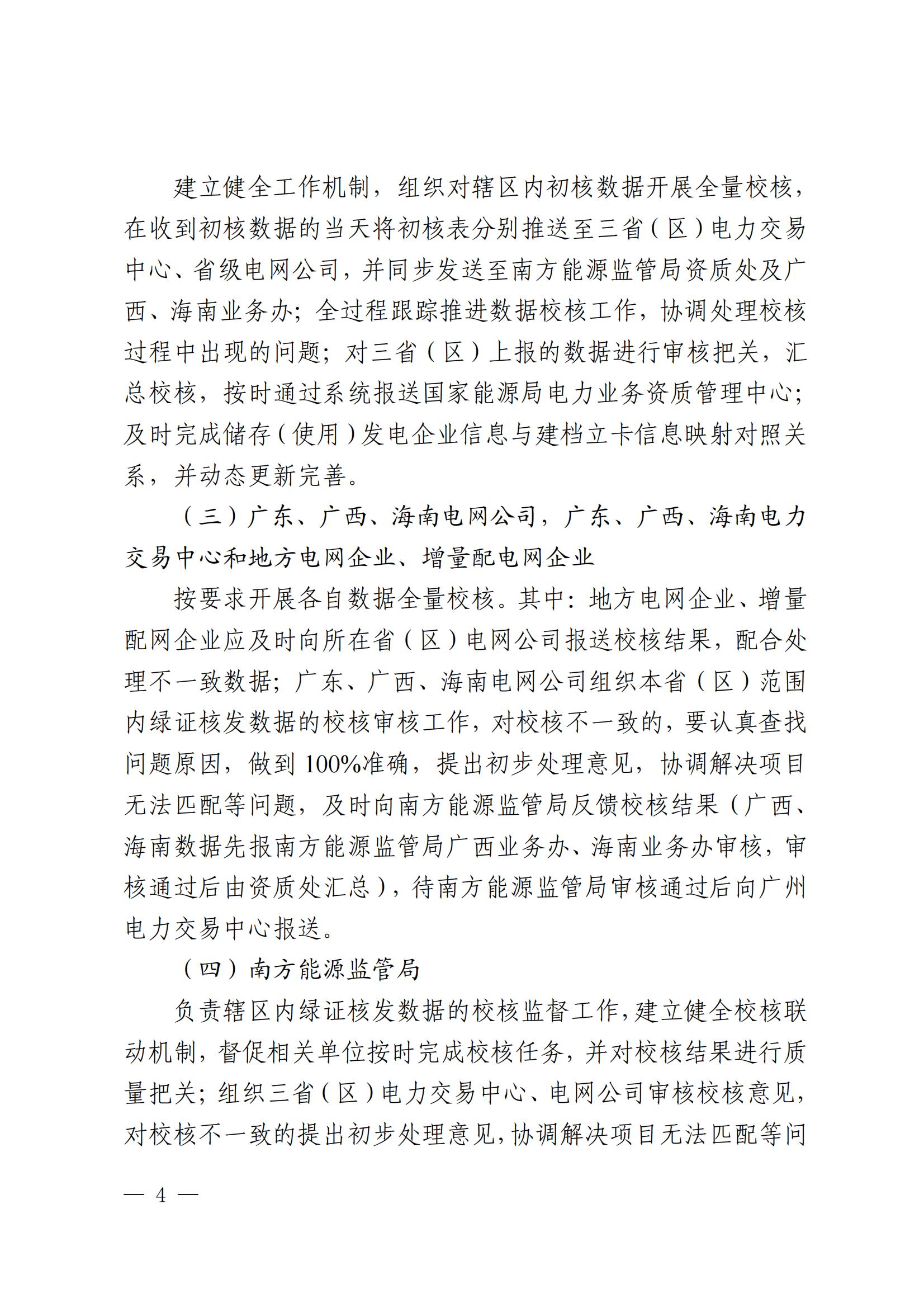4月10日,南方能源監(jiān)管局印發(fā)《南方三?。▍^(qū))綠證數(shù)據(jù)校核聯(lián)動(dòng)工作實(shí)施方案》的通知,通知指出,按要求開(kāi)展各自數(shù)據(jù)全量校核。其中:地方電網(wǎng)企業(yè)、增量配網(wǎng)企業(yè)應(yīng)及時(shí)向所在?。▍^(qū))電網(wǎng)公司報(bào)送校核結(jié)果,配合處理不一致數(shù)據(jù);廣東、廣西、海南電網(wǎng)公司組織本?。▍^(qū))范圍 內(nèi)綠證核發(fā)數(shù)據(jù)的校核審核工作,對(duì)校核不一致的,要認(rèn)真查找 問(wèn)題原因,做到100%準(zhǔn)確,提出初步處理意見(jiàn),協(xié)調(diào)解決項(xiàng)目 無(wú)法匹配等問(wèn)題,及時(shí)向南方能源監(jiān)管局反饋校核結(jié)果(廣西、 海南數(shù)據(jù)先報(bào)南方能源監(jiān)管局廣西業(yè)務(wù)辦、海南業(yè)務(wù)辦審核,審 核通過(guò)后由資質(zhì)處匯總),待南方能源監(jiān)管局審核通過(guò)后向廣州電力交易中心報(bào)送。 原文如下: