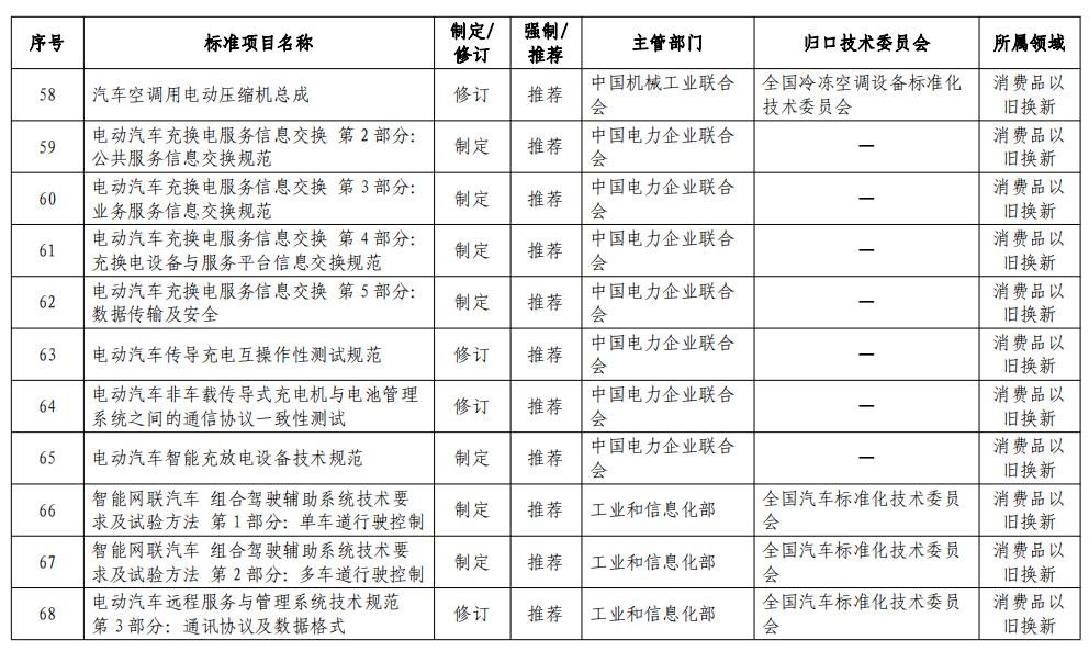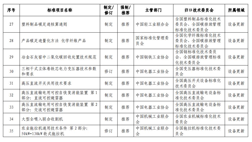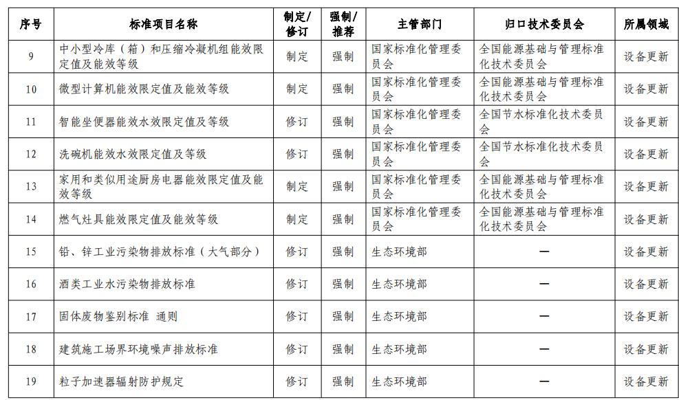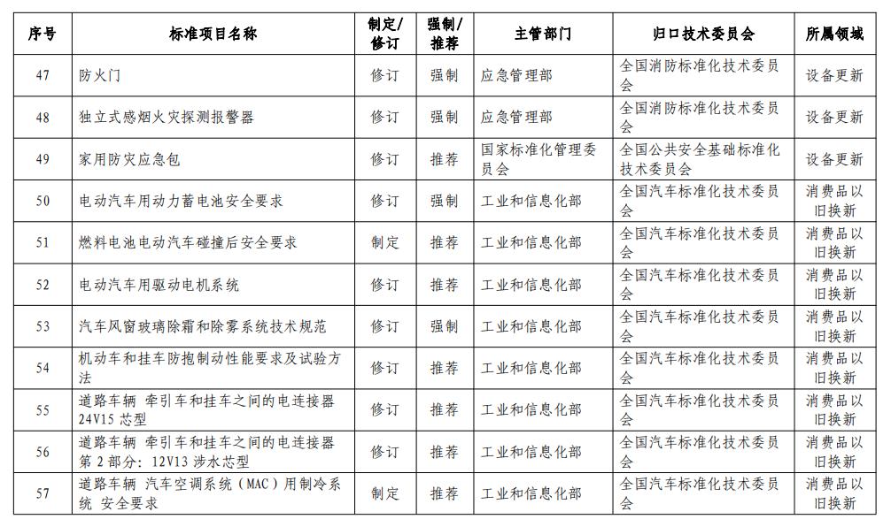 4月10日,市場(chǎng)監(jiān)管總局等七部門聯(lián)合印發(fā)了《以標(biāo)準(zhǔn)提升牽引設(shè)備更新和消費(fèi)品以舊換新的行動(dòng)方案》,方案強(qiáng)調(diào)堅(jiān)持標(biāo)準(zhǔn)引領(lǐng)、有序提升,強(qiáng)化標(biāo)準(zhǔn)比對(duì)、優(yōu)化體系建設(shè),要求加快制修訂節(jié)能降碳、環(huán)保、安全、循環(huán)利用等領(lǐng)域的標(biāo)準(zhǔn),推動(dòng)今明兩年完成制修訂294項(xiàng)重點(diǎn)國(guó)家標(biāo)準(zhǔn),推動(dòng)政策和標(biāo)準(zhǔn)更加協(xié)同配套,有力支撐設(shè)備更新和消費(fèi)品以舊換新。 具體工作任務(wù)安排包括以下四個(gè)方面的內(nèi)容: 一是加快能耗排放技術(shù)標(biāo)準(zhǔn)升級(jí),制修訂國(guó)家標(biāo)準(zhǔn)113項(xiàng),持續(xù)引領(lǐng)設(shè)備更新。抓緊制修訂一批能耗限額、家電及工業(yè)設(shè)備能效強(qiáng)制性國(guó)家標(biāo)準(zhǔn),優(yōu)化提升大氣、水等污染物排放標(biāo)準(zhǔn),加快完善碳排放核算、產(chǎn)品碳足跡標(biāo)準(zhǔn),推動(dòng)數(shù)控機(jī)床、農(nóng)機(jī)、工程機(jī)械等標(biāo)準(zhǔn)水平提升,筑牢安全生產(chǎn)、消防、工業(yè)產(chǎn)品安全等標(biāo)準(zhǔn)底線,助力先進(jìn)產(chǎn)能比重持續(xù)提升。 二是強(qiáng)化產(chǎn)品質(zhì)量安全標(biāo)準(zhǔn)提升,制修訂國(guó)家標(biāo)準(zhǔn)115項(xiàng),促進(jìn)消費(fèi)品以舊換新。加快推動(dòng)電動(dòng)汽車、智能網(wǎng)聯(lián)汽車、汽車售后服務(wù)等標(biāo)準(zhǔn)迭代升級(jí),加強(qiáng)傳統(tǒng)家電安全、新型家電、家電適老化等領(lǐng)域標(biāo)準(zhǔn)研制,制修訂智能家居互聯(lián)互通、家居產(chǎn)品質(zhì)量分級(jí)等標(biāo)準(zhǔn),加嚴(yán)人造板等裝飾裝修材料甲醛釋放量標(biāo)準(zhǔn),加大高端電子、民用無(wú)人機(jī)等領(lǐng)域標(biāo)準(zhǔn)供給,滿足人民群眾改善生活需要。 三是加大回收循環(huán)利用標(biāo)準(zhǔn)供給,制修訂國(guó)家標(biāo)準(zhǔn)66項(xiàng),有力推動(dòng)產(chǎn)業(yè)循環(huán)暢通。加大家電、家具、電子產(chǎn)品、風(fēng)電、光伏等綠色設(shè)計(jì)標(biāo)準(zhǔn)供給,出臺(tái)電子產(chǎn)品二手交易中信息清除方法、二手電子電器產(chǎn)品可用程度分級(jí)、二手車估值等標(biāo)準(zhǔn),加快健全重點(diǎn)產(chǎn)品回收、分揀、拆解、再生利用標(biāo)準(zhǔn),完善再生資源進(jìn)口的標(biāo)準(zhǔn)和政策,助力資源利用形成閉環(huán)。 四是完善標(biāo)準(zhǔn)實(shí)施配套措施,合力推動(dòng)標(biāo)準(zhǔn)落地見效。強(qiáng)化標(biāo)準(zhǔn)與財(cái)政支持等政策措施的協(xié)同。大力推進(jìn)綠色產(chǎn)品認(rèn)證、高端品質(zhì)認(rèn)證,向消費(fèi)者傳遞質(zhì)量信任。圍繞新能源汽車、電子電器、兒童用品等重點(diǎn)消費(fèi)品,加大缺陷調(diào)查和召回力度。建立消費(fèi)品質(zhì)量安全監(jiān)管目錄,加強(qiáng)質(zhì)量監(jiān)督和執(zhí)法,強(qiáng)化標(biāo)準(zhǔn)實(shí)施應(yīng)用,不斷提升產(chǎn)品質(zhì)量安全水平。 政策全文如下: 市場(chǎng)監(jiān)管總局等七部門關(guān)于印發(fā)《以標(biāo)準(zhǔn)提升牽引設(shè)備更新和消費(fèi)品以舊換新行動(dòng)方案》的通知 各省、自治區(qū)、直轄市人民政府,國(guó)務(wù)院各部委、各直屬機(jī)構(gòu): 《以標(biāo)準(zhǔn)提升牽引設(shè)備更新和消費(fèi)品以舊換新行動(dòng)方案》已經(jīng)國(guó)務(wù)院同意,現(xiàn)印發(fā)給你們,請(qǐng)認(rèn)真貫徹執(zhí)行。 市場(chǎng)監(jiān)管總局 國(guó)家發(fā)展改革委 工業(yè)和信息化部 生態(tài)環(huán)境部 住房城鄉(xiāng)建設(shè)部 商務(wù)部 應(yīng)急管理部 2024年3月27日 (此件公開發(fā)布) 以標(biāo)準(zhǔn)提升牽引設(shè)備更新和消費(fèi)品以舊換新行動(dòng)方案 為深入貫徹中央財(cái)經(jīng)委員會(huì)第四次會(huì)議精神,落實(shí)國(guó)務(wù)院《推動(dòng)大規(guī)模設(shè)備更新和消費(fèi)品以舊換新行動(dòng)方案》部署,實(shí)施新一輪標(biāo)準(zhǔn)提升行動(dòng),更好支撐設(shè)備更新和消費(fèi)品以舊換新,制定本行動(dòng)方案。 一、總體要求 以習(xí)近平新時(shí)代中國(guó)特色社會(huì)主義思想為指導(dǎo),全面貫徹落實(shí)黨的二十大和二十屆二中全會(huì)精神,完整、準(zhǔn)確、全面貫徹新發(fā)展理念,加快構(gòu)建新發(fā)展格局,著力推動(dòng)高質(zhì)量發(fā)展,統(tǒng)籌擴(kuò)大內(nèi)需和深化供給側(cè)結(jié)構(gòu)性改革,堅(jiān)持標(biāo)準(zhǔn)引領(lǐng)、有序提升,加快制修訂節(jié)能降碳、環(huán)保、安全、循環(huán)利用等領(lǐng)域標(biāo)準(zhǔn),積極轉(zhuǎn)化先進(jìn)適用的國(guó)際標(biāo)準(zhǔn),通過(guò)配套政策協(xié)同發(fā)力,強(qiáng)化標(biāo)準(zhǔn)實(shí)施應(yīng)用,最大程度釋放標(biāo)準(zhǔn)化效能。 ——堅(jiān)持突出重點(diǎn)、精準(zhǔn)發(fā)力。聚焦產(chǎn)業(yè)高質(zhì)量發(fā)展和人民美好生活需要的關(guān)鍵領(lǐng)域,選取重點(diǎn)標(biāo)準(zhǔn)加快開展制修訂工作,精準(zhǔn)服務(wù)支撐設(shè)備和消費(fèi)品更新?lián)Q代。 