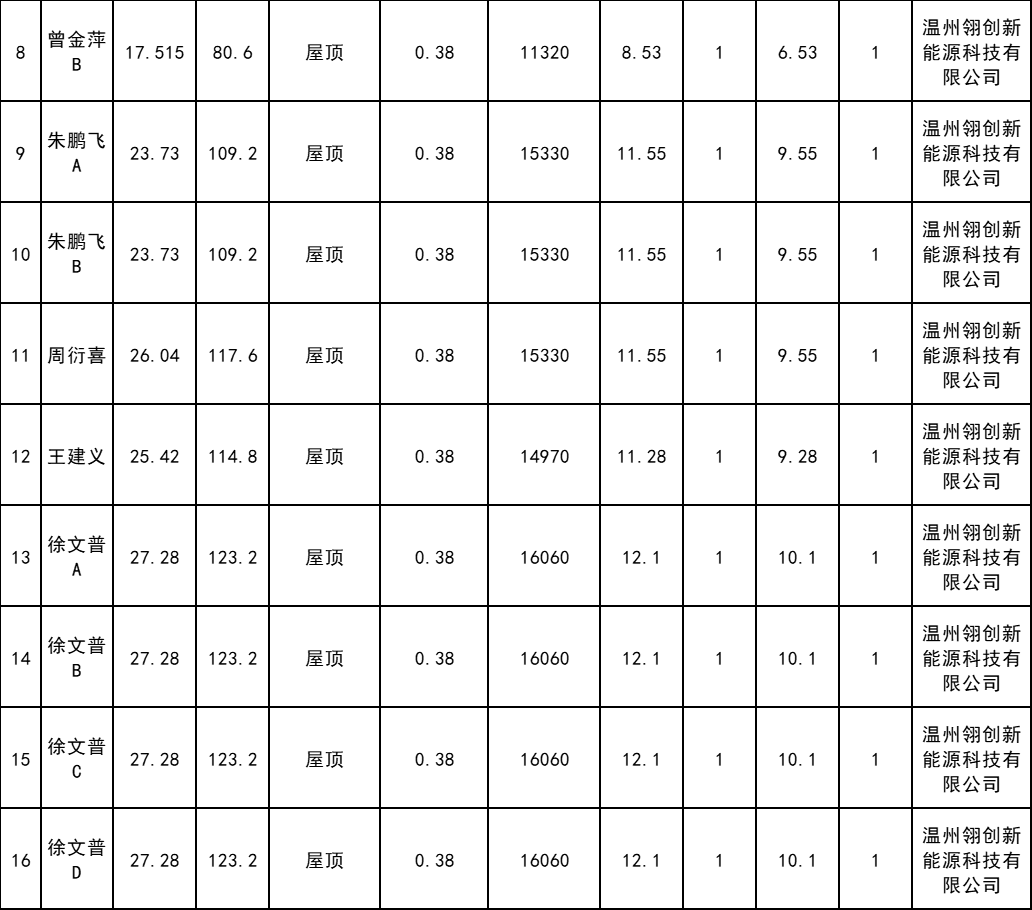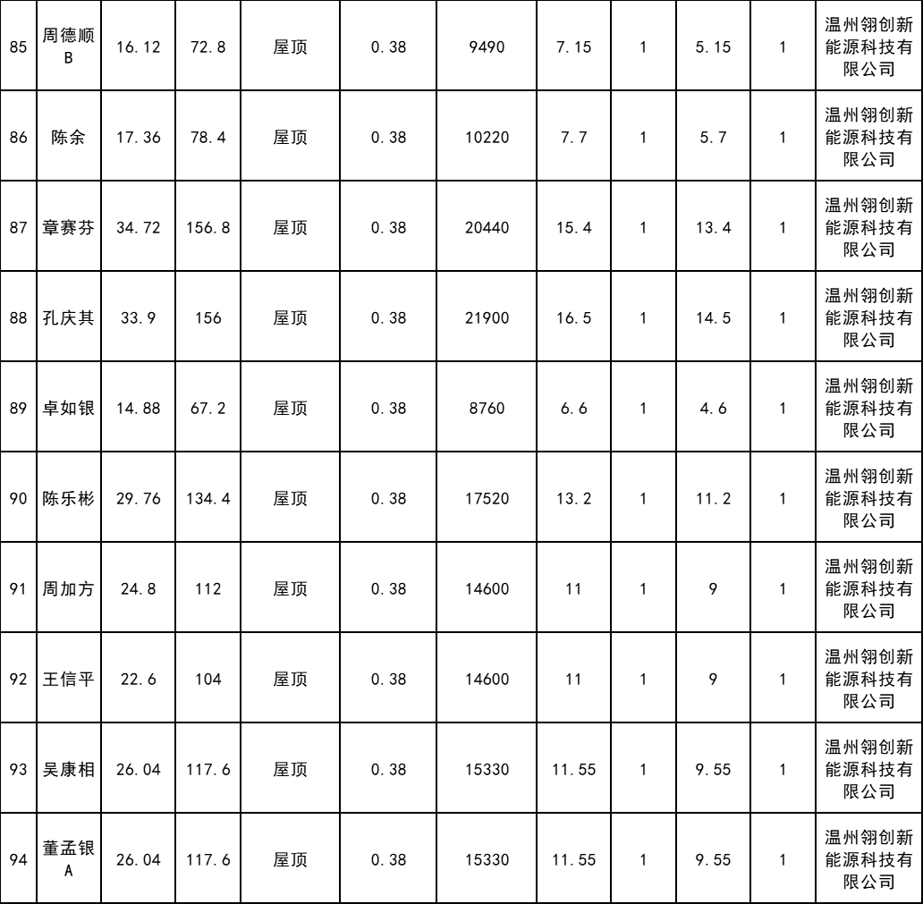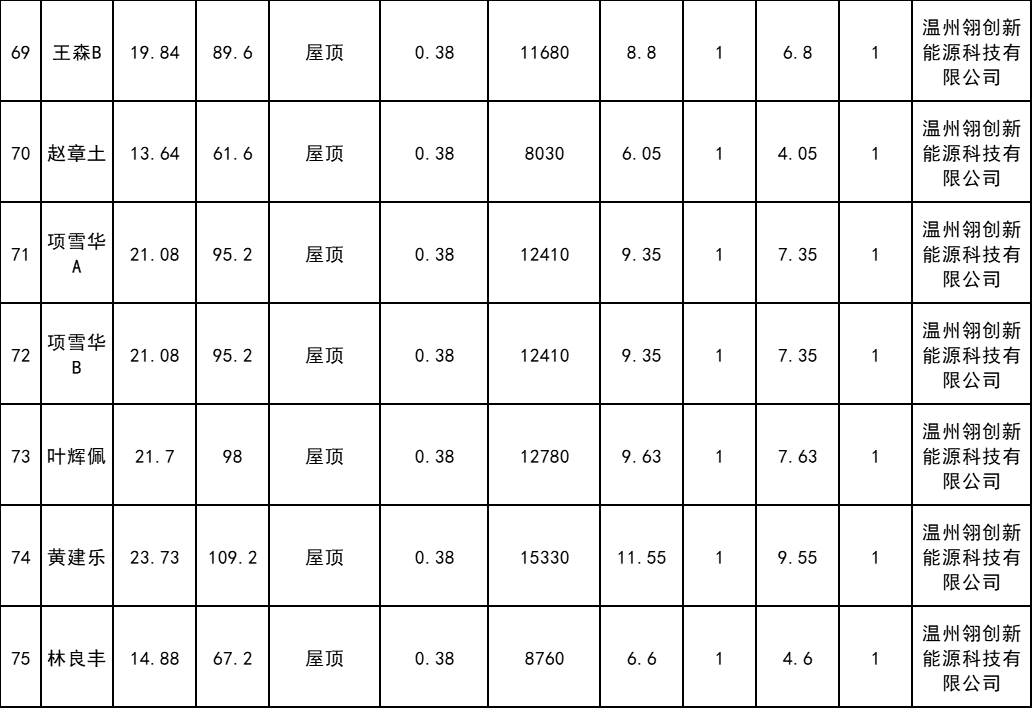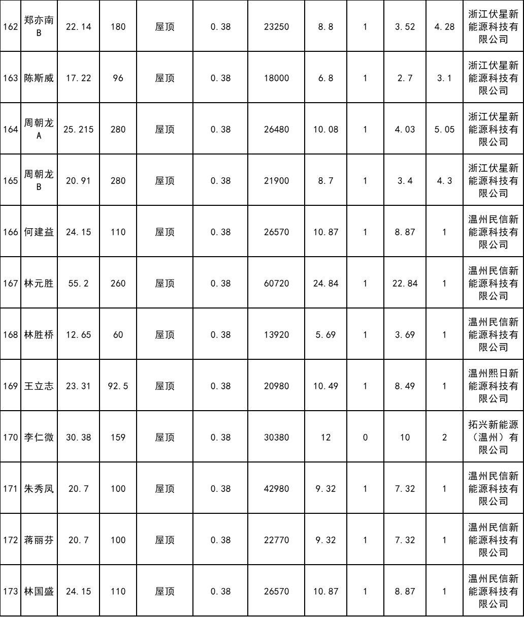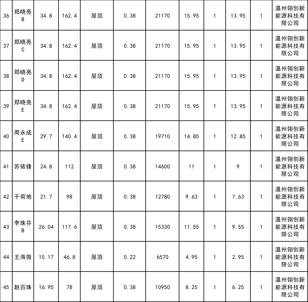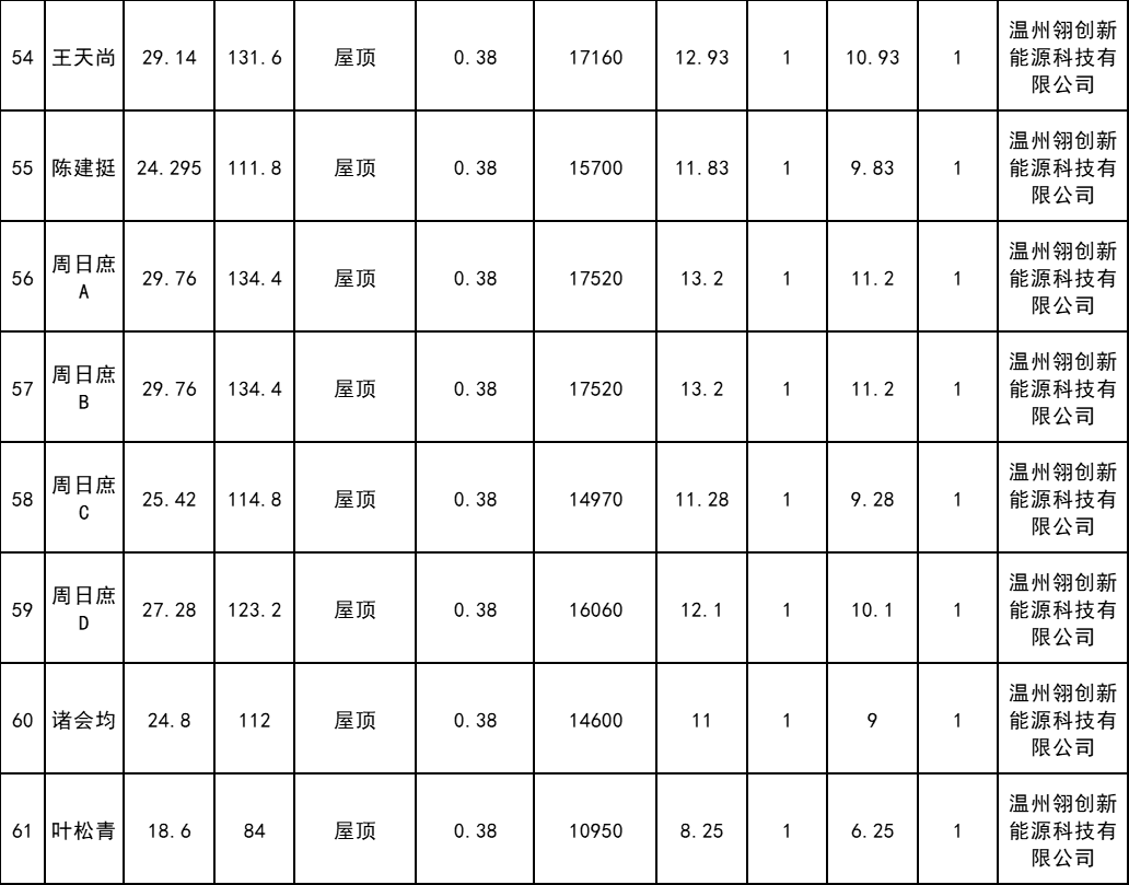 4月26日,樂清市發(fā)展和改革局發(fā)布關(guān)于樂清市2024年第六批居民家庭屋頂分布式光伏發(fā)電項目備案的通知,通知指出,本批次共有居民家庭屋頂分布式光伏發(fā)電項目182個,總裝機容量4502.31kWp,年平均發(fā)電量3305290kWh。 原文如下: 關(guān)于樂清市2024年第六批居民家庭屋頂分布式光伏發(fā)電項目備案的通知 國網(wǎng)浙江樂清市供電公司: 貴公司報送的樂清市居民家庭屋頂分布式光伏發(fā)電項目備案申請材料已收悉,根據(jù)《浙江省光伏發(fā)電項目管理暫行辦法》(浙發(fā)改能源〔2014〕450號)《樂清市人民政府關(guān)于扶持分布式光伏發(fā)電的若干意見》(樂政發(fā)〔2014〕29號),現(xiàn)予以集中備案,并就備案有關(guān)事項通知如下: 一、本批次共有居民家庭屋頂分布式光伏發(fā)電項目182個,總裝機容量4502.31kWp,年平均發(fā)電量3305290kWh。項目情況詳見附表。 二、本備案通知書有效期一年,自備案之日起計;有效期內(nèi)未開工建設(shè)的,貴公司應(yīng)在備案通知書有效期滿30日前向我局申請延期。逾期不報,備案通知書自動失效。 三、已備案項目發(fā)生變更的,應(yīng)辦理相應(yīng)的變更手續(xù)。 四、居民家庭屋頂分布式光伏發(fā)電項目屬自然人項目,我局委托貴公司組織驗收。 五、本備案通知書不可作為項目所依托的建筑物符合城鄉(xiāng)、土地等相關(guān)規(guī)劃的認(rèn)定依據(jù)。 附件:樂清市2024年第六批居民家庭屋頂分布式光伏發(fā)電項目表 樂清市發(fā)展和改革局 2024年4月26日 附件:樂清市2024年第六批居民家庭屋頂分布式光伏發(fā)電項目表