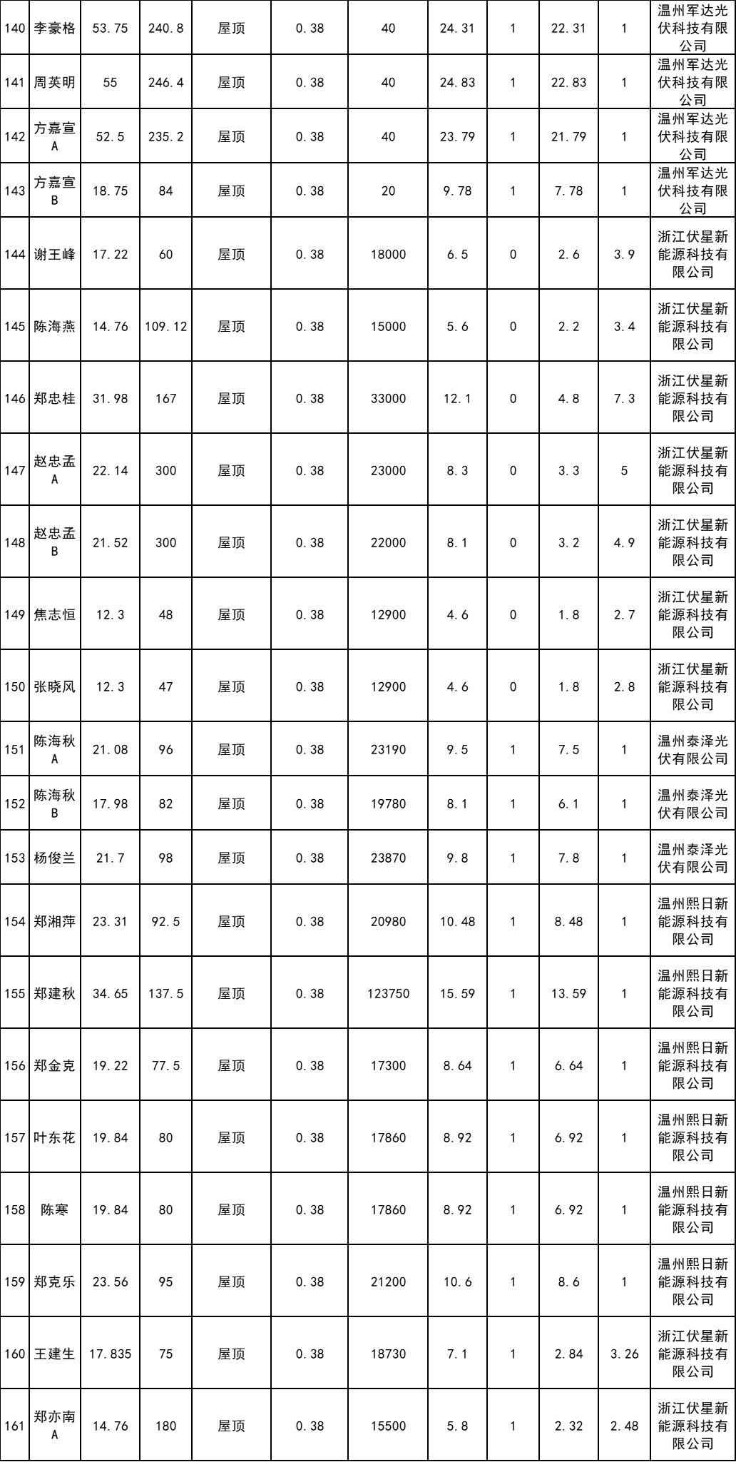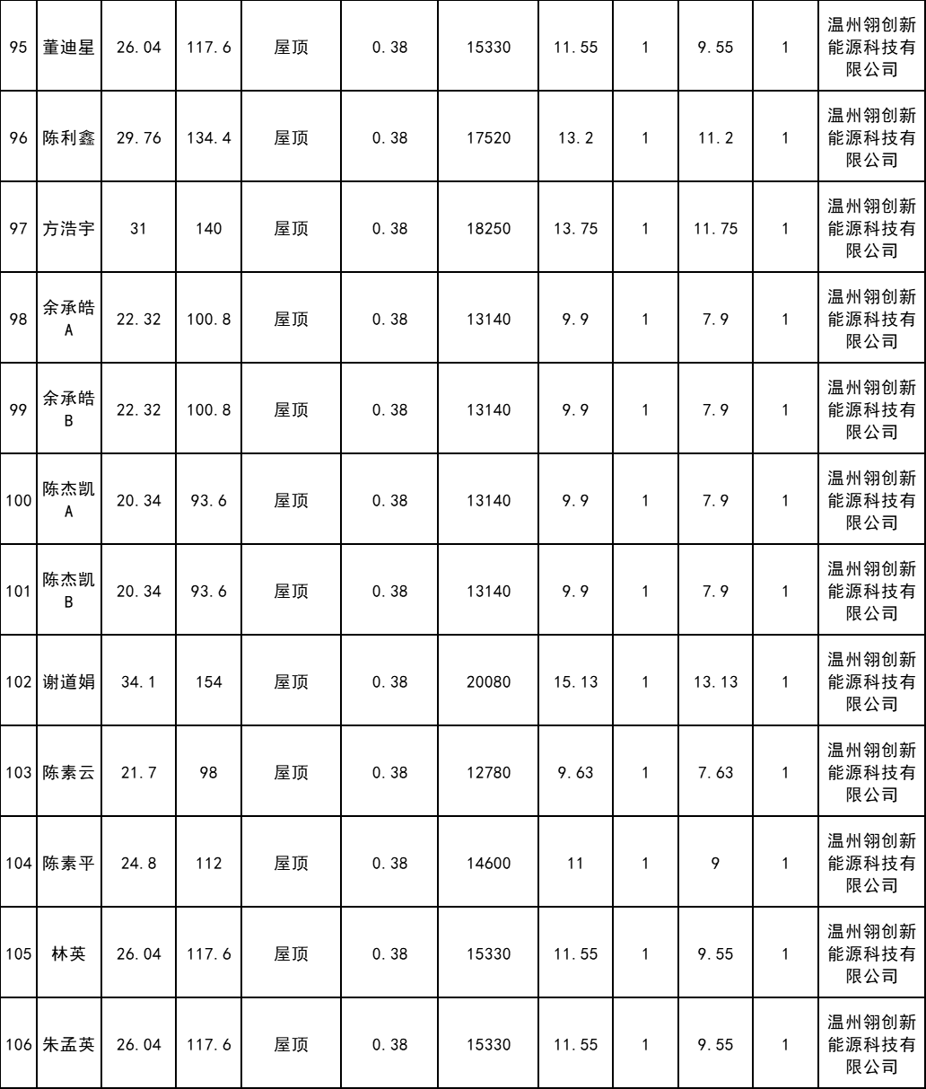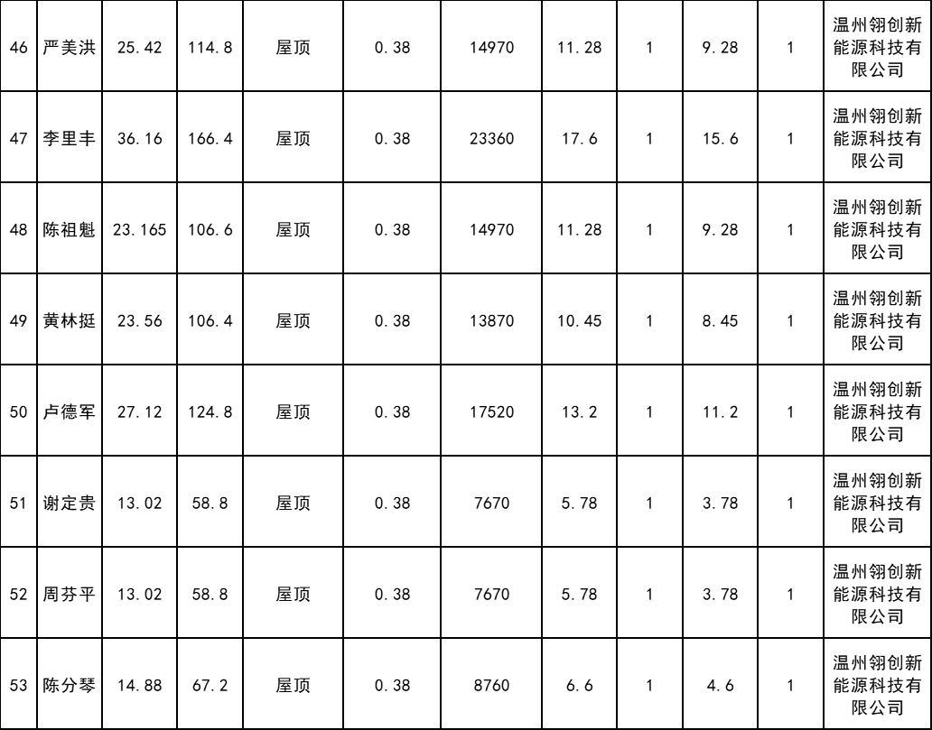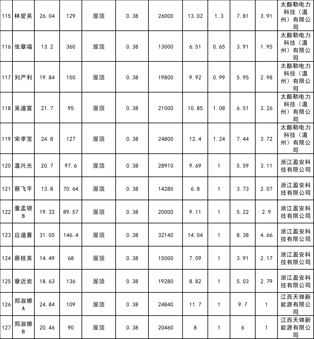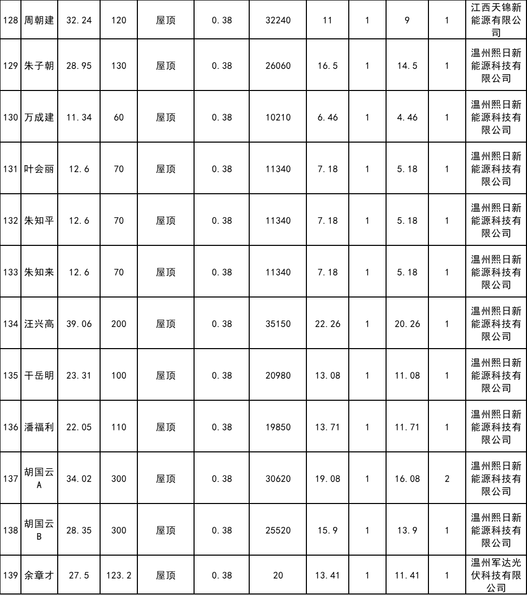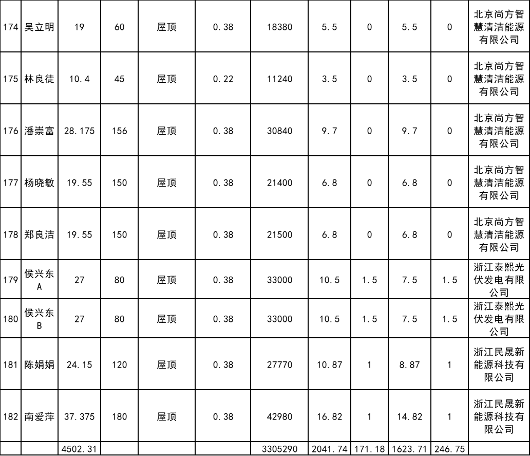 4月26日,樂清市發(fā)展和改革局發(fā)布關(guān)于樂清市2024年第六批居民家庭屋頂分布式光伏發(fā)電項目備案的通知,通知指出,本批次共有居民家庭屋頂分布式光伏發(fā)電項目182個,總裝機容量4502.31kWp,年平均發(fā)電量3305290kWh。 原文如下: 關(guān)于樂清市2024年第六批居民家庭屋頂分布式光伏發(fā)電項目備案的通知 國網(wǎng)浙江樂清市供電公司: 貴公司報送的樂清市居民家庭屋頂分布式光伏發(fā)電項目備案申請材料已收悉,根據(jù)《浙江省光伏發(fā)電項目管理暫行辦法》(浙發(fā)改能源〔2014〕450號)《樂清市人民政府關(guān)于扶持分布式光伏發(fā)電的若干意見》(樂政發(fā)〔2014〕29號),現(xiàn)予以集中備案,并就備案有關(guān)事項通知如下: 一、本批次共有居民家庭屋頂分布式光伏發(fā)電項目182個,總裝機容量4502.31kWp,年平均發(fā)電量3305290kWh。項目情況詳見附表。 二、本備案通知書有效期一年,自備案之日起計;有效期內(nèi)未開工建設(shè)的,貴公司應(yīng)在備案通知書有效期滿30日前向我局申請延期。逾期不報,備案通知書自動失效。 三、已備案項目發(fā)生變更的,應(yīng)辦理相應(yīng)的變更手續(xù)。 四、居民家庭屋頂分布式光伏發(fā)電項目屬自然人項目,我局委托貴公司組織驗收。 五、本備案通知書不可作為項目所依托的建筑物符合城鄉(xiāng)、土地等相關(guān)規(guī)劃的認(rèn)定依據(jù)。 附件:樂清市2024年第六批居民家庭屋頂分布式光伏發(fā)電項目表 樂清市發(fā)展和改革局 2024年4月26日 附件:樂清市2024年第六批居民家庭屋頂分布式光伏發(fā)電項目表