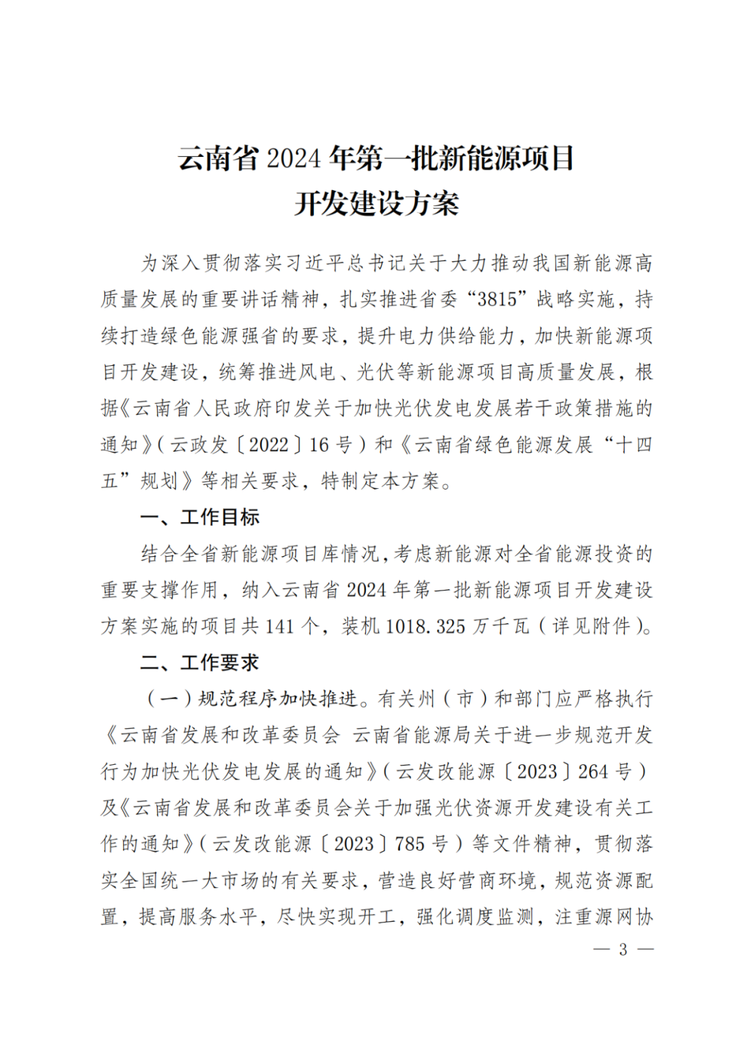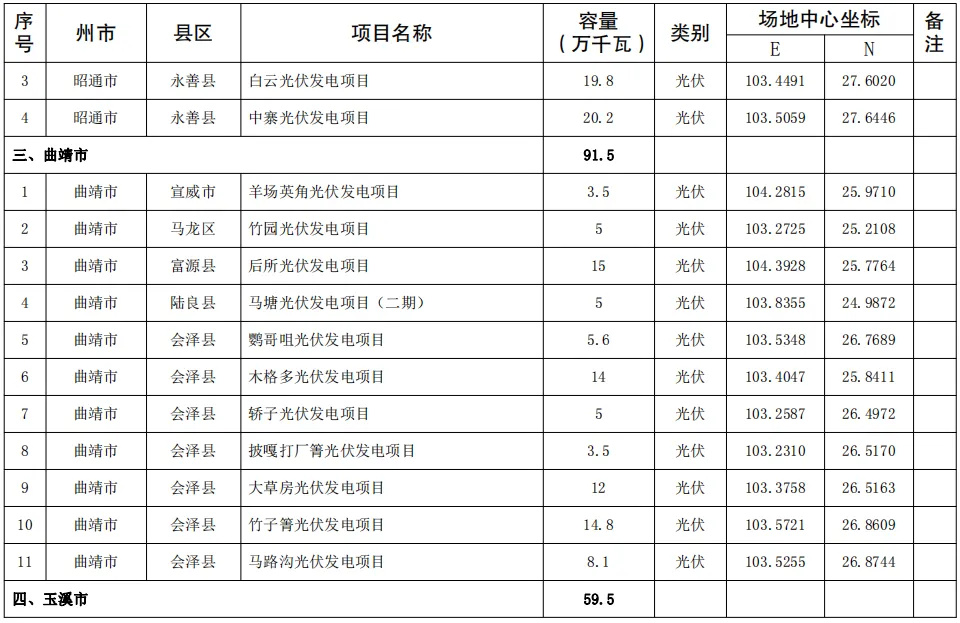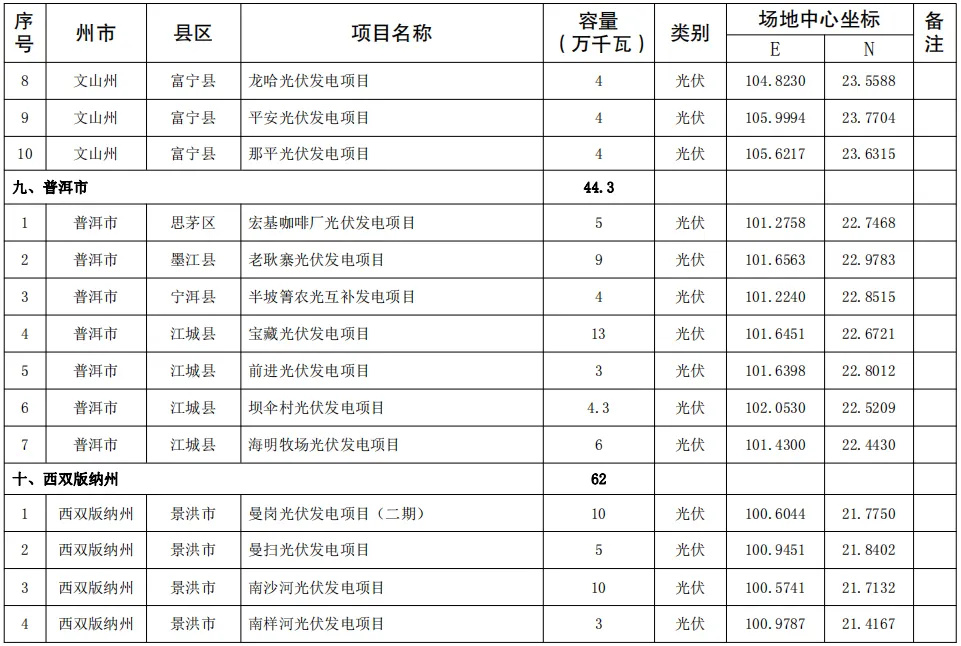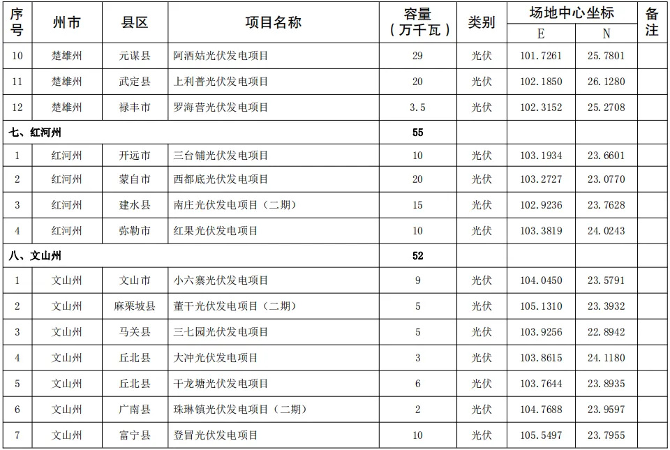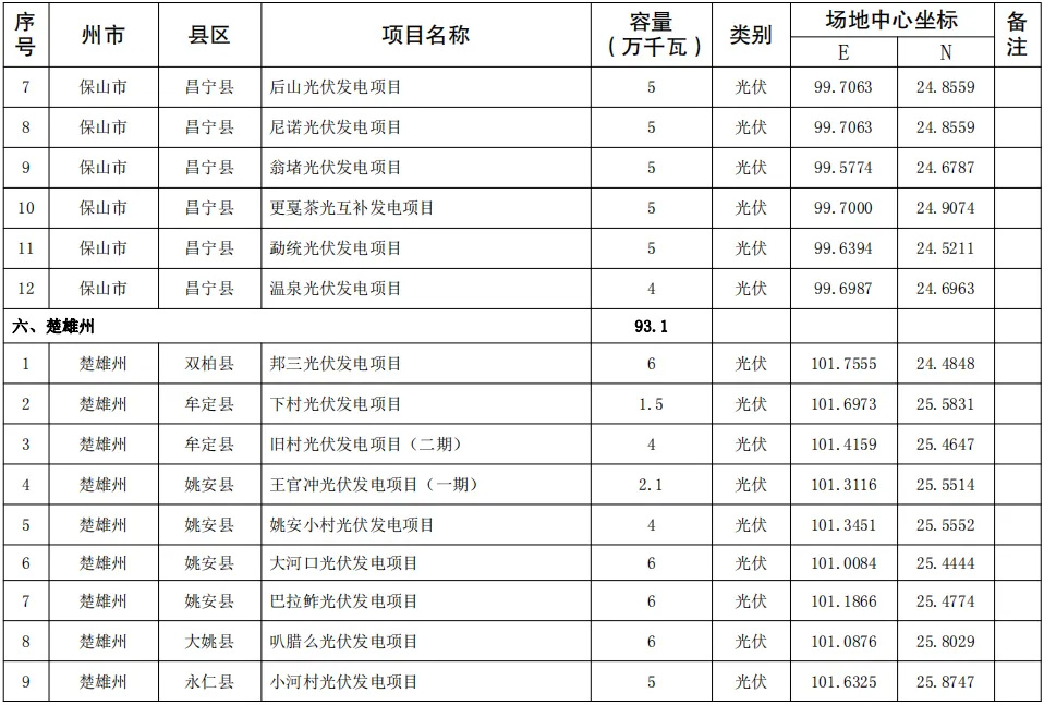 4月25日,云南省發(fā)改委及能源局聯(lián)合發(fā)布《關(guān)于印發(fā)云南省2024年第一批新能源項(xiàng)目開發(fā)建設(shè)方案的通知》。《通知》指出,納入云南省2024年第一批新能源項(xiàng)目開發(fā)建設(shè)方案實(shí)施的項(xiàng)目共141個(gè),總規(guī)模1018.325萬千瓦。其中,光伏項(xiàng)目規(guī)模1006.36萬千瓦,風(fēng)電11.965萬千瓦。 全文如下: