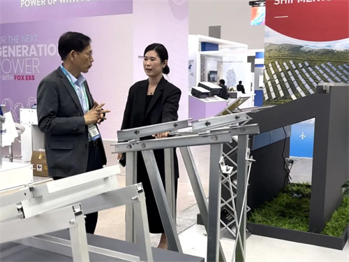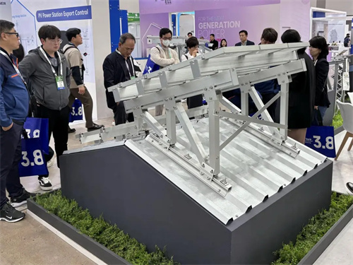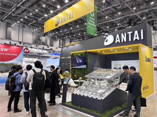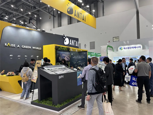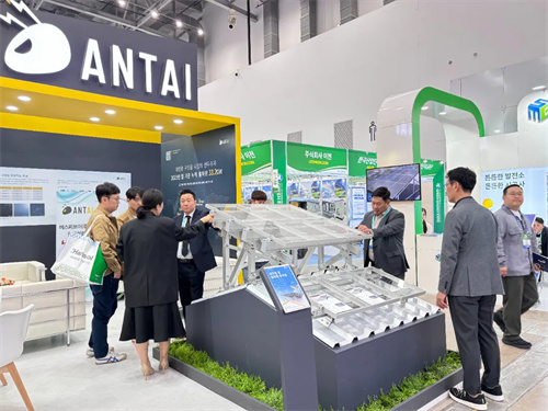 在“外排內疏”的防水理念下,安泰新能源通過先進的結構設計,使六大防水部件緊密配合,達到100%防水。此外,結構設計還帶來的安裝運維的便捷,在實際安裝應用中能提高50%左右的效益、降低20%的材料與人工成本。近年來,韓國BIPV(建筑一體化光伏)市場正在逐漸發(fā)展,一些大型建筑項目已經開始采用BIPV技術,隨著人們對可持續(xù)發(fā)展和環(huán)境友好型建筑的關注不斷增加,BIPV在韓國的市場前景會更加廣闊。未來,安泰新能源將密切關注行業(yè)的發(fā)展動態(tài)和客戶反饋,不斷深化BIPV系列解決方案的研發(fā)與創(chuàng)新,助力當地綠色轉型。 從地面到屋頂 滿足韓國光伏市場的多種需求 為更好地滿足韓國光伏市場的多樣化需求,安泰新能源展出多款專為韓國市場量身定制的光伏支架解決方案,包括地面碳鋼固定支架、屋頂三角架、屋頂架高及平鋪方案。在工商業(yè)應用場景中,重點展示架高屋頂支架系統,其卓越的結構設計和鋁合金主體材質的輕便耐腐蝕性能,完美匹配分布式光伏屋頂,兼具系統整體強度又滿足屋頂承重,收獲參觀者的一致認可和好評。