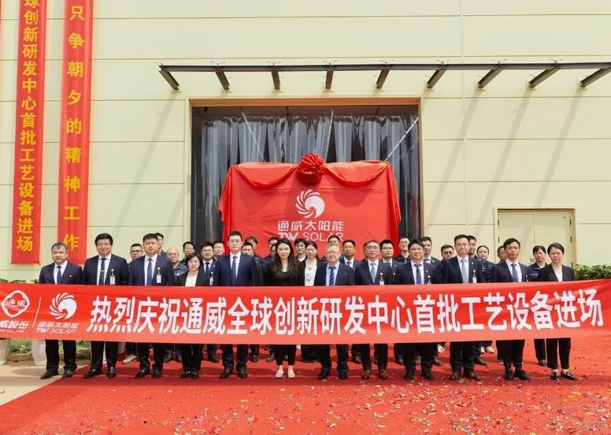 通威全球創(chuàng)新研發(fā)中心首批工藝設(shè)備進(jìn)場(chǎng) 2023年11月30日,通威全球創(chuàng)新研發(fā)中心項(xiàng)目啟動(dòng)建設(shè)。歷時(shí)近半年的建設(shè),4月26日,項(xiàng)目建設(shè)迎來(lái)重要時(shí)刻——首批工藝設(shè)備進(jìn)場(chǎng),通威股份董事長(zhǎng)、CEO劉舒琪,通威股份光伏首席技術(shù)官邢國(guó)強(qiáng)及光伏技術(shù)部核心骨干代表,通威太陽(yáng)能管理團(tuán)隊(duì)代表共同現(xiàn)場(chǎng)見(jiàn)證。邢國(guó)強(qiáng)博士致辭表示,通威全球創(chuàng)新研發(fā)中心首批工藝設(shè)備順利進(jìn)場(chǎng),是繼項(xiàng)目啟動(dòng)之后的又一個(gè)里程碑事件,標(biāo)志著項(xiàng)目建設(shè)取得了新的階段性成果,為實(shí)現(xiàn)今年建成投用目標(biāo)邁出了關(guān)鍵的一步。在劉漢元主席和劉舒琪董事長(zhǎng)的關(guān)心及支持下,通威全球創(chuàng)新研發(fā)中心將為公司的創(chuàng)新發(fā)展提供持續(xù)、有力的技術(shù)支撐。