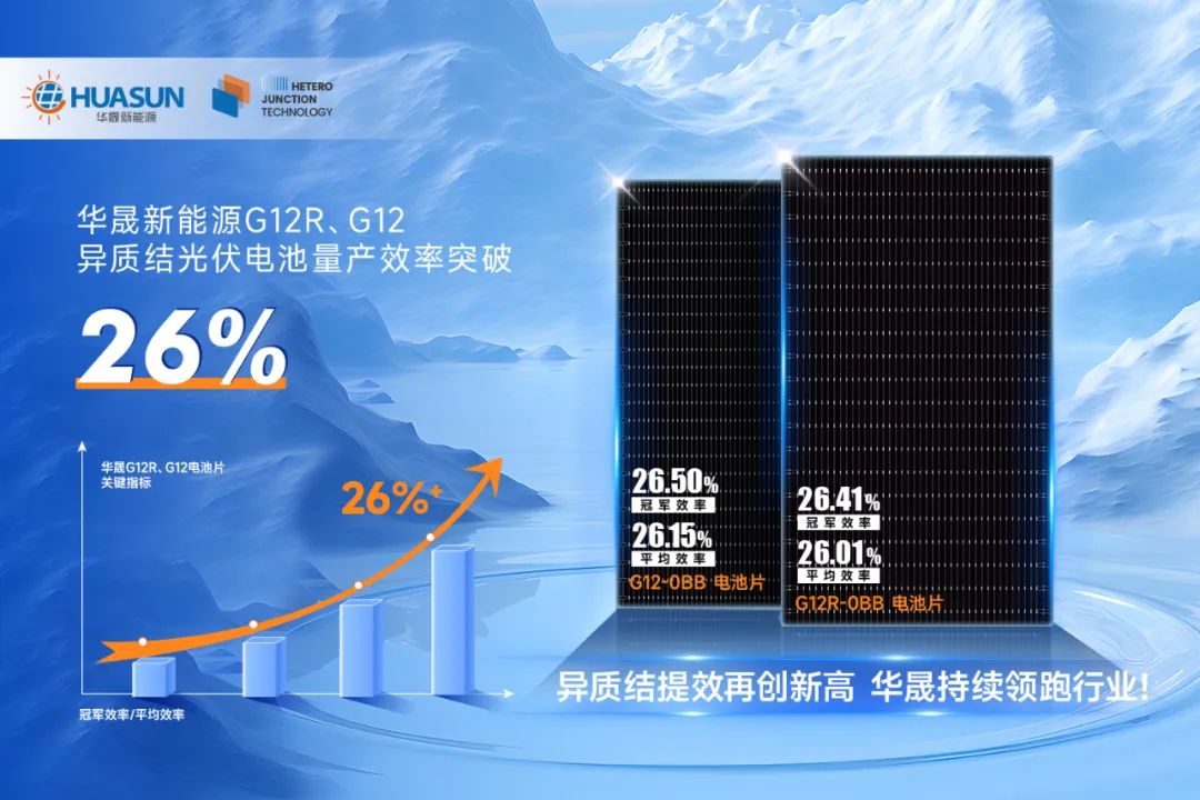 近日,華晟G12R、G12異質(zhì)結(jié)電池提效喜迎佳音!兩款電池片量產(chǎn)平均轉(zhuǎn)換效率均突破26%,創(chuàng)下新高,持續(xù)領(lǐng)跑行業(yè)!這一突破性進展不僅體現(xiàn)了華晟G12R、G12異質(zhì)結(jié)光伏電池的量產(chǎn)效率邁上了26%+的全新高度,更體現(xiàn)了異質(zhì)結(jié)技術(shù)巨大的提效潛力,是華晟在技術(shù)研發(fā)上持續(xù)鉆研創(chuàng)新的結(jié)果。
