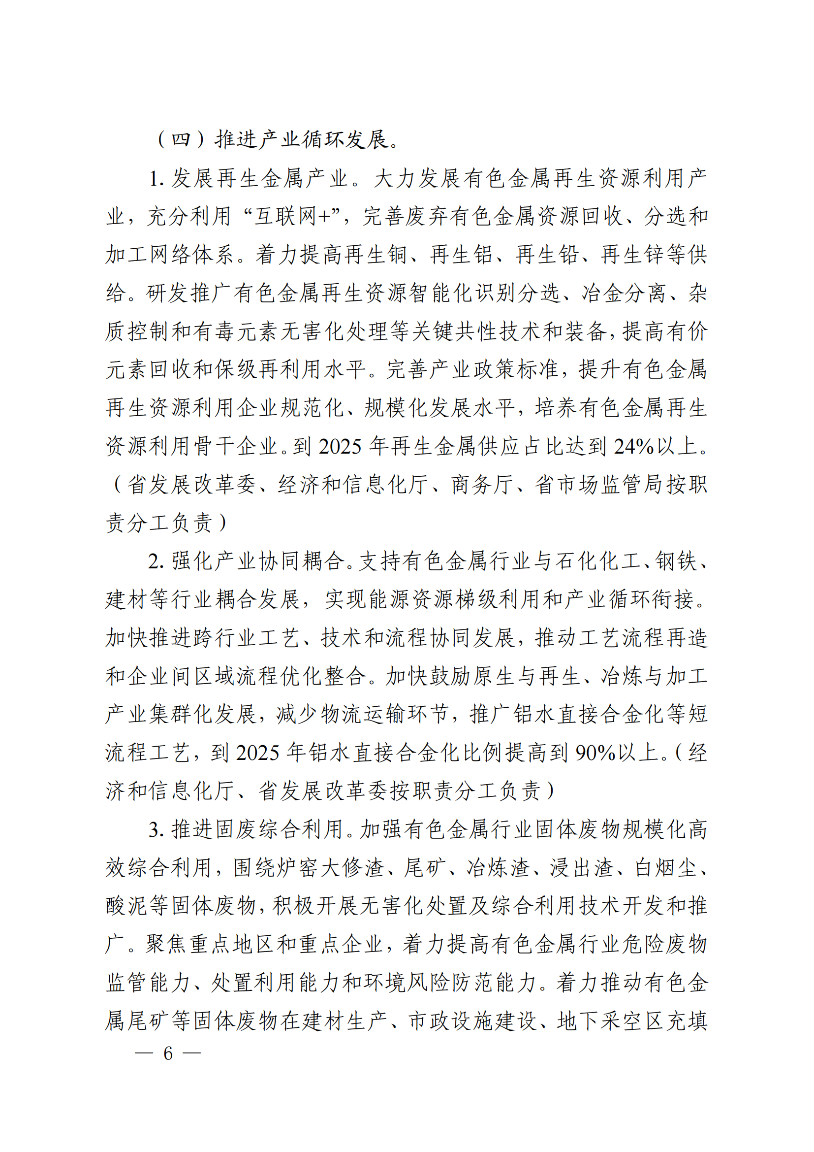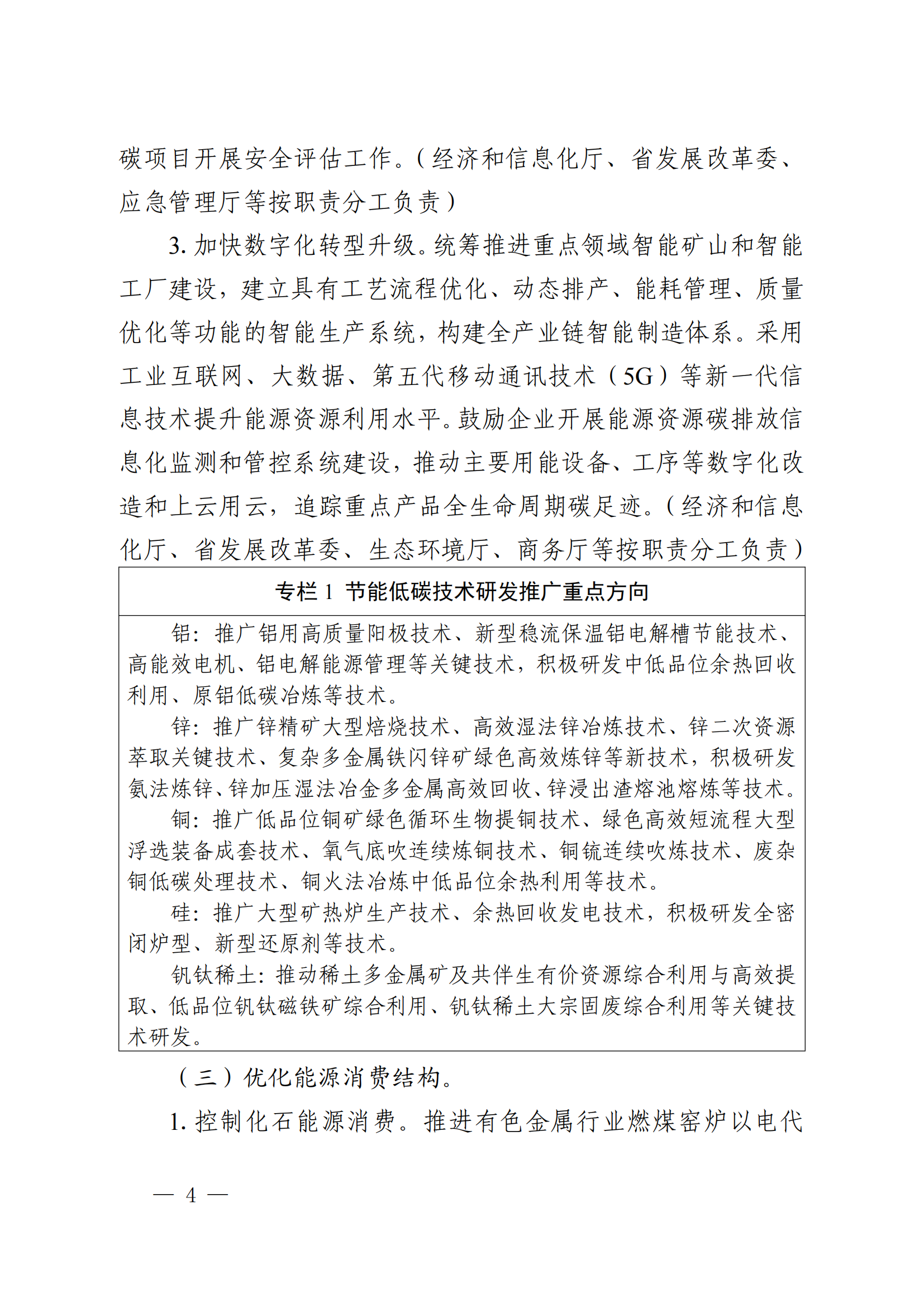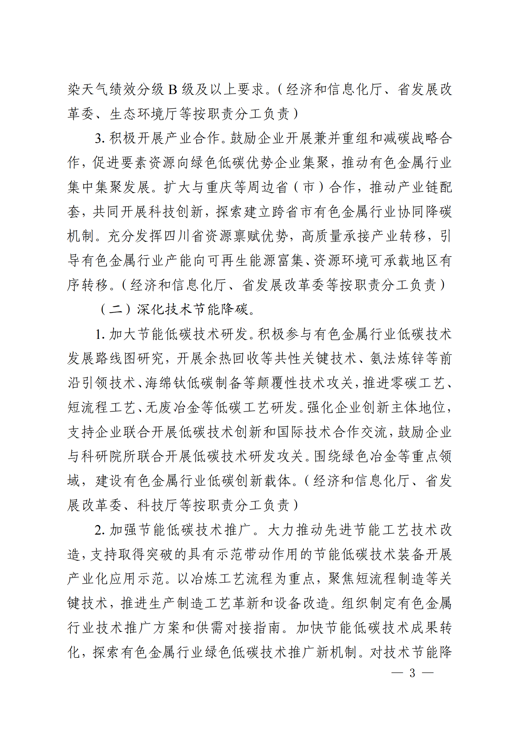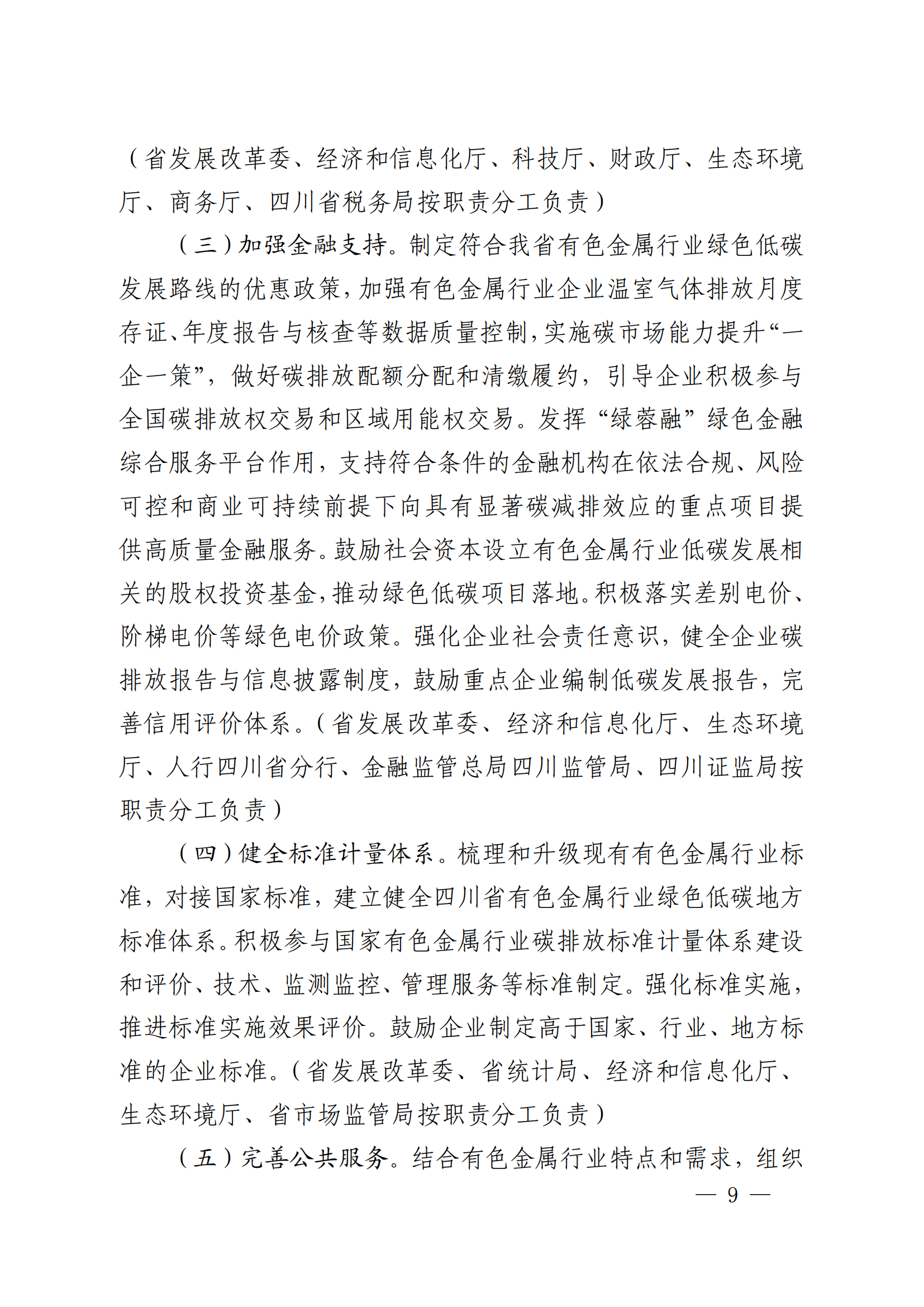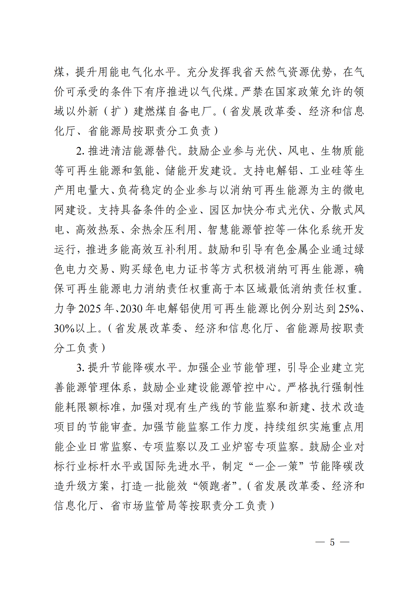 5月10日,四川省經(jīng)信廳、省發(fā)改委、省生態(tài)環(huán)境廳聯(lián)合印發(fā)了《四川省有色金屬行業(yè)碳達峰實施方案》,《方案》提到,鼓勵企業(yè)參與光伏、風電、生物質(zhì)能等可再生能源和氫能、儲能開發(fā)建設(shè)。支持電解鋁、工業(yè)硅等生產(chǎn)用電量大、負荷穩(wěn)定的企業(yè)參與以消納可再生能源為主的微電網(wǎng)建設(shè)。支持具備條件的企業(yè)、園區(qū)加快分布式光伏、分散式風電、高效熱泵、余熱余壓利用、智慧能源管控等一體化系統(tǒng)開發(fā)運行,推進多能高效互補利用。鼓勵和引導有色金屬企業(yè)通過綠色電力交易、購買綠色電力證書等方式積極消納可再生能源,確??稍偕茉措娏ο{責任權(quán)重高于本區(qū)域最低消納責任權(quán)重。力爭2025年、2030年電解鋁使用可再生能源比例分別達到25%、30%以上。 詳情如下: 關(guān)于印發(fā)《四川省有色金屬行業(yè)碳達峰實施方案》的通知 川經(jīng)信環(huán)資〔2024〕66號 省直相關(guān)部門,各市(州)經(jīng)濟和信息化局、發(fā)展改革委、生態(tài)環(huán)境局: 經(jīng)省政府同意,現(xiàn)將《四川省有色金屬行業(yè)碳達峰實施方案》印發(fā)給你們,請認真貫徹落實。 四川省經(jīng)濟和信息化廳 四川省發(fā)展和改革委員會 四川省生態(tài)環(huán)境廳 2024年5月10日