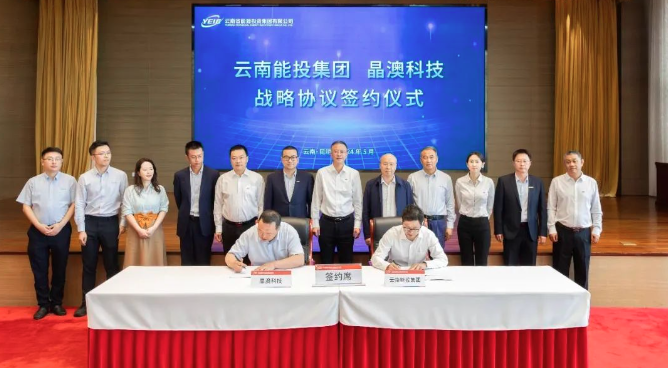 為積極響應(yīng)云南省委、省政府“加速硅光伏產(chǎn)業(yè)垂直一體化布局”建設(shè)目標(biāo),5月20日,晶澳科技與云南能投集團(tuán)簽署戰(zhàn)略合作協(xié)議。云南能投集團(tuán)黨委書記、董事長胡均,晶澳科技董事、執(zhí)行總裁楊愛青出席儀式并見簽。
