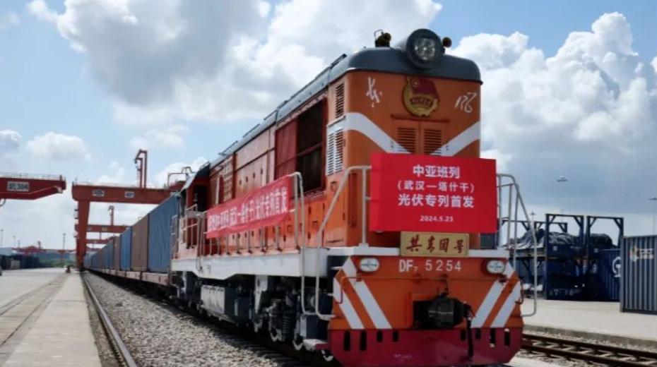 5月23日10時(shí)30分,首趟中亞班列(武漢—塔什干)光伏專列緩緩啟動,一路向西開往烏茲別克斯坦首都塔什干。此次專列開行為高附加值、高科技產(chǎn)品出口中亞搭起一條高效穩(wěn)定的陸路物流通道,助力湖北加快建設(shè)國內(nèi)國際雙循環(huán)重要樞紐。