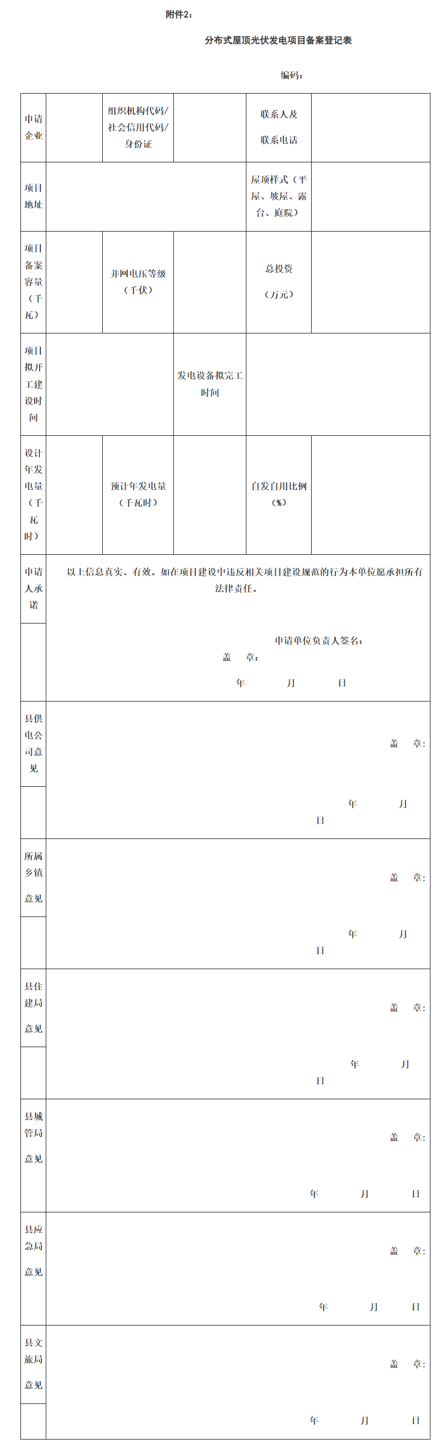 福建寧德發(fā)布《周寧縣分布式屋頂光伏發(fā)電項(xiàng)目規(guī)范建設(shè)指導(dǎo)意見(試行)》,其中提到,規(guī)模在6兆瓦以下的光伏發(fā)電項(xiàng)目,同一地址(村、園區(qū))每個(gè)光伏開發(fā)企業(yè)只能備案一個(gè)項(xiàng)目。規(guī)模在6兆瓦以上的光伏發(fā)電項(xiàng)目,通過縣有關(guān)部門及鄉(xiāng)鎮(zhèn)聯(lián)審,報(bào)縣政府同意后,上報(bào)省發(fā)改委申請集中式光伏項(xiàng)目備案。 企業(yè)備案的項(xiàng)目僅限布局在太陽能資源較豐富的工業(yè)園區(qū)廠房屋頂。戶用(自然人)分布式光伏項(xiàng)目必須符合城市規(guī)劃區(qū)、自然保護(hù)區(qū)、風(fēng)景名勝區(qū)、飲用水水源保護(hù)區(qū)、文物保護(hù)單位、歷史文化名鎮(zhèn)名村、傳統(tǒng)村落、“兩高”沿線村莊、危房(C、D級)等區(qū)域的管控要求(具體依照上述區(qū)域管控涉及的相關(guān)法律法規(guī)政策執(zhí)行)。 原文如下: 關(guān)于印發(fā)《周寧縣分布式屋頂光伏發(fā)電項(xiàng)目規(guī)范建設(shè)指導(dǎo)意見(試行)》的通知周發(fā)改規(guī)〔2024〕1號 各鄉(xiāng)(鎮(zhèn))人民政府,縣直有關(guān)單位: 為統(tǒng)籌推進(jìn)我縣分布式屋頂光伏發(fā)電項(xiàng)目健康、有序、規(guī)范、安全發(fā)展,保障區(qū)域電力系統(tǒng)安全可靠運(yùn)行。經(jīng)縣政府研究,特制定《周寧縣分布式屋頂光伏發(fā)電項(xiàng)目規(guī)范建設(shè)指導(dǎo)意見(試行)》?,F(xiàn)印發(fā)給你們,請認(rèn)真貫徹執(zhí)行。 周寧縣發(fā)展和改革局 周寧縣住房和城鄉(xiāng)建設(shè)局 周寧縣工業(yè)和信息化局 周寧縣自然資源局 周寧縣文體和旅游局 周寧縣應(yīng)急管理局 周寧縣城市管理局 國網(wǎng)福建省電力有限公司周寧縣供電公司 2024年5月14日 (此件主動(dòng)公開) 周寧縣分布式屋頂光伏發(fā)電項(xiàng)目規(guī)范建設(shè)指導(dǎo)意見(試行) 為統(tǒng)籌推動(dòng)分布式屋頂光伏有序健康發(fā)展,根據(jù)《中華人民共和國可再生能源法》《國家能源局關(guān)于印發(fā)分布式光伏發(fā)電項(xiàng)目管理暫行辦法的通知》(國能新能〔2013〕433號)、《福建省綠色建筑發(fā)展條例》《福建省發(fā)展和改革委員會(huì)關(guān)于印發(fā)<福建省第一批國家重點(diǎn)生態(tài)功能區(qū)縣(市)產(chǎn)業(yè)準(zhǔn)入負(fù)面清單(試行)>的通知》(閩發(fā)改規(guī)劃〔2018〕177號)等有關(guān)規(guī)定要求,現(xiàn)就推動(dòng)我縣分布式屋頂光伏發(fā)電項(xiàng)目建設(shè),制訂本意見。 第一條 在周寧縣轄區(qū)內(nèi)開發(fā)分布式屋頂光伏發(fā)電項(xiàng)目的企業(yè)應(yīng)具有獨(dú)立法人資格,具備相應(yīng)的專業(yè)資質(zhì),有固定辦公場所和售后服務(wù)網(wǎng)點(diǎn)。從事屋頂光伏發(fā)電項(xiàng)目服務(wù)的專職技術(shù)人員,應(yīng)經(jīng)過專業(yè)的技術(shù)培訓(xùn),具備與服務(wù)內(nèi)容相匹配的技術(shù)能力或上崗證書,并嚴(yán)格按照相關(guān)安全規(guī)范進(jìn)行安裝等服務(wù)操作。新建項(xiàng)目的生產(chǎn)工藝、環(huán)保設(shè)施和清潔生產(chǎn)標(biāo)準(zhǔn)不得低于國內(nèi)先進(jìn)水平。 第二條 規(guī)模在6兆瓦以下的光伏發(fā)電項(xiàng)目[同一地址(村、園區(qū)),每個(gè)光伏開發(fā)企業(yè)只能備案一個(gè)項(xiàng)目]。 第三條 規(guī)模在6兆瓦以上的光伏發(fā)電項(xiàng)目,通過縣有關(guān)部門及鄉(xiāng)鎮(zhèn)聯(lián)審,報(bào)縣政府同意后,上報(bào)省發(fā)改委申請集中式光伏項(xiàng)目備案。 第四條企業(yè)備案的項(xiàng)目僅限布局在太陽能資源較豐富的工業(yè)園區(qū)廠房屋頂。戶用(自然人)分布式光伏項(xiàng)目必須符合城市規(guī)劃區(qū)、自然保護(hù)區(qū)、風(fēng)景名勝區(qū)、飲用水水源保護(hù)區(qū)、文物保護(hù)單位、歷史文化名鎮(zhèn)名村、傳統(tǒng)村落、“兩高”沿線村莊、危房(C、D級)等區(qū)域的管控要求(具體依照上述區(qū)域管控涉及的相關(guān)法律法規(guī)政策執(zhí)行)。 第五條 分布式光伏發(fā)電項(xiàng)目所依托的建筑物及設(shè)施應(yīng)具有產(chǎn)權(quán)證或鄉(xiāng)(鎮(zhèn))政府出具的相關(guān)證明,嚴(yán)禁依托違法違規(guī)建筑物(構(gòu)筑物)建設(shè)。項(xiàng)目開發(fā)企業(yè)須與建筑物產(chǎn)權(quán)所有人簽訂協(xié)議或者合同。協(xié)議或合同必須包含以下內(nèi)容:取得產(chǎn)權(quán)人同意;約定提供光伏組件、并網(wǎng)逆變器等質(zhì)保;約定意外險(xiǎn)承保并明確安全生產(chǎn)責(zé)任主體;約定電站的終身運(yùn)維,電站引起的房屋滲漏維修義務(wù);確保電站的承重結(jié)構(gòu)符合電站運(yùn)行期間的負(fù)載要求。 第六條根據(jù)國家能源局關(guān)于規(guī)范開展分布式光伏接入的要求,分布式光伏項(xiàng)目由企業(yè)提出申請,提供法人組織機(jī)構(gòu)代碼證(個(gè)人身份證)、房屋產(chǎn)權(quán)證明、企業(yè)營業(yè)執(zhí)照復(fù)印件、房屋現(xiàn)狀照片等材料,填寫《分布式屋頂光伏發(fā)電項(xiàng)目備案登記表》(詳見附件2);分別由縣供電公司、鄉(xiāng)鎮(zhèn)及縣有關(guān)部門提出對電網(wǎng)容量、房屋合法性等意見。 第七條