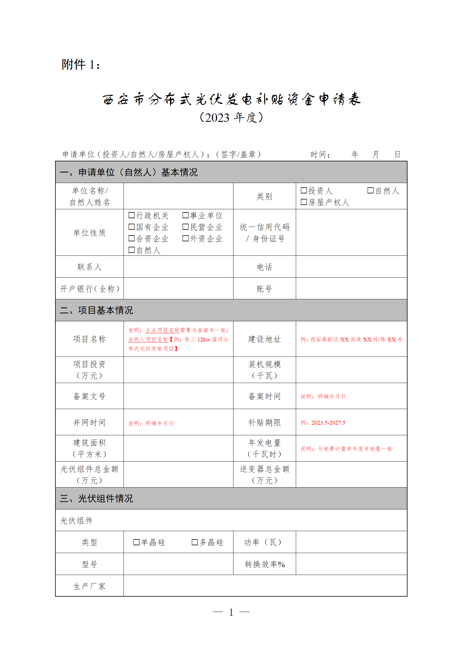 5月29日,陜西西安高新區(qū)發(fā)改局發(fā)布《關于申報2023年度分布式光伏發(fā)電補貼資金的通知》,文件指出,本次補貼資金申報范圍為延續(xù)申領補貼項目。2018年1月1日—2022年12月31日期間在高新區(qū)范圍內(nèi)建成投運并網(wǎng)延續(xù)申領分布式光伏發(fā)電補貼項目;首次申領補貼項目。2023年1月1日—2023年12月31日期間在高新區(qū)范圍內(nèi)建成投運并網(wǎng)首次申領分布式光伏發(fā)電項目(含光伏扶貧項目)。 補貼標準: 1.自項目并網(wǎng)起,給予投資人在2018年1月1日—2020年12月31日期間建成并網(wǎng)的分布式光伏項目0.25元/度發(fā)電補貼,補貼執(zhí)行期限5年。 2.自項目并網(wǎng)起,給予投資人在2021年1月1日—2023年12月31日期間建成并網(wǎng)的分布式光伏項目0.10元/度發(fā)電補貼,補貼執(zhí)行期限5年。 原文如下: 西安高新區(qū)發(fā)展改革局關于申報2023年度分布式光伏發(fā)電補貼資金的通知 區(qū)內(nèi)項目申報單位(自然人): 為落實市發(fā)改委、市財政局《關于印發(fā)西安市分布式光伏發(fā)電項目補貼資金申報實施發(fā)放細則的通知》(市發(fā)改發(fā)〔2022〕28號)文件精神,現(xiàn)對高新區(qū)2023年度分布式光伏補貼資金申報工作明確如下: 一、申報范圍及條件 (一)申報范圍 1.延續(xù)申領補貼項目。2018年1月1日—2022年12月31日期間在高新區(qū)范圍內(nèi)建成投運并網(wǎng)延續(xù)申領分布式光伏發(fā)電補貼項目。 2.首次申領補貼項目。2023年1月1日—2023年12月31日期間在高新區(qū)范圍內(nèi)建成投運并網(wǎng)首次申領分布式光伏發(fā)電項目(含光伏扶貧項目)。 注:拆遷棚改區(qū)域內(nèi)(含計劃拆遷棚改區(qū)域)的項目不在本次申報范圍內(nèi)。 (二)申報條件 1.通過陜西政務服務網(wǎng)(投資項目在線審批監(jiān)管平臺)在高新區(qū)備案的分布式光伏發(fā)電項目; 2.申報單位的登記機關、財稅和統(tǒng)計關系均在高新區(qū); 3.光伏項目使用的組件轉(zhuǎn)換效率達到光伏“領跑者”先進技術標準,項目建設質(zhì)量符合國家、行業(yè)或地方標準。 二、補貼標準及資金發(fā)放程序 (一)補貼標準 1.自項目并網(wǎng)起,給予投資人在2018年1月1日—2020年12月31日期間建成并網(wǎng)的分布式光伏項目0.25元/度發(fā)電補貼,補貼執(zhí)行期限5年。 2.自項目并網(wǎng)起,給予投資人在2021年1月1日—2023年12月31日期間建成并網(wǎng)的分布式光伏項目0.10元/度發(fā)電補貼,補貼執(zhí)行期限5年。 (二)資金發(fā)放程序 各街道征集匯總轄區(qū)內(nèi)符合申報條件的單位(自然人)分布式光伏發(fā)電項目申報資料,按時間節(jié)點報送發(fā)展改革局;發(fā)展改革局對各街道上報的材料進行審核并組織驗收,經(jīng)管委會專題會研究審議通過后,按程序撥付資金。 三、申報流程 (一)首次申報補貼項目申報流程 1.申報單位(自然人)向項目所在街辦提交以下申報資料紙質(zhì)和電子版文檔(一式三份): (1)西安市分布式光伏發(fā)電補貼資金申請表(附件); (2)采購企業(yè)生產(chǎn)組件、逆變器的發(fā)票(投資主體為自然人的必須開到每戶,杜絕大額發(fā)票捆綁多個用戶); (3)組件轉(zhuǎn)換效率達到光伏“領跑者”先進技術的相關證明材料; (4)經(jīng)供電部門和投資者雙方確定的《電量計量單》原件(簽字蓋章版); (5)企業(yè)營業(yè)執(zhí)照或自然人身份證復印件; (6)申報單位提供收款賬戶信息(蓋章),自然人提供申請本人銀行卡掃描件并備注開戶行全稱; (7)申報單位(自然人)光伏項目備案確認書。 (8)項目規(guī)劃許可證、土地證(或屋頂租賃協(xié)議)。 2.組織現(xiàn)場驗收 各街道對申報單位(自然人)提交的申報資料進行初審、匯總,發(fā)展改革局對各街道匯總資料進行復審,對符合要求且首次申領光伏發(fā)電補貼的項目組織現(xiàn)場驗收(具體驗收方法和驗收內(nèi)容見附件3)。 (二)延續(xù)申領補貼須提交的資料 2018年—2022年延續(xù)申領分布式光伏發(fā)電補貼的項目單位(自然人)需在屬地供電公司獲取2023年度全年《電量計量單》(供電公司和投資者雙方簽字蓋章)上報各街辦,由各街辦統(tǒng)計后報發(fā)展改革局(若有拆遷項目將不再進行延續(xù)補貼)。 四、有關要求 (一)申報單位(自然人)對申報項目的真實性負全部責任。 (二)對于經(jīng)稽查或舉報發(fā)現(xiàn),申報單位(自然人)提供虛假信息騙取補貼資金等情況,由發(fā)展改革局、財政金融局上報市發(fā)改委、市財政局研究確定取消其補貼資格,追繳已發(fā)放補貼資金,并追究相關人員責任。 (三)本次申報工作截止時間為2024年6月14日18時,逾期不予受理。請各申報單位(自然人)按照時間節(jié)點將項目申報材料(蓋章簽字原件一式三份)遞交至項目所在街辦進行受理。 五、咨詢受理聯(lián)系方式 (一)發(fā)展改革局咨詢電話:029-81150646 (二)各街辦受理資料聯(lián)系電話