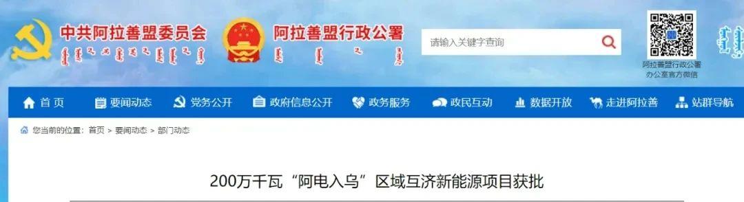 近日,內(nèi)蒙古自治區(qū)能源局下發(fā)《關(guān)于實(shí)施200萬(wàn)千瓦“阿電入烏”區(qū)域互濟(jì)新能源項(xiàng)目的通知》(內(nèi)能源新能字〔2024〕351號(hào)),標(biāo)志著全區(qū)首個(gè)跨盟市合作保障性新能源項(xiàng)目成功獲批。