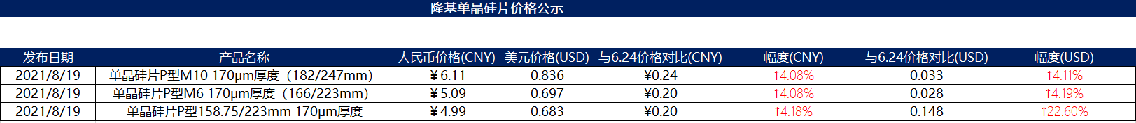 隆基關(guān)于8月單晶硅片價(jià)格公示2021-08-19 17:25瀏覽數(shù):31次