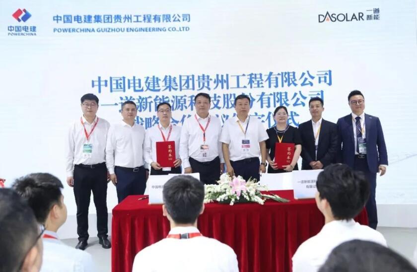 2024年6月14日,一道新能攜手中國電建集團貴州工程有限公司(以下簡稱“貴州電建”)簽署戰(zhàn)略合作協(xié)議,未來雙方將在項目開發(fā)、產業(yè)配套、先進技術、系統(tǒng)方案、海上光伏等方面開展深入合作。貴州電建總經理王遠輝先生、貴州電建副總經理羅杰先生、貴州電建新能源電力有限公司總經理向杰先生,一道新能董事長兼總裁劉勇先生、一道新能高級副總裁黃衛(wèi)紅女士、一道新能中國區(qū)總經理劉付炯先生、一道新能海外營銷副總裁鄭毅先生等相關領導出席簽約儀式。