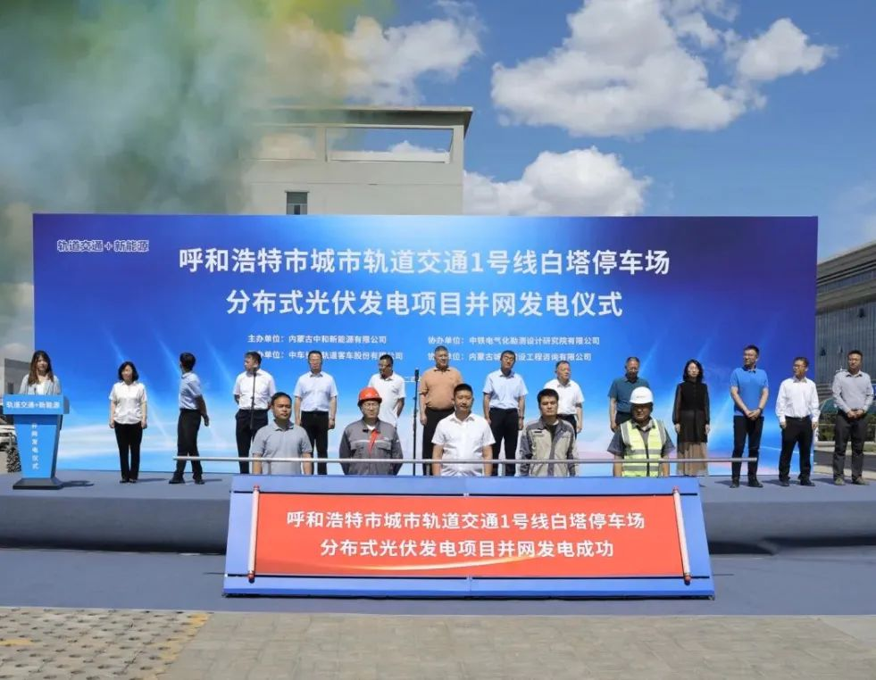 6月15日上午,內蒙古呼和浩特市交通集團中和新能源公司舉行呼和浩特市城市軌道交通1號線白塔停車場光伏發(fā)電項目并網發(fā)電儀式,該項目是市交通集團中和新能源公司實施的“軌道交通+新能源”第三個項目。