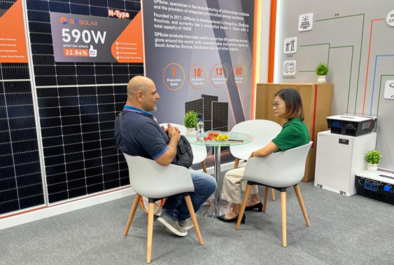 應(yīng)對(duì)歐洲市場(chǎng)的需求,格普光能此次帶來了N型TOPCon445w、590w、720w等多款高效能組件產(chǎn)品及戶用儲(chǔ)能解決方案。 N型TOPCon720w雙面組件搭載了210mm電池技術(shù),高功率的同時(shí)最高轉(zhuǎn)換效率達(dá)23.18%,背面發(fā)電增益最高達(dá)30%,呈現(xiàn)超高效能,適用于廣泛的應(yīng)用場(chǎng)景,現(xiàn)場(chǎng)引起廣泛客戶關(guān)注。445w全黑組件集高效穩(wěn)健與現(xiàn)代美學(xué)于一身,融合精致的產(chǎn)品細(xì)節(jié),呈現(xiàn)極致的光伏美學(xué)。結(jié)合堆疊式戶用儲(chǔ)能電池包,格普光能為歐洲戶用光伏市場(chǎng)提供了戶用光儲(chǔ)一站式解決方案,獲得眾多客戶青睞,駐足交流。