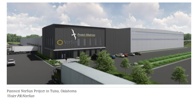 據(jù)報道,挪威光伏組件制造商NorSun公司計劃投資6.2億美元在俄克拉荷馬州塔爾薩建立其在美國的第一家制造工廠,每年將制造5GW硅棒和硅片。