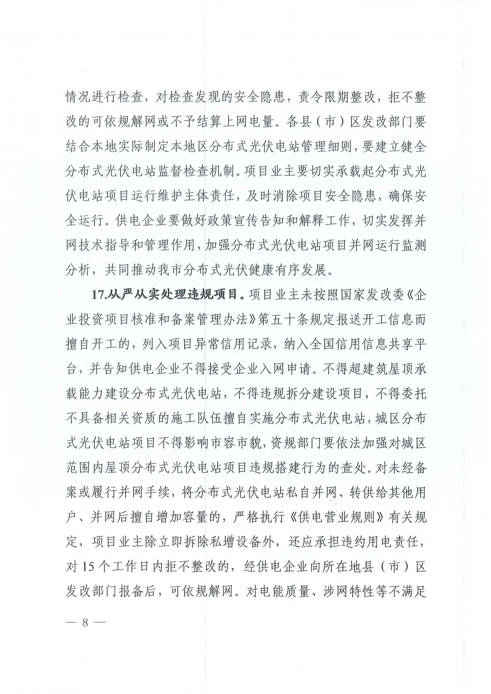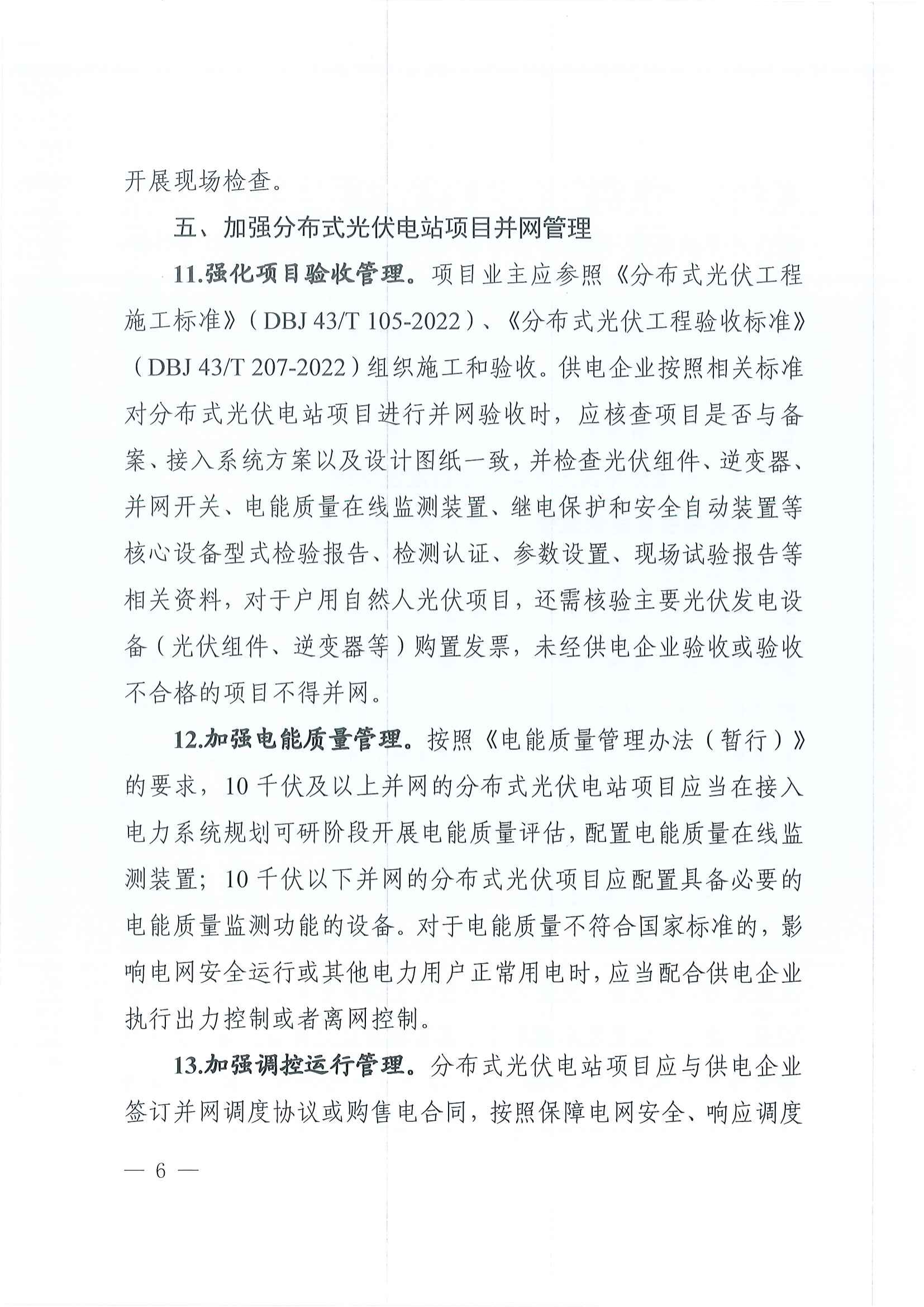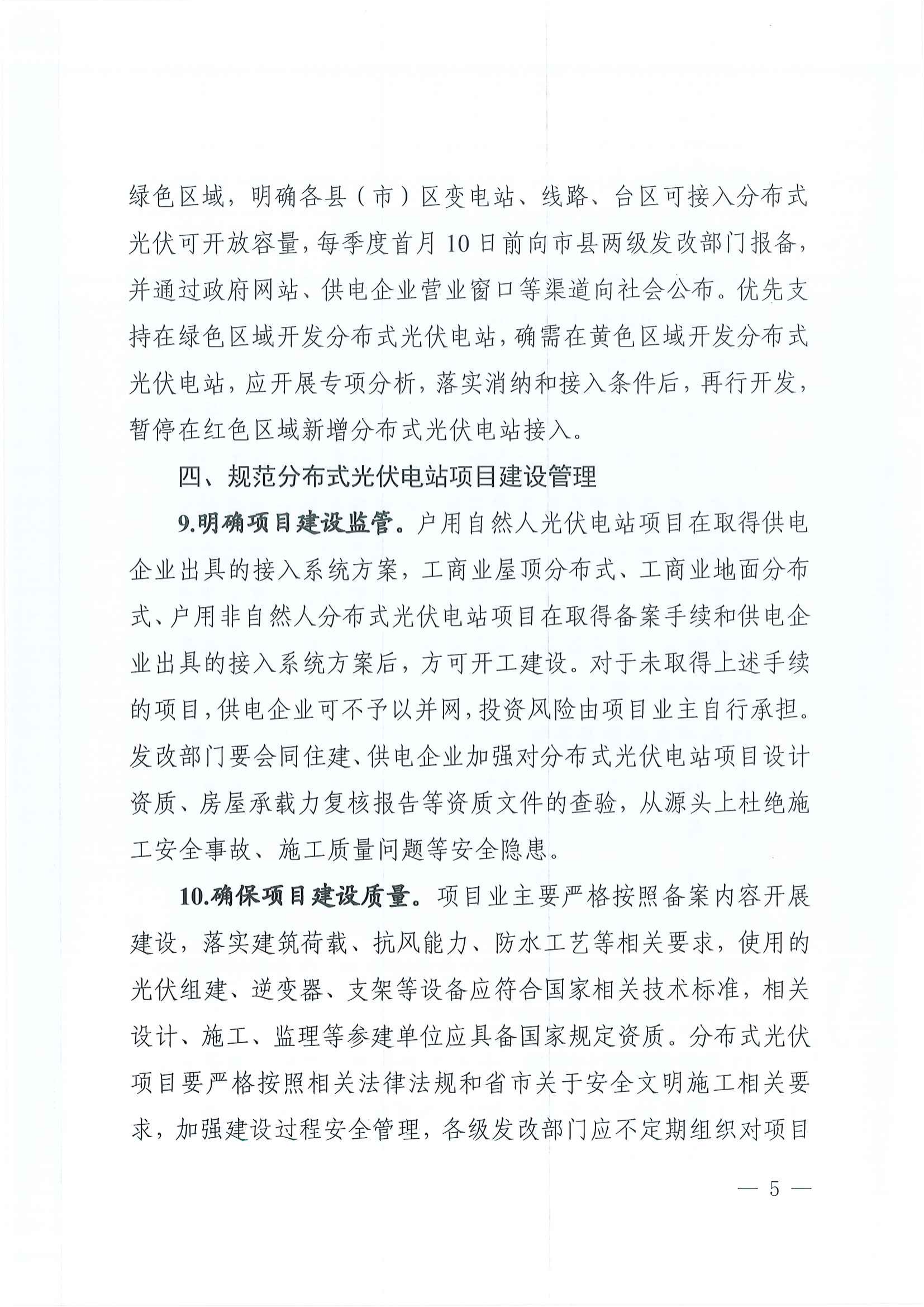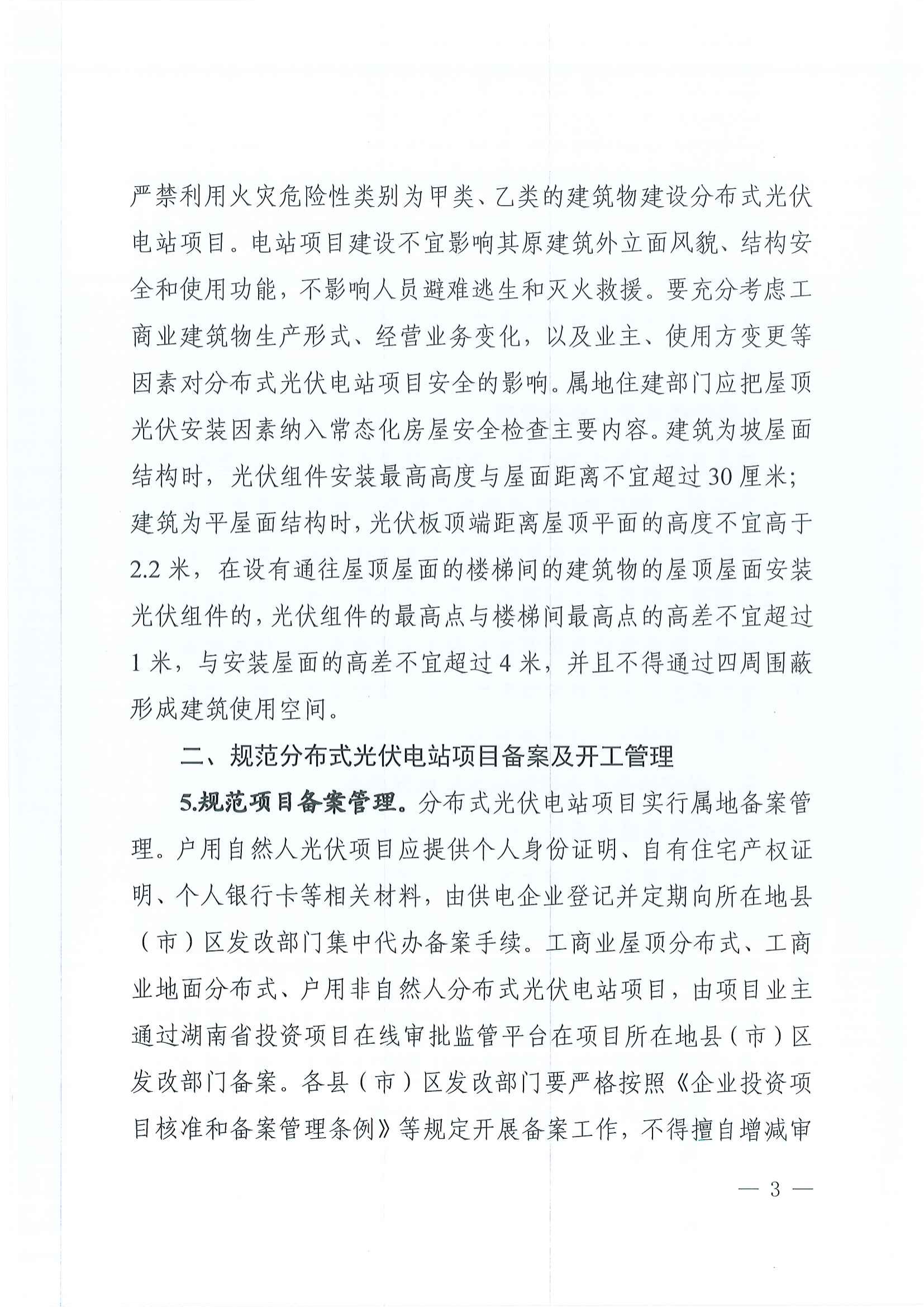 7月1日,株洲市發(fā)展和改革委員會、株洲市自然資源和規(guī)劃局、株洲市住房和城鄉(xiāng)建設(shè)局、國網(wǎng)湖南省電力有限公司株洲供電分公司聯(lián)合發(fā)布關(guān)于進一步規(guī)范分布式光伏電站項目管理的通知。 文件指出,株洲市分布式光伏電站分為戶用自然人光伏、工商業(yè)屋頂分布式光伏、工商業(yè)地面分布式光伏、戶用非自然人分布式光伏電站四類,除此之外的均為集中式光伏電站。 文件明確,優(yōu)先支持在綠色區(qū)域開發(fā)分布式光伏電站,確需在黃色區(qū)域開發(fā)分布式光伏電站,應(yīng)開展專項分析,落實消納和接入條件后,再行開發(fā),暫停在紅色區(qū)域新增分布式光伏電站接入。 文件提出,鼓勵開展模式創(chuàng)新。堅持科學(xué)布局、有序開發(fā)、就近接入、就地消納的原則,在分布式光伏電站可開放容量不足的區(qū)域鼓勵項目業(yè)主通過配建儲能或者租賃儲能、“匯集升壓”等措施,提升電網(wǎng)調(diào)峰能力和消納能力,鼓勵優(yōu)先租賃株洲市域內(nèi)共享儲能設(shè)施。鼓勵探索“分布式光伏+儲能+充電樁”等應(yīng)用場景,進一步提升分布式光伏消納能力。 提升電網(wǎng)承載能力。供電企業(yè)要加大投資改造力度,持續(xù)建強建優(yōu)電網(wǎng),提升電網(wǎng)承載能力,滿足大規(guī)模分布式光伏接網(wǎng)需求,助力構(gòu)建清潔低碳、安全充裕、經(jīng)濟高效、供需協(xié)同靈活智能的新型電力系統(tǒng)。 原文如下: