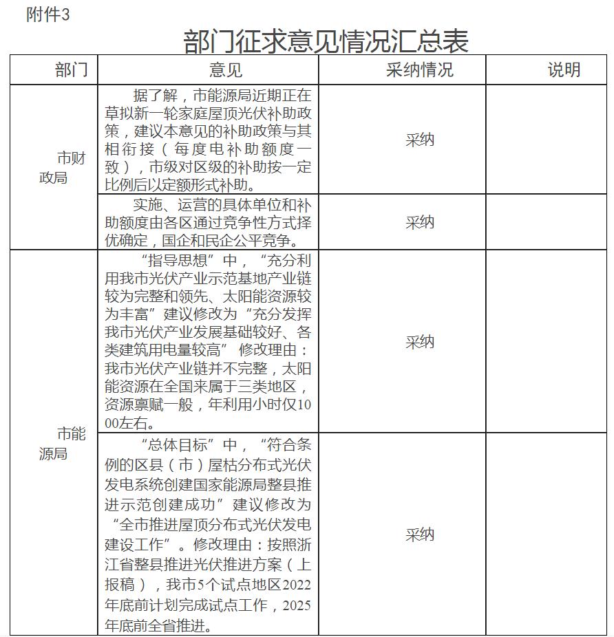 0.3元/kWh補貼標準!浙江寧波就大力推進屋頂分布式光伏征求意見9月8日,浙江省寧波市住建局發(fā)布《關(guān)于大力推進建筑屋頂分布式光伏發(fā)電系統(tǒng)應用工作的若干意見》 (征求意見稿),文件總體目標:到2025年底,全市推進屋頂分布式光伏發(fā)電建設(shè)工作,力爭30%以上的建筑屋頂設(shè)置分布式光伏發(fā)電系統(tǒng),90%以上新建建筑全面落實分布式光伏發(fā)電系統(tǒng),建筑領(lǐng)域分布式光伏裝機容量占全社會累計光伏并網(wǎng)容量超過3%。 文件指出要全面提升新建建筑分布式光伏發(fā)電系統(tǒng)建設(shè)標準。自2022年1月1日起申領(lǐng)施工許可證或提交施工圖設(shè)計審查公共建筑和工業(yè)建筑的,總建筑面積不小于3萬平方米新建住宅建筑應當設(shè)置光伏發(fā)電系統(tǒng),但建筑屋頂規(guī)劃設(shè)計有明確使用功能和用途的,或設(shè)計采用已列入國家發(fā)改委、科技部、工信部、自然資源部編制的《綠色技術(shù)推廣目錄》、且可用于建筑屋頂節(jié)能減排技術(shù)的綠色建筑建材除外。 加大財政資金激勵引導力度。加大對既有住宅建筑設(shè)置分布式光伏發(fā)電系統(tǒng)的補助,各區(qū)縣(市)要按照投資回收期內(nèi)業(yè)主投資收益分成比例不低于凈收益的20%、資產(chǎn)不流失、年發(fā)電量不降低的原則(以下簡稱“三不原則”)開展住宅小區(qū)屋頂分布式光伏發(fā)電系統(tǒng)設(shè)計、施工、交付驗收和運維等總承包模式;其中:光伏發(fā)電系統(tǒng)設(shè)備及安裝部分納入光伏補貼專項資金結(jié)算,基礎(chǔ)及屋面改造部分由財政全額補助并納入老舊住宅小區(qū)財政補助資金結(jié)算,由市級財政對2021年至2025年期間并網(wǎng)的建筑屋頂光伏項目按0.3元/千瓦時標準給予補貼,補貼時限為并網(wǎng)發(fā)電之后第二個完整抄表月起12個月。未列入老舊住宅小區(qū)改造計劃的住宅小區(qū)設(shè)置分布式光伏的,統(tǒng)一納入光伏補貼專項資金結(jié)算。明確歸全體業(yè)主所有的光伏發(fā)電凈收益屬性;歸全體業(yè)主所有的光伏發(fā)電凈收益專項用于補貼物業(yè)專項維修資金,按照物業(yè)專項維修資金界定屬性和管理,實行建賬到戶,任何單位或個人不得以任何名義用于向業(yè)主個人發(fā)放和違規(guī)使用,增強住宅小區(qū)“輸血”“造血”功能新途徑,實現(xiàn)政府、社會和業(yè)主“多贏”。 意見征集時間截至10月8日前。 全文如下: 關(guān)于征求《關(guān)于大力推進建筑屋頂分布式光伏發(fā)電系統(tǒng)應用工作的若干意見》 (征求意見稿)意見的通知 有關(guān)單位: 為認真貫徹全省碳達峰碳中和工作推進會精神,全面提升以分布式光伏發(fā)電系統(tǒng)等主要清潔能源的應用水平,促進建筑領(lǐng)域綠色低碳轉(zhuǎn)型,我局起草了《關(guān)于大力推進建筑屋頂分布式光伏發(fā)電系統(tǒng)應用工作的若干意見(征求意見稿)》,現(xiàn)向社會公開征求意見,各有關(guān)單位如有意見請于10月8日前反饋。 聯(lián)系人:毛筱煒,89187575,kjc1606@163.com 附件:《關(guān)于大力推進建筑屋頂分布式光伏發(fā)電系統(tǒng)應用工作的若干意見(征求意見稿)》 寧波市住房和城鄉(xiāng)建設(shè)局 2021年9月8日 附件 關(guān)于大力推進建筑屋頂分布式光伏發(fā)電系統(tǒng)應用工作的若干意見(征求意見稿) 各區(qū)縣(市)人民政府,市直及部省屬駐甬各單位: 為認真貫徹全省碳達峰碳中和工作推進會精神,全面提升以分布式光伏發(fā)電系統(tǒng)等主要清潔能源的應用水平,促進建筑領(lǐng)域綠色低碳轉(zhuǎn)型,經(jīng)市政府同意,現(xiàn)就建筑領(lǐng)域建筑屋頂分布式光伏發(fā)電系統(tǒng)推廣應用工作提出以下意見,請遵照執(zhí)行。 一、充分認識大力發(fā)展建筑屋頂分布式光伏發(fā)電的重要意義。 分布式光伏發(fā)電是我市重要的戰(zhàn)略性新興產(chǎn)業(yè),也是我市未來重點發(fā)展的可再生清潔能源。2016年以來,我市建筑領(lǐng)域分布式光伏發(fā)電系統(tǒng)應用全面啟動,特別是2019年我市調(diào)整了建筑領(lǐng)域的分布式光伏發(fā)電政策以來,新建建筑項目屋頂分布式光伏發(fā)電系統(tǒng)應用取得了積極成效,成為我市建成全國重要光伏產(chǎn)業(yè)基地的標志性成果之一。但是,必須清醒認識到,隨著我市確定2027年建筑領(lǐng)域?qū)崿F(xiàn)碳達峰目標,大量既有建筑屋頂資源閑置浪費,建筑能耗居高不下,碳減排壓力依然很大,各地各部門必須深入學習貫徹習近平生態(tài)文明思想和關(guān)于碳達峰碳中和重要論述精神,深入踐行“綠水青山就是金山銀山”理念,準確把握新發(fā)展階段,深入貫徹新發(fā)展理念,加快構(gòu)建新發(fā)展格局,統(tǒng)籌考慮“經(jīng)濟增長、能源安全、碳排放、居民生活”四個維度,對標對表能耗總量、能耗強度、碳排放總量和碳排放強度四個指標,加大建筑屋頂分布式光伏發(fā)電系統(tǒng)的推廣應用力度,切實打造“重要窗口”模范生重大標志性工程,為國家、省、市實現(xiàn)碳達峰碳中和做出更大貢獻。 二、基本原則和總體目標 (一)指導思想 全面貫徹黨的十九大和十九屆二中、三中、四中、五中全會精神,以習近平新時代中國特色社會主義思想為指導,堅持創(chuàng)新、協(xié)調(diào)、綠色