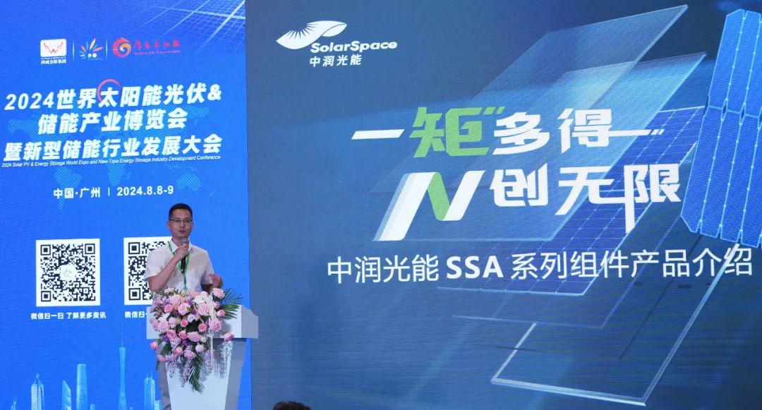 8月8日,為期三天的2024 世界太陽能光伏暨儲能產業(yè)博覽會在中國進出口商品交易會館 B 區(qū)拉開帷幕。中潤光能攜最新SSA系列組件與全場景光伏系統(tǒng)解決方案亮相11.1館R472展位,高效產品驚艷全場。 01新品出擊,專題演講引關注 中潤光能近期發(fā)布的新品矩形電池片組件SSA-66HD-N亮相廣州。展會上,中潤光能客戶支持總監(jiān)王聚濤在專題演講中詳細介紹了該款產品的優(yōu)勢。產品采用中潤成熟的無損切割技術、SMBB技術及高密度封裝技術,縮短電池片間距,優(yōu)化版型設計,增加有效發(fā)電面積。同時,該款產品在傳統(tǒng)182-72版型組件上進行設計優(yōu)化,維持1134mm寬度的情況下,長度由2278mm提升至2382mm,最大限度地利用集裝箱空間,降低運輸成本。憑借高功率、大尺寸優(yōu)勢,該款組件能夠有效降低BOS成本及LCOE,受到越來越多客戶的青睞。 中潤光能客戶支持總監(jiān)王聚濤 02多重選擇,解決方案齊亮相 除SSA-66HD-N組件,中潤光能還展出了SS9-66HD-N、SS8-72HD-N、SSA-48HDB-N等基于TOPCon技術的LuminaⅡ系列組件產品,該系列組件已獲得TUV、CE、CQC等權威機構的認證證書,并獲得PVEL“最佳表現(xiàn)”組件制造商的稱號和RETC全面最高成就獎。該系列組件兼具高輸出功率、高轉換效率、高可靠性、低衰減、低溫度系數(shù)及低度電成本等多項領先特性,覆蓋分布式戶用屋頂、工商業(yè)、集中式大型地面電站等多種應用場景。