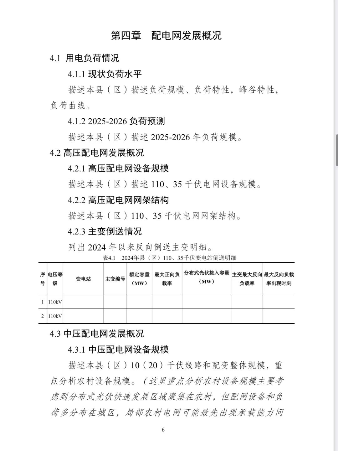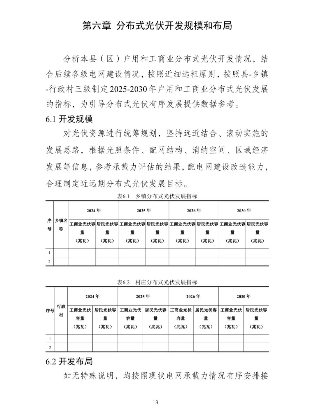 8月19日,江蘇發(fā)改委發(fā)布我省縣(區(qū))分布式光伏專項(xiàng)配電網(wǎng)規(guī)劃方案模版的通知。面對(duì)江蘇省一騎絕塵的分布式光伏裝機(jī)規(guī)模,要根據(jù)分布式光伏發(fā)展現(xiàn)狀、資源情況、負(fù)荷水平和電網(wǎng)承載力等,有針對(duì)性地做好規(guī)劃內(nèi)分布式光伏項(xiàng)目的接網(wǎng)消納方案。 各縣(區(qū))要分析各地源荷資源發(fā)展概況,如分布式光伏發(fā)展模式及出力特性;集中式電源規(guī)?,F(xiàn)狀、出力特性及未來(lái)新增情況;電負(fù)荷現(xiàn)狀資源及發(fā)展情況。 分析各地區(qū)中、高壓配電網(wǎng)設(shè)備規(guī)模、倒送情況,以及對(duì)當(dāng)前用電負(fù)荷進(jìn)行評(píng)估,對(duì)未來(lái)兩年用電負(fù)荷進(jìn)行預(yù)測(cè)等。 在電網(wǎng)分布式光伏承載力的評(píng)估分析中,最終的預(yù)測(cè)規(guī)模需要按鄉(xiāng)鎮(zhèn)及行政村形成總量、戶數(shù)、開(kāi)發(fā)比例等指標(biāo)。要說(shuō)明變電站層級(jí)、配變層級(jí)和線路層級(jí)剩余接入容量綜合考慮“短板效應(yīng)”,說(shuō)明現(xiàn)狀配電網(wǎng)各層級(jí)戶用分布式剩余接入容量。按照各配變與各縣村鎮(zhèn)的供電匹配關(guān)系,梳理各村莊分布式光伏剩余接入容量。 原文如下: 關(guān)于發(fā)布我省縣(區(qū))分布式光伏專項(xiàng)配電網(wǎng)規(guī)劃方案模版的通知 根據(jù)《國(guó)家能源局關(guān)于做好新能源消納工作保障新能源高質(zhì)量發(fā)展的通知》(國(guó)能發(fā)電力〔2024〕44號(hào))和《省發(fā)改委關(guān)于高質(zhì)量做好全省分布式光伏接網(wǎng)消納的通知》(蘇發(fā)改能源發(fā)〔2024〕906號(hào))要求,我委會(huì)同省電力公司編制了《縣(區(qū))分布式光伏專項(xiàng)配電網(wǎng)規(guī)劃方案》,供各縣(區(qū))開(kāi)展分布式光伏專項(xiàng)配電網(wǎng)規(guī)劃參考。 附件:XX縣(區(qū))分布式光伏專項(xiàng)配電網(wǎng)規(guī)劃方案 省發(fā)展改革委 2024年8月19日