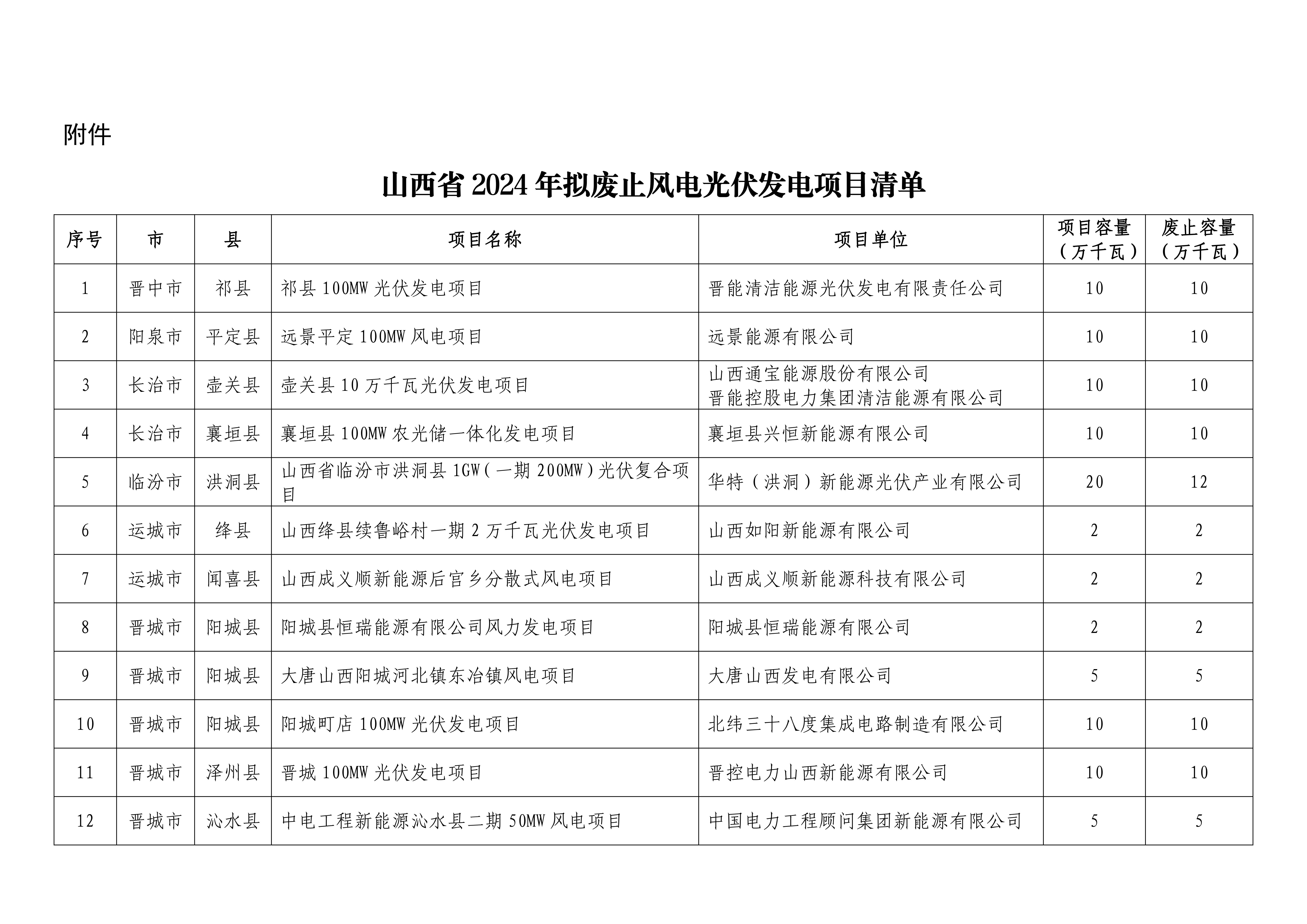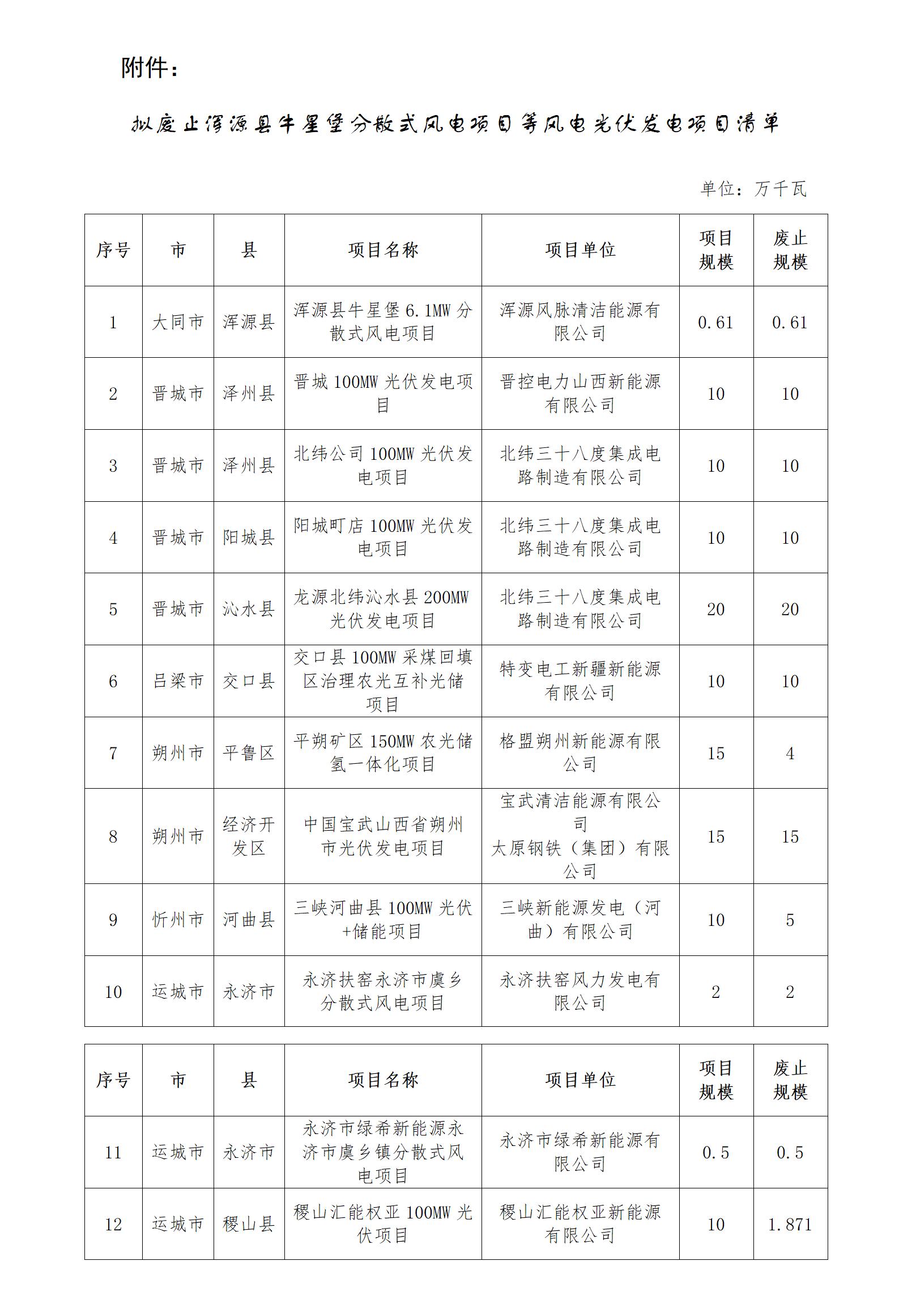 8月26日,山西能源局發(fā)布關(guān)于擬廢止渾源縣牛星堡分散式風(fēng)電項(xiàng)目等 風(fēng)電、光伏發(fā)電項(xiàng)目。 根據(jù)公告,山西能源局組織各市能源局對2022年及之前取得批復(fù)且尚未全容量并網(wǎng)的風(fēng)電、光伏發(fā)電項(xiàng)目進(jìn)行了梳理,經(jīng)匯總,擬廢止12個項(xiàng)目、規(guī)模91.981萬千瓦,其中光伏項(xiàng)目9個,規(guī)模為85.87萬千瓦,風(fēng)電項(xiàng)目3個,規(guī)模3.11萬千瓦。 今年4月,山西能源局對列入年度建設(shè)規(guī)模項(xiàng)目單位投資不積極、確定無法建設(shè)的風(fēng)電光伏發(fā)電項(xiàng)目進(jìn)行梳理后,廢止了12個項(xiàng)目,廢止規(guī)模88萬千瓦。其中光伏項(xiàng)目7個,規(guī)模為64萬千瓦,風(fēng)電項(xiàng)目5個,估摸24萬千瓦。 至此,山西兩批擬廢止的風(fēng)電、光伏發(fā)電項(xiàng)目共24個,規(guī)模為209.11萬千瓦,廢止項(xiàng)目規(guī)模176.981萬千瓦,其中光伏項(xiàng)目16個,規(guī)模為149.871萬千瓦;風(fēng)電項(xiàng)目8個,規(guī)模為27.11萬千瓦。