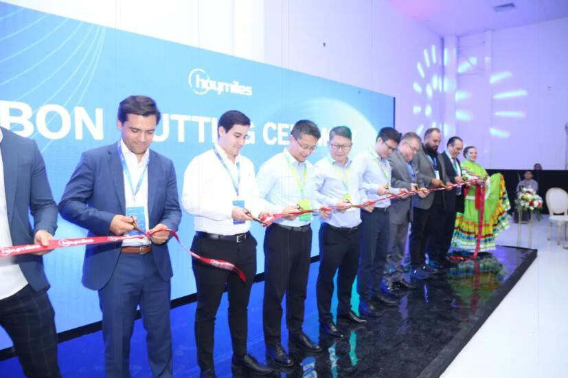 開業(yè)儀式伊始,禾邁總經(jīng)理楊波向來賓致歡迎辭,他說:“今天我們在蒙特雷的新制造基地正式投運了,這不僅代表著我們業(yè)務規(guī)模的擴張,也代表著我們對于北美、拉美地區(qū)可再生能源發(fā)展的投入。這座新的制造基地承載著‘開放能源,人人皆享’的理念,相信它將為禾邁及當?shù)毓夥袠I(yè)帶來新的機遇。” 隨后,副總經(jīng)理兼全球業(yè)務負責人容崗對禾邁墨西哥制造基地進行簡要介紹。他表示:“該制造基地是墨西哥第一個微逆生產(chǎn)基地,它的落成將助力禾邁更好地提供本地化的解決方案,為北美、拉美客戶提供一流的本地服務及產(chǎn)品。對于該制造基地的正式投運,我們深感自豪,期待與大家共同邁向更綠色、更可持續(xù)的未來。” 在隨后的剪彩儀式上,禾邁團隊以及WTS、Exel Solar、Mayorista、Solar Center、BayWa Mexico、Syscom、Amara等合作伙伴代表一起登臺,共同見證了這一激動人心的時刻。一位合作伙伴表示,“祝賀禾邁墨西哥制造基地開業(yè),我們相信禾邁領先的技術(shù)和產(chǎn)品,將為本地市場帶來更具競爭力的解決方案與服務支持,也期待未來與禾邁的合作更加密切。”