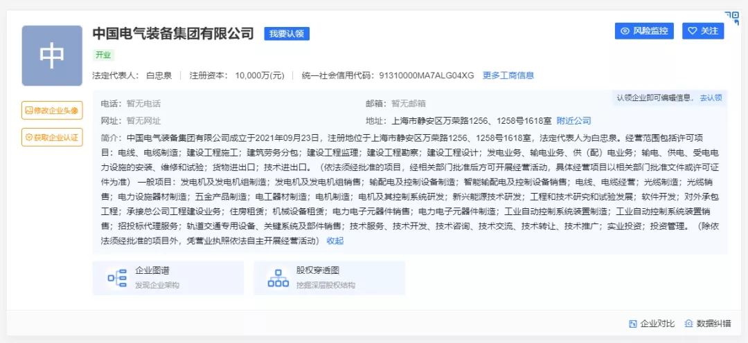 2021年9月23日,中國電氣裝備集團(tuán)有限公司正式成立,注冊資金1億元。 中國西電集團(tuán)黨委書記、董事長白忠泉出任中國電氣裝備集團(tuán)董事長,山東電工電氣集團(tuán)董事長、黨委書記周群出任董事,中國西電集團(tuán)總經(jīng)理、黨委副書記裴振江出任董事。