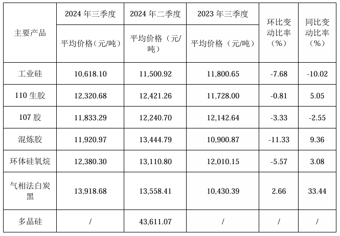 10月30日,合盛硅業(yè)公布第三季度業(yè)績(jī)報(bào)告。 對(duì)于年初至報(bào)告期末歸屬于上市公司股東的凈利潤(rùn)等變化情況,公告顯示,主要系前三季度工業(yè)硅及有機(jī)硅產(chǎn)品銷售價(jià)格下降;光伏產(chǎn)業(yè)鏈相關(guān)產(chǎn)品部分產(chǎn)能釋放,由于該等產(chǎn)品市場(chǎng)價(jià)格下降,計(jì)提跌價(jià)導(dǎo)致利潤(rùn)減少。 合盛硅業(yè)主要產(chǎn)品的產(chǎn)量、銷量及收入實(shí)現(xiàn)情況(不含稅): 合盛硅業(yè)主要產(chǎn)品的價(jià)格變動(dòng)情況(不含稅):