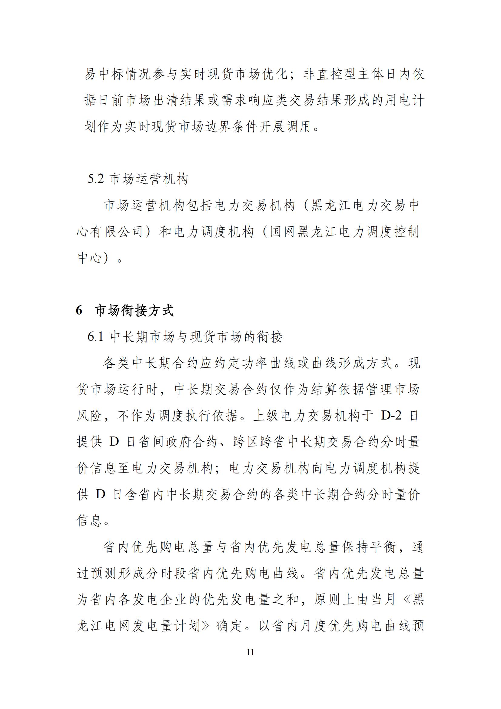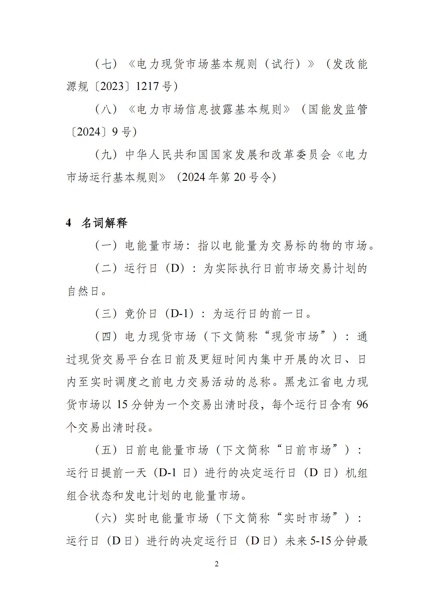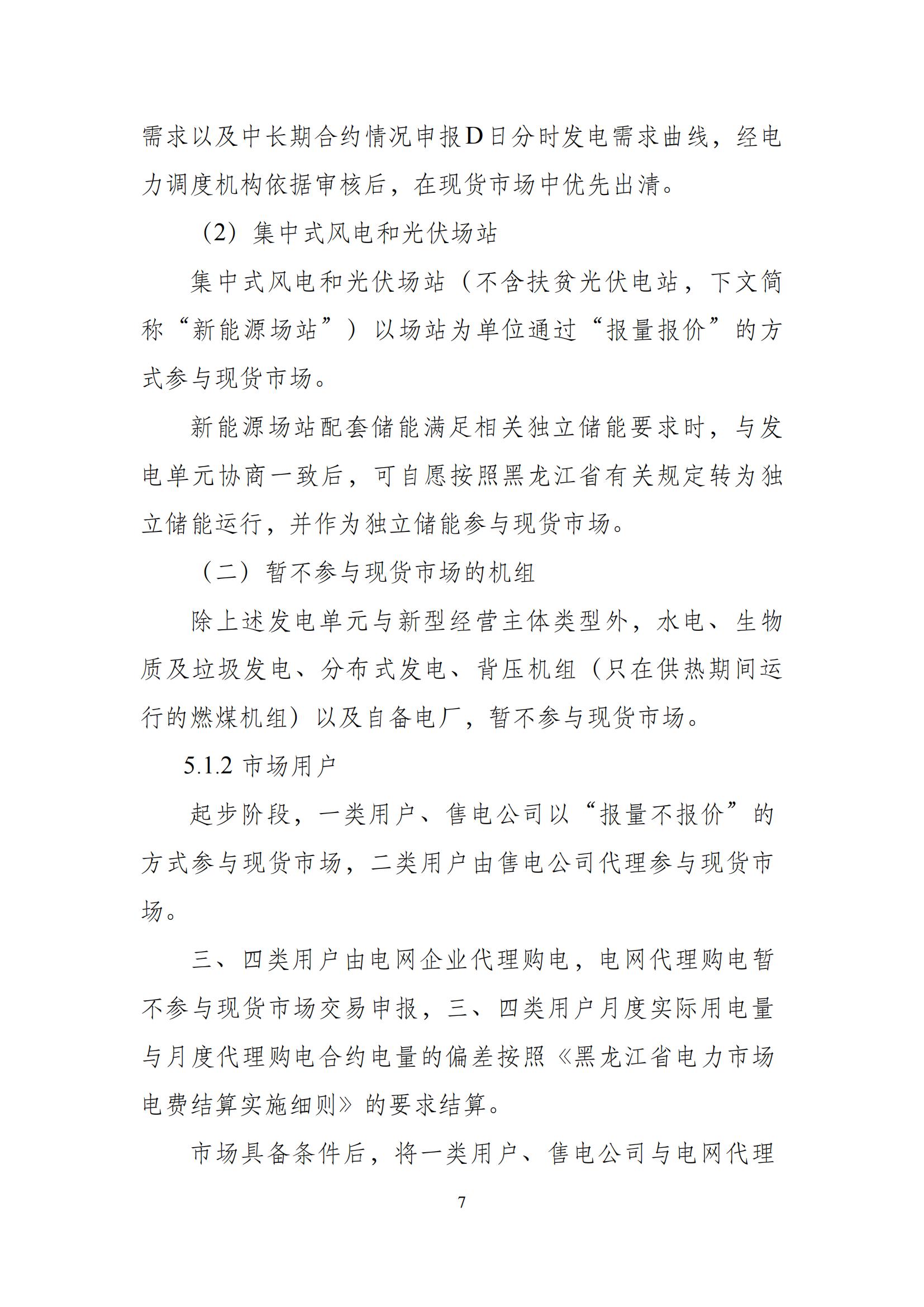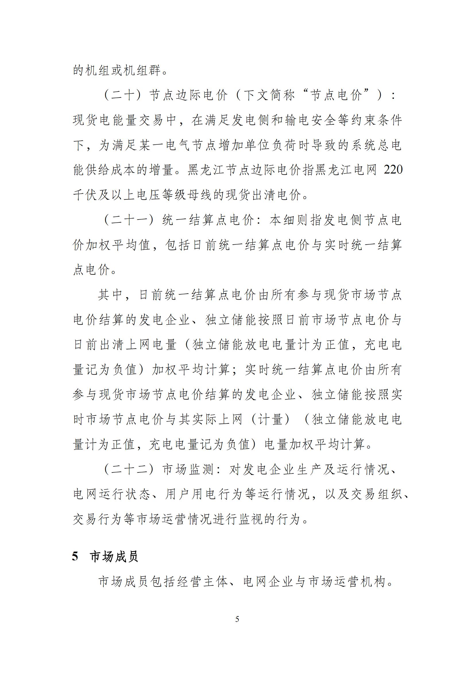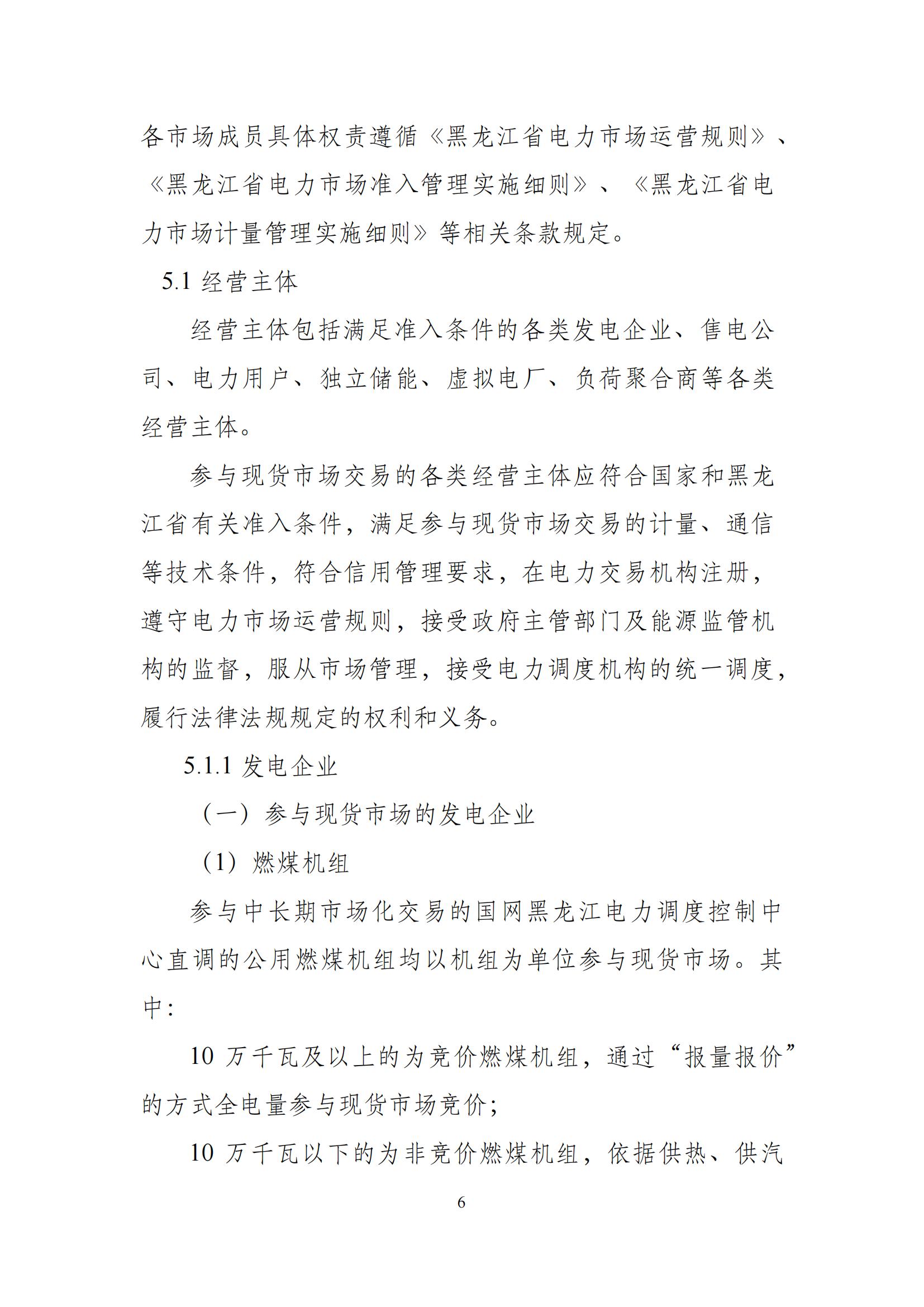 11月4日,黑龍江省發(fā)改委發(fā)布關(guān)于公開征求《黑龍江省電力市場運營規(guī)則及配套實施細(xì)則(試行2.0版)》意見的通知。文件明確,參與中長期市場化交易的國網(wǎng)黑龍江電力調(diào)度控制中心直調(diào)的公用燃煤機組均以機組為單位參與現(xiàn)貨市場。其中:10萬千瓦及以上的為競價燃煤機組,通過“報量報價”的方式全電量參與現(xiàn)貨市場競價;10萬千瓦以下的為非競價燃煤機組,依據(jù)供熱、供汽需求以及中長期合約情況申報D日分時發(fā)電需求曲線,經(jīng)電力調(diào)度機構(gòu)依據(jù)審核后,在現(xiàn)貨市場中優(yōu)先出清。 集中式風(fēng)電和光伏場站(不含扶貧光伏電站,簡稱“新能源場站”)以場站為單位通過“報量報價”的方式參與現(xiàn)貨市場。新能源場站配套儲能滿足相關(guān)獨立儲能要求時,與發(fā)電單元協(xié)商一致后,可自愿按照黑龍江省有關(guān)規(guī)定轉(zhuǎn)為獨立儲能運行,并作為獨立儲能參與現(xiàn)貨市場。 除上述發(fā)電單元與新型經(jīng)營主體類型外,水電、生物質(zhì)及垃圾發(fā)電、分布式發(fā)電、背壓機組(只在供熱期間運行的燃煤機組)以及自備電廠,暫不參與現(xiàn)貨市場。 全文如下: 關(guān)于公開征求《黑龍江省電力市場運營規(guī)則及配套實施細(xì)則(試行2.0版)》意見的通知 為規(guī)范黑龍江省電力現(xiàn)貨市場運營和管理,依法維護(hù)經(jīng)營主體的合法權(quán)益,推進(jìn)統(tǒng)一開放、競爭有序的電力市場體系建設(shè),按照國家發(fā)展改革委、國家能源局《關(guān)于印發(fā)<電力現(xiàn)貨市場基本規(guī)則(試行)>的通知》(發(fā)改能源規(guī)〔2023〕1217號)要求,結(jié)合黑龍江省電力現(xiàn)貨市場建設(shè)實際情況,省發(fā)展改革委會同東北能源監(jiān)管局組織對黑龍江省電力現(xiàn)貨市場規(guī)則進(jìn)行修編,形成了《黑龍江省電力市場運營規(guī)則及配套實施細(xì)則(試行2.0版)》,現(xiàn)向社會公開征求意見,歡迎有關(guān)單位和社會各界人士提出寶貴意見建議。 此次征求意見的時間是2024年11月4日至12月3日,相關(guān)意見請通過電子郵件反饋,感謝參與和支持! 聯(lián)系人:全虹達(dá)18945666266 郵箱:hljfgwtg@163.com 附件:黑龍江省電力市場運營規(guī)則及配套實施細(xì)則(試行2.0版) 黑龍江省發(fā)展和改革委員會 2024年11月4日 全文如下: 下一篇: 華潤1.5GW光伏項目開工
