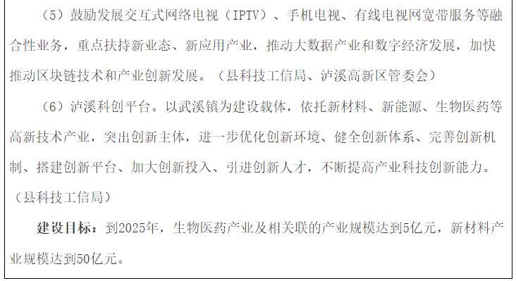 3.推進新型電力系統(tǒng)建設(shè)。打造安全高效智能電網(wǎng)。完善35千伏電網(wǎng),構(gòu)建35千伏主網(wǎng)架,形成覆蓋全縣的35千伏大環(huán)網(wǎng)結(jié)構(gòu)。實施電力擴容工程,新建一批110千伏及相關(guān)輸變電線路,將35千伏興隆場變電站升壓為110千伏。加快瀘溪高新區(qū)電網(wǎng)改造,加快完成全縣配電自動化建設(shè),積極建設(shè)節(jié)能、低碳、環(huán)保型智能電網(wǎng),提高電網(wǎng)的智能控制能力,建成用電環(huán)節(jié)綜合智能化體系。完善農(nóng)村能源基礎(chǔ)設(shè)施網(wǎng)絡(luò),加快新一輪農(nóng)村電網(wǎng)升級改造,實現(xiàn)農(nóng)村電網(wǎng)改造對村(社區(qū))全覆蓋。推動儲能技術(shù)應(yīng)用,積極推動風(fēng)電和集中式光伏項目配建儲能電站。(縣發(fā)改局、縣科技工信局、縣水利局、國網(wǎng)瀘溪縣供電公司、瀘溪高新區(qū)管委會等按職責(zé)分工負責(zé)) (二)促進節(jié)能降碳協(xié)同增效 1.提升節(jié)能管理能力。強化“三線一單”成果應(yīng)用和分區(qū)管控約束,實施碳排放強度和總量控制制度,開展重點用能單位能源計量審查工作,完善區(qū)域、企業(yè)、項目碳排放核算核查和監(jiān)督制度。推進重點用能單位制定能源計量自查方案,逐步將年綜合能耗量0.5萬噸標準煤以上不滿1萬噸標準煤的用能單位、數(shù)據(jù)中心、公共機構(gòu)等納入能源計量審查范圍。提高節(jié)能管理信息化水平,提升節(jié)能減排測控技術(shù)和手段,增強在線實時監(jiān)測能力,建立能耗在線監(jiān)測系統(tǒng)。加強重點企業(yè)溫室氣體排放監(jiān)測與數(shù)據(jù)報送,推進企事業(yè)單位溫室氣體排放數(shù)據(jù)的統(tǒng)一采集、相互補充、交叉校核。構(gòu)建溫室氣體協(xié)同治理體系,建立跨部門聯(lián)動機制,綜合運用行政處罰、信用監(jiān)管、差別電價、差別水價等手段,增強節(jié)能監(jiān)察約束力,將溫室氣體排放重點單位納入生態(tài)環(huán)境監(jiān)管執(zhí)法體系?!笆奈濉逼陂g,對已通過審查的年耗能達到1萬噸標煤以上的重點用能單位至少進行一次企業(yè)自查或“雙隨機、一公開”抽查,對年耗能0.5萬噸標煤以上不滿1萬噸標煤的用能單位做到能源計量審查全覆蓋。(縣發(fā)改局、縣科技工信局、州生態(tài)環(huán)境局瀘溪分局、縣市場監(jiān)督管理局等按職責(zé)分工負責(zé)) 2.推進節(jié)能增效行動。不斷強化環(huán)保調(diào)控,對重點建設(shè)項目提前介入、主動服務(wù)、加快審批,助推綠色經(jīng)濟崛起。落實重點生態(tài)功能區(qū)產(chǎn)業(yè)準入負面清單,嚴控新上污染重的項目,化工、造紙、建材、水泥制造等重點污染排放行業(yè)新建項目實施嚴格的總量前置審核,嚴格控制其產(chǎn)能擴張。利用綜合標準依法依規(guī)淘汰落后產(chǎn)能,進一步加大錳鋅、化工等行業(yè)淘汰落后產(chǎn)能的力度,完成省州下達的淘汰落后產(chǎn)能目標任務(wù)。嚴格落實總量替代、排污許可等手段,綜合運用差別電價、以獎促治、規(guī)費減免、貸款貼息等措施,實行污染物排放“等量置換”或“減量置換”,對未取得主要污染物總量指標的項目一律不予辦理排污許可證和環(huán)保驗收,控制污染物新增量,對不符合規(guī)定的項目堅決停建。嚴格限制“兩高一資”和過剩產(chǎn)能擴張類項目融資。加強重點排污行業(yè)如有色金屬冶煉企業(yè)技術(shù)升級改造,利用新技術(shù)、新工藝、新材料、新設(shè)備等手段推動企業(yè)節(jié)能減排。按照全省清潔生產(chǎn)審核實施方案,深入推進全縣能源、建材、有色、化工、印染等行業(yè)強制性清潔生產(chǎn)審核。到2025年,全縣單位GDP能耗和二氧化碳排放下降完成州下達目標。(縣發(fā)改局、州生態(tài)環(huán)境局瀘溪分局、縣科技工信局、縣市場監(jiān)督管理局等按職責(zé)分工負責(zé)) (三)構(gòu)建綠色低碳產(chǎn)業(yè)格局 1.加快培育戰(zhàn)略性低碳新興產(chǎn)業(yè)。實施信息網(wǎng)絡(luò)、新能源、新材料、生物醫(yī)藥等重大項目,把一批新興產(chǎn)業(yè)培育成主導(dǎo)產(chǎn)業(yè)。進一步做大做強生物醫(yī)藥產(chǎn)業(yè),聚焦天然植物提取特色藥材飲片及化學(xué)原料藥和中間體等領(lǐng)域開發(fā)應(yīng)用,大力推動中藥材種植、加工和銷售全產(chǎn)業(yè)鏈發(fā)展,重點發(fā)展迷迭香、五倍子、青蒿素等中成藥保健品產(chǎn)品開發(fā),加大培育和引進生物醫(yī)藥企業(yè),著力建設(shè)瀘溪生物科技產(chǎn)業(yè)園,發(fā)展生物醫(yī)藥產(chǎn)業(yè)集群。大力推進新材料產(chǎn)業(yè)的工藝技術(shù)及產(chǎn)品的研發(fā),研究開發(fā)先進復(fù)合材料、金屬新材料、先進儲能材料、增材制造材料、化工新材料、綠色建筑材料,滿足航天航空、交通運輸、先進裝備、電子信息、新能源、建筑工業(yè)、方便自熱食品行業(yè)等領(lǐng)域?qū)π虏牧系男枨?,推進新材料產(chǎn)業(yè)共性技術(shù)、關(guān)鍵技術(shù)和核心技術(shù)的重大突破,加快推進湖南省高性能復(fù)合材料產(chǎn)業(yè)園建設(shè),著力打造成為具有全國影響力的鋁基復(fù)合材料產(chǎn)業(yè)集聚區(qū)。加快風(fēng)電、太陽能等新能源應(yīng)用技術(sh