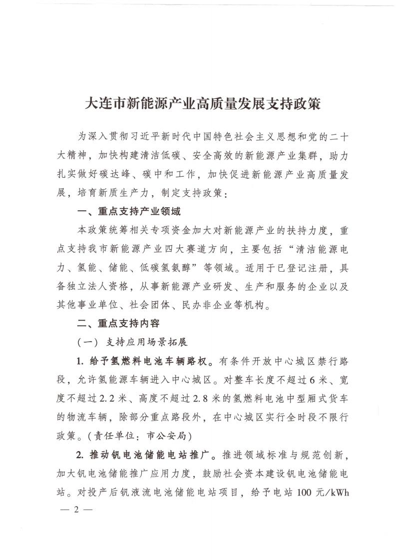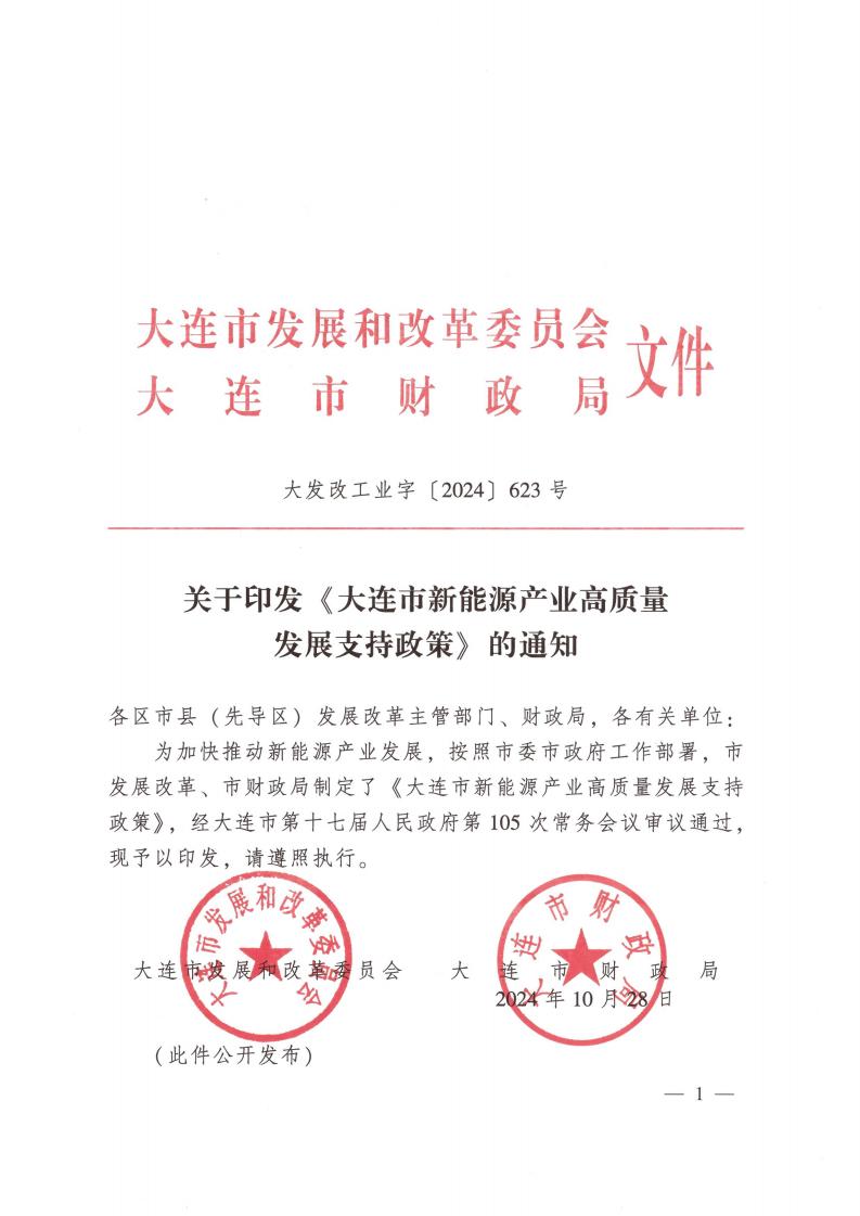 11月7日,大連市發(fā)改委印發(fā)關(guān)于《大連市新能源產(chǎn)業(yè)高質(zhì)量發(fā)展支持政策》的通知。通知提到,支持新能源產(chǎn)業(yè)項(xiàng)目落地。 優(yōu)先支持投資20億元以上的裝備制造類(lèi)項(xiàng)目爭(zhēng)取風(fēng)電光伏資源指標(biāo)。 鼓勵(lì)共享儲(chǔ)能模式推廣。 為促進(jìn)新能源行業(yè)創(chuàng)新發(fā)展,保障電網(wǎng)安全穩(wěn)定運(yùn)行,我市新增建設(shè)風(fēng)電、光伏發(fā)電項(xiàng)目,配套占風(fēng)電、光伏裝機(jī)規(guī)模10%以上的儲(chǔ)能設(shè)施,采用集中共享方式,優(yōu)先選擇全釩液流儲(chǔ)能等具有本質(zhì)安全特性的儲(chǔ)能技術(shù)路線。 鼓勵(lì)設(shè)立新能源產(chǎn)業(yè)投資基金。 吸引國(guó)內(nèi)外各類(lèi)投資機(jī) 構(gòu)成立新能源產(chǎn)業(yè)相關(guān)子基金,支持新能源產(chǎn)業(yè)發(fā)展。 原文如下: