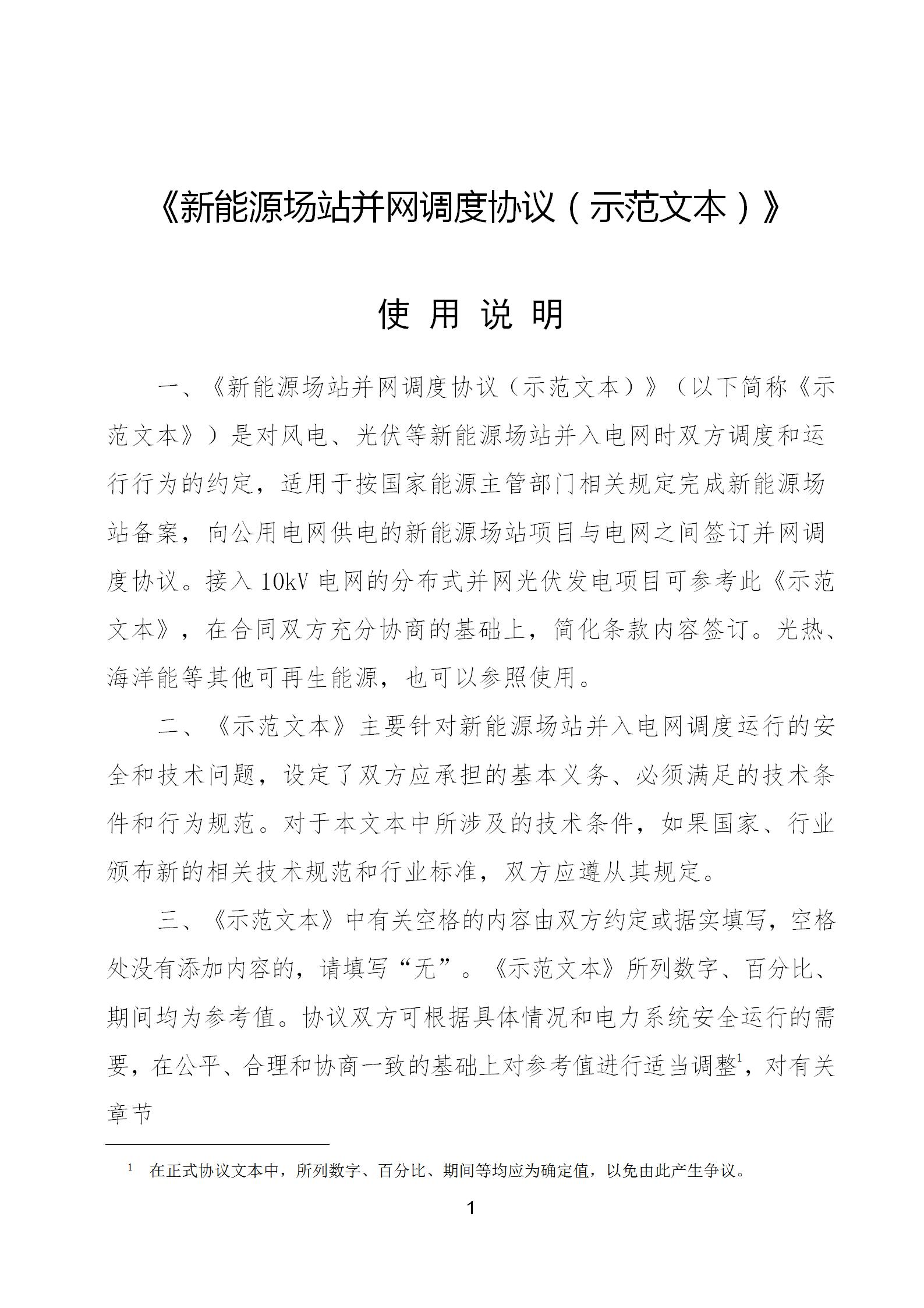 10月8日,國家能源局公開征求對《并網(wǎng)調度協(xié)議(示范文本)(征求意見稿)》《新能源場站并網(wǎng)調度協(xié)議(示范文本)(征求意見稿)》《電化學儲能電站并網(wǎng)調度協(xié)議(示范文本)(征求意見稿)》《購售電合同(示范文本)(征求意見稿)》意見。 《新能源場站并網(wǎng)調度協(xié)議(示范文本)》(以下簡稱《示范文本》)是對風電、光伏等新能源場站并入電網(wǎng)時雙方調度和運行行為的約定,適用于按國家能源主管部門相關規(guī)定完成新能源場站備案,向公用電網(wǎng)供電的新能源場站項目與電網(wǎng)之間簽訂并網(wǎng)調度協(xié)議。接入10kV電網(wǎng)的分布式并網(wǎng)光伏發(fā)電項目可參考此《示范文本》,在合同雙方充分協(xié)商的基礎上,簡化條款內容簽訂。光熱、海洋能等其他可再生能源,也可以參照使用。