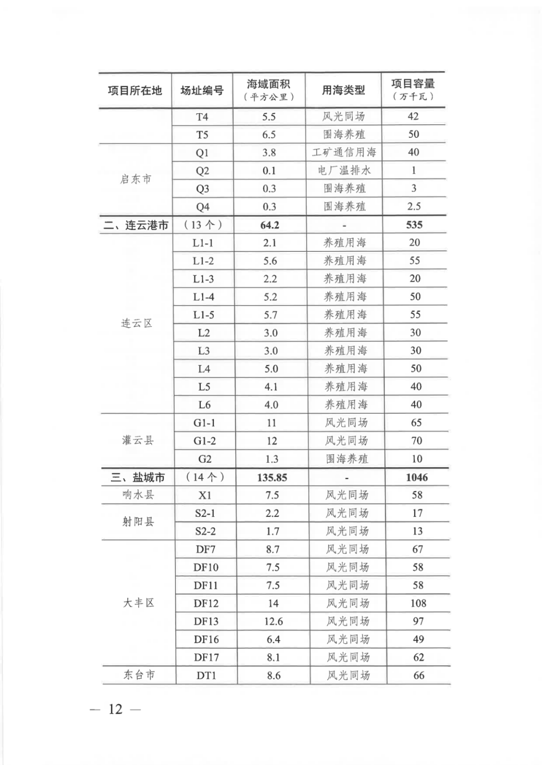12月24日,江蘇省發(fā)改委印發(fā)《江蘇省海上光伏開發(fā)建設(shè)實(shí)施方案(2025—2030年)》的通知,對此前2023—2027的相關(guān)規(guī)劃進(jìn)行優(yōu)化調(diào)整,移除不符合政策的海上光伏場址,重點(diǎn)利用海上風(fēng)電場區(qū)、圍海養(yǎng)殖區(qū)以及電廠確權(quán)溫排水區(qū)開展海上光伏建設(shè)。 根據(jù)海上光伏四類選址區(qū)域的要求,擬開展60個海上光伏項(xiàng)目場址建設(shè)工作,規(guī)模27.25GW,用海面積346.25平方公里。文件規(guī)劃,到2027年全省累計(jì)并網(wǎng)海上光伏規(guī)模要達(dá)到10GW以上;2030年要達(dá)到15GW以上,力爭20GW級,全力打造千萬千瓦級海上光伏基地。 目前,各市縣已經(jīng)初步完成海上光伏項(xiàng)目選址,其中南通市布局33個海上光伏項(xiàng)目,規(guī)模11.44GW;連云港布局13個海上光伏項(xiàng)目,規(guī)模5.35GW;鹽城布局14個海上光伏項(xiàng)目,規(guī)模10.46GW。(各選址及項(xiàng)目清單見文末) 由各區(qū)市確定優(yōu)選方案,統(tǒng)籌推進(jìn)開展項(xiàng)目競爭性配置,支持和鼓勵民營企業(yè)、民營資本投資海上光伏項(xiàng)目。 文件指出,要加快推進(jìn)中核田灣2GW、啟動400MW、國華如東400MW已經(jīng)列入第三批國家級風(fēng)光大基地的海上光伏項(xiàng)目建設(shè)并按期投產(chǎn),全面總結(jié)基地建設(shè)經(jīng)驗(yàn),確保2027、2030年目標(biāo)的完成。 文件要求,要充分利用周邊已布局的海上風(fēng)電、清潔火電等資源,實(shí)現(xiàn)“風(fēng)光火”打捆送出,配置或購買不低于10%、2小時(shí)的新型儲能設(shè)施或服務(wù)。 此外,電網(wǎng)企業(yè)開展海上光伏接網(wǎng)消納專項(xiàng)方案研究,初步規(guī)劃南通、連云港、鹽城建設(shè)16~20座220千伏陸上匯集升壓站;在灌云縣、響水縣、大豐區(qū)、東臺市等地規(guī)劃線路送出方案。 文件強(qiáng)調(diào),海上光伏項(xiàng)目建設(shè)要嚴(yán)格避讓生態(tài)紅線、濕地、洪水入海港道等等一系列敏感區(qū)域,嚴(yán)格落實(shí)各項(xiàng)手續(xù),在未取得自然資源、生態(tài)環(huán)境、林、海、軍等相關(guān)主管部門審批前不得開工。 在建技術(shù)方面,鼓勵適應(yīng)海洋鹽霧環(huán)境的高效組件、大跨度剛性及鋅鋁鎂支架、智能化逆變器等一系列高效技術(shù),打造一批海上光伏“鏈主企業(yè)” 具體見下: