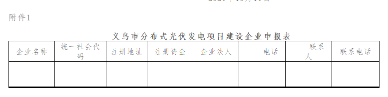10月11日,浙江義烏市發(fā)改局發(fā)布《關(guān)于開展義烏市分布式光伏發(fā)電項(xiàng)目建設(shè)優(yōu)秀企業(yè)評(píng)選工作的通知》。通知指出,為了提高義烏市分布式光伏發(fā)電項(xiàng)目規(guī)?;l(fā)展質(zhì)量,引導(dǎo)光伏發(fā)電項(xiàng)目建設(shè)規(guī)范、安全、有序,保證光伏發(fā)電項(xiàng)目長(zhǎng)期穩(wěn)定運(yùn)行,擬面向社會(huì)評(píng)選光伏發(fā)電項(xiàng)目建設(shè)優(yōu)秀企業(yè)。 申報(bào)主體要求:必須為有從事光伏發(fā)電項(xiàng)目建設(shè)相關(guān)資質(zhì)的企業(yè)法人;企業(yè)應(yīng)具有分布式光伏發(fā)電項(xiàng)目建設(shè)、安裝、運(yùn)維的能力,配備必要的技術(shù)人員,安裝和運(yùn)維人員應(yīng)具備與服務(wù)內(nèi)容相匹配的技術(shù)能力;企業(yè)抗風(fēng)險(xiǎn)能力強(qiáng),有長(zhǎng)期(25年以上)運(yùn)行服務(wù)能力;新建的光伏發(fā)電項(xiàng)目應(yīng)按裝機(jī)容量10%比例配備儲(chǔ)能設(shè)施 原文及附件如下: 關(guān)于開展義烏市分布式光伏發(fā)電項(xiàng)目建設(shè)優(yōu)秀企業(yè)評(píng)選工作的通知 為切實(shí)提高我市分布式光伏發(fā)電項(xiàng)目(以下簡(jiǎn)稱“光伏發(fā)電項(xiàng)目”)規(guī)?;l(fā)展質(zhì)量,引導(dǎo)光伏發(fā)電項(xiàng)目建設(shè)規(guī)范、安全、有序,保證光伏發(fā)電項(xiàng)目長(zhǎng)期穩(wěn)定運(yùn)行,擬面向社會(huì)評(píng)選光伏發(fā)電項(xiàng)目建設(shè)優(yōu)秀企業(yè)。具體如下: 一、公開征集光伏發(fā)電項(xiàng)目建設(shè)企業(yè)參與申報(bào),申報(bào)者應(yīng)為獨(dú)立法人,有從事光伏發(fā)電項(xiàng)目建設(shè)的相應(yīng)資質(zhì),同時(shí)能接受附件二中的相關(guān)要求。 二、申報(bào)者應(yīng)在規(guī)定的時(shí)間內(nèi)(2021年10月20日前)提交申請(qǐng),并將相關(guān)文件資料置于密封的檔案袋中,并騎縫加蓋單位公章,郵寄到義烏市江濱北路281號(hào)發(fā)改局辦公室(不接受直接送達(dá)的文件),請(qǐng)自行把握時(shí)間,逾期不再受理。 三、申報(bào)者請(qǐng)?zhí)顖?bào)《義烏市分布式光伏發(fā)電項(xiàng)目建設(shè)企業(yè)申報(bào)表》(附件1),于2021年10月20日前發(fā)送至能源科。聯(lián)系人:虞躍峰 0579-85591035,13516793123,郵箱:yuyuef@foxmail.com。 四、發(fā)改局組織相關(guān)部門對(duì)參與申報(bào)的企業(yè)按照綜合評(píng)分法進(jìn)行評(píng)審。 義烏市發(fā)展和改革局 2021年10月11日 附件1
