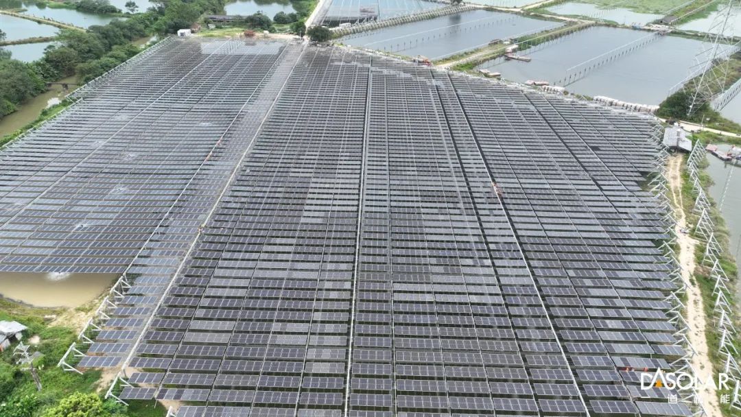漁光篇 立體復(fù)用 堅(jiān)韌本色筑牢可靠防線 一道新能柔性光伏支架可實(shí)現(xiàn)20m-40m的大跨距,東西向最大連續(xù)長(zhǎng)度可超過(guò)1500m,最大凈空高度≥10m,有效減少樁基數(shù)量的同時(shí)為光伏陣列下方預(yù)留了充足的利用空間。 在廣東清遠(yuǎn),一道新能憑借深厚的技術(shù)積累與創(chuàng)新精神,深度參與并成功打造了當(dāng)?shù)厥讉€(gè)漁光互補(bǔ)示范項(xiàng)目。項(xiàng)目采用了一道新能自主研發(fā)的大跨距柔性光伏支架,這一創(chuàng)新性設(shè)計(jì)巧妙化解了傳統(tǒng)能源項(xiàng)目與土地資源緊張的矛盾。支架高懸于魚塘之上,既不占用寶貴的土地資源,又最大程度維持了魚塘生態(tài)環(huán)境的完整性,讓漁業(yè)作業(yè)不受干擾,照常開展。值得一提的是,該項(xiàng)目開創(chuàng)性地打造了 “抗臺(tái)、養(yǎng)魚、發(fā)電” 一體化模式。在臺(tái)風(fēng)頻發(fā)的沿海地區(qū),柔性光伏支架經(jīng)過(guò)特殊設(shè)計(jì),具備出色的抗臺(tái)風(fēng)能力,保障了光伏設(shè)施在惡劣天氣下的穩(wěn)定運(yùn)行。高架的光伏組件不僅實(shí)現(xiàn)了綠色發(fā)電,還發(fā)揮了額外的生態(tài)效益,它們有效減少了魚塘水分蒸發(fā),為珍貴的水資源撐起了一把 “保護(hù)傘”,實(shí)現(xiàn)了能源生產(chǎn)、漁業(yè)養(yǎng)殖與生態(tài)保護(hù)的多贏局面,為漁光互補(bǔ)項(xiàng)目的發(fā)展樹立了全新標(biāo)桿 。