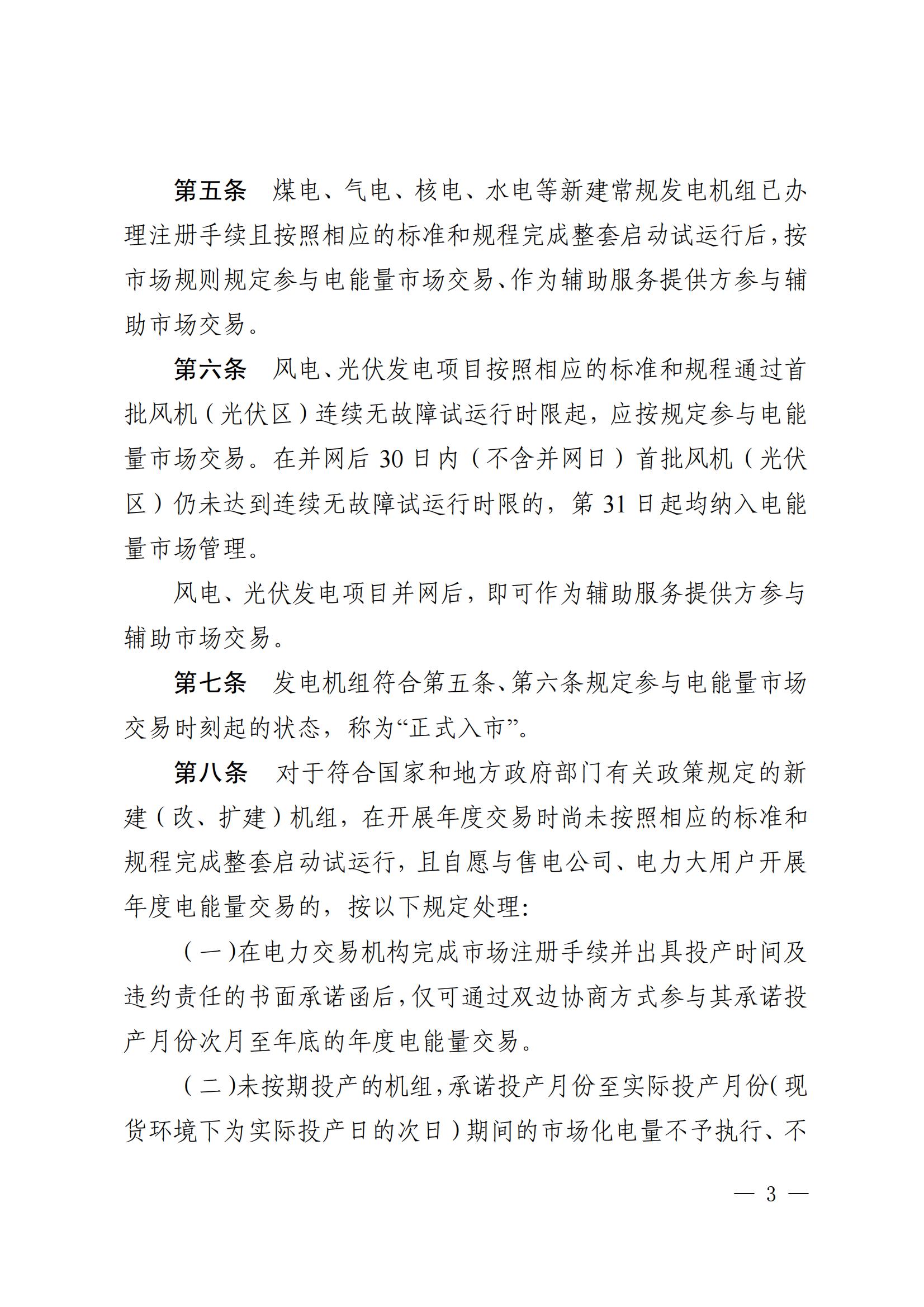 1月10日,國(guó)家能源局南方監(jiān)管局關(guān)于公開征求《廣東、廣西、海南發(fā)電機(jī)組進(jìn)入及退出商業(yè)運(yùn)營(yíng)與電力市場(chǎng)業(yè)務(wù)銜接規(guī)則》意見的通知,通知指出,風(fēng)電、光伏發(fā)電項(xiàng)目按照相應(yīng)的標(biāo)準(zhǔn)和規(guī)程通過首批風(fēng)機(jī)(光伏區(qū))連續(xù)無故障試運(yùn)行時(shí)限起,應(yīng)按規(guī)定參與電能量市場(chǎng)交易。在并網(wǎng)后30日內(nèi)(不含并網(wǎng)日)首批風(fēng)機(jī)(光伏區(qū))仍未達(dá)到連續(xù)無故障試運(yùn)行時(shí)限的,第31日起均納入電能量市場(chǎng)管理。 風(fēng)電、光伏發(fā)電項(xiàng)目并網(wǎng)后,即可作為輔助服務(wù)提供方參與輔助市場(chǎng)交易。 原文如下: