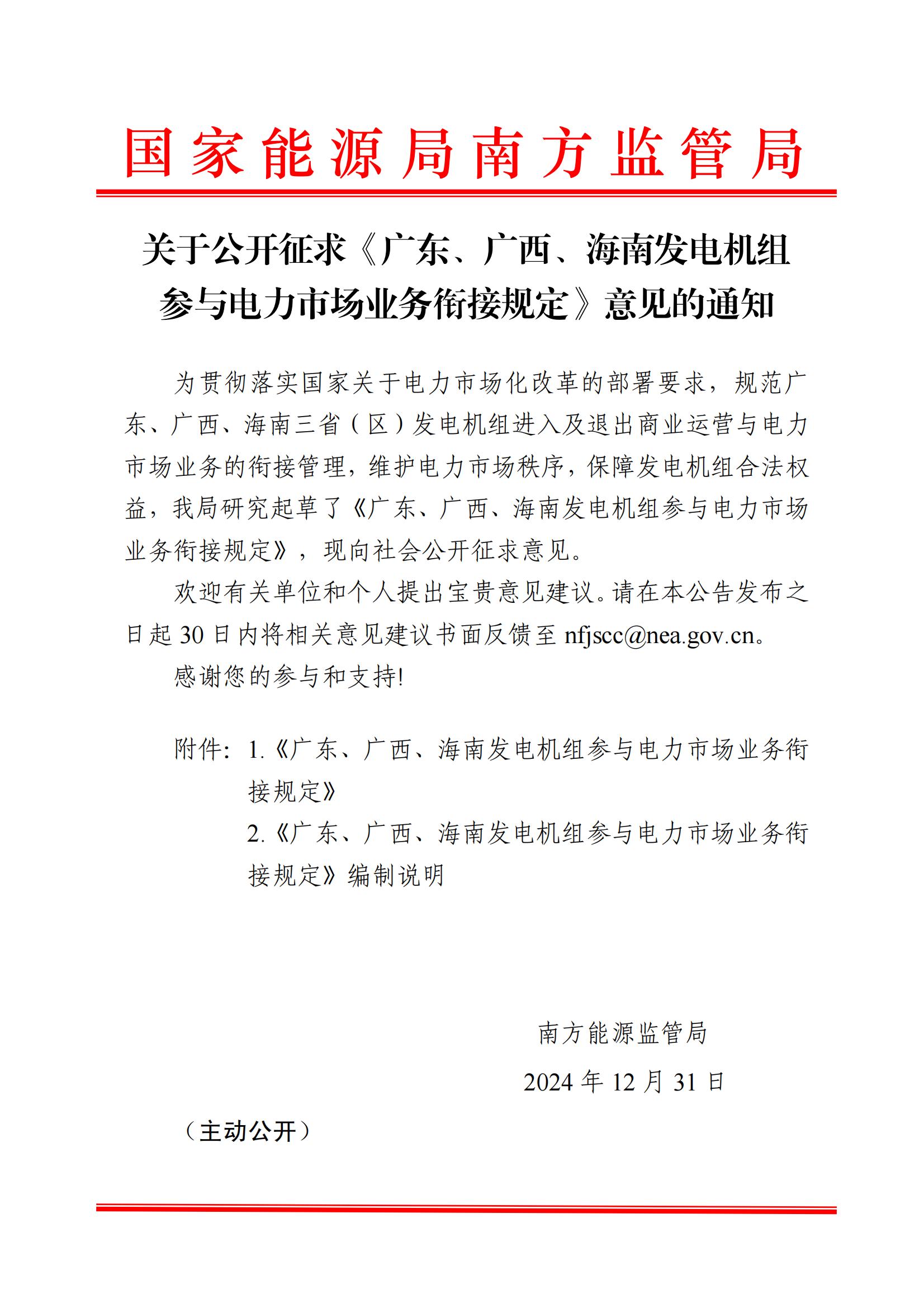 《廣東、廣西、海南發(fā)電機(jī)組進(jìn)入及退出商業(yè)運(yùn)營(yíng)與電力市場(chǎng)業(yè)務(wù)銜接規(guī)則》意見通知發(fā)布2025-02-07 12:41來源:gessey瀏覽數(shù):222次