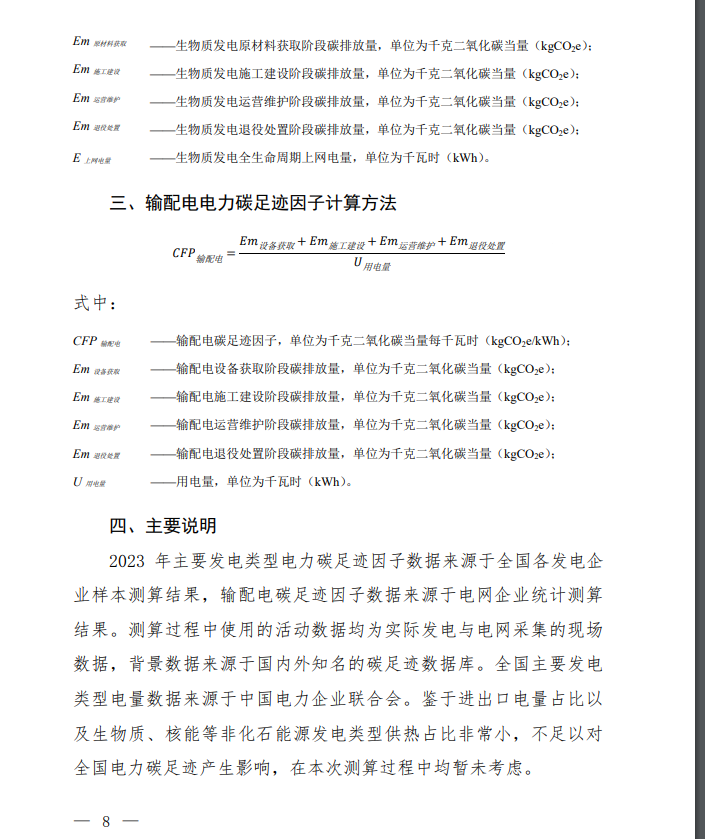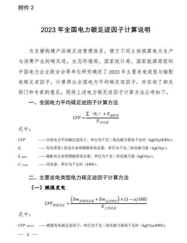 2025年1月17日,生態(tài)環(huán)境部、國家統(tǒng)計局、國家能源局發(fā)布《關(guān)于發(fā)布2023年電力碳足跡因子數(shù)據(jù)的公告》,公告指出,為落實《關(guān)于建立碳足跡管理體系的實施方案》相關(guān)要求,生態(tài)環(huán)境部、國家統(tǒng)計局、國家能源局組織中國電力企業(yè)聯(lián)合會等單位計算了2023年燃煤發(fā)電、燃?xì)獍l(fā)電、水力發(fā)電、核能發(fā)電、風(fēng)力發(fā)電、光伏發(fā)電、光熱發(fā)電、生物質(zhì)發(fā)電碳足跡因子和輸配電碳足跡因子以及全國電力平均碳足跡因子,供各行業(yè)產(chǎn)品核算電力生產(chǎn)和消費產(chǎn)生的碳足跡使用。 詳情如下: