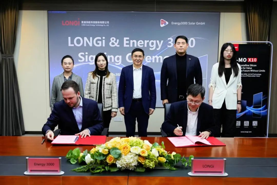 2月11日,歐洲光伏產(chǎn)品分銷商Energy 3000 Solar GmbH(以下簡稱“Energy 3000”)與隆基綠能科技股份有限公司(以下簡稱“隆基”),在隆基西安總部正式簽署了戰(zhàn)略合作協(xié)議。 隆基& Energy 3000戰(zhàn)略合作簽約現(xiàn)場 重磅簽約,合作進(jìn)階 Energy 3000副總裁Michael Bairhuber、供應(yīng)鏈總監(jiān)郭文綺,隆基董事長鐘寶申、分布式事業(yè)群總裁蔣東宇、歐洲業(yè)務(wù)中心西歐代表處總經(jīng)理李曉朋共同出席簽約儀式。Michael Bairhuber、蔣東宇代表雙方在協(xié)議上簽字。 此次簽約,成為隆基與Energy 3000進(jìn)一步增強(qiáng)合作伙伴關(guān)系的重要里程碑,標(biāo)志著雙方的合作關(guān)系再上新臺階。根據(jù)協(xié)議,隆基將持續(xù)向Energy 3000提供100MW的Hi-MO X10組件。這是在此前1.5GW的框架合作之后,再次簽署供貨協(xié)議。雙方將充分發(fā)揮各自優(yōu)勢,推動高價值BC二代產(chǎn)品在歐洲市場的更多應(yīng)用,切實履行對推動可再生能源發(fā)展、助力能源轉(zhuǎn)型的共同承諾。 Energy 3000成立于2007年,是歐洲光伏和儲能領(lǐng)域領(lǐng)先的能源解決方案和服務(wù)提供商,致力于可再生能源領(lǐng)域的技術(shù)研發(fā)與項目開發(fā),業(yè)務(wù)覆蓋項目設(shè)計與規(guī)劃、戶用及工商業(yè)企業(yè)分布式電站、大型電站項目的解決方案優(yōu)化管理等。 作為全球領(lǐng)先的綠色能源科技公司,隆基性能出眾、質(zhì)量可靠的組件產(chǎn)品,與專業(yè)、細(xì)致的本地化服務(wù)能力,贏得了Energy 3000的信賴與認(rèn)可。 技術(shù)賦能,優(yōu)勢盡顯 由隆基供貨的Hi-MO X10組件,基于HPBC 2.0電池技術(shù)打造,搭載隆基高品質(zhì)泰睿硅片,發(fā)電性能、可靠性、客戶收益及美觀性實現(xiàn)了全面領(lǐng)先。 Hi-MO X10組件最高量產(chǎn)功率達(dá)670W,同等面積之上較TOPCon組件功率高30W以上,量產(chǎn)組件效率最高可達(dá)24.8%,充分釋放有限安裝面積的發(fā)電潛力,為客戶帶來更高的安裝容量與更多的發(fā)電輸出,大幅提高發(fā)電收益。 Hi-MO X10還兼具美觀和安全兩大核心優(yōu)勢,在正面無柵線的基礎(chǔ)上,進(jìn)一步做到了背面無主柵,締造組件純粹高級的外觀,能夠匹配不同建筑風(fēng)格;類旁路二極管結(jié)構(gòu)和弱導(dǎo)通設(shè)計,大幅降低組件在面臨陰影遮擋時的熱斑形成風(fēng)險,確保組件安全穩(wěn)定運行。 與此同時,隆基為客戶提供產(chǎn)品全生命周期的質(zhì)量保障和可靠服務(wù),護(hù)航客戶的長期價值收益。 簽約儀式結(jié)束后,雙方合影留念 聚力同行,共啟新程。隆基卓越的技術(shù)與產(chǎn)品優(yōu)勢,與Energy 3000深厚的市場與服務(wù)能力強(qiáng)強(qiáng)聯(lián)合,不僅有力助益雙方新能源事業(yè)拓展,還將為歐洲客戶提供更優(yōu)質(zhì)、更高效的光伏解決方案,為當(dāng)?shù)氐哪茉崔D(zhuǎn)型注入強(qiáng)勁動能。