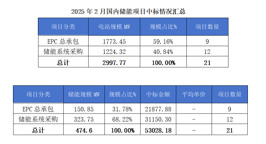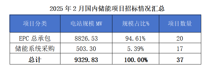 2025年2月國內(nèi)儲(chǔ)能項(xiàng)目招投標(biāo)分析2025-03-21 13:51來源:gessey瀏覽數(shù):364次