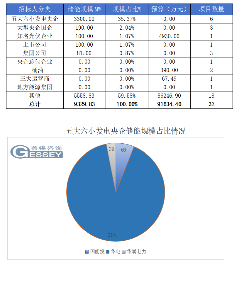 一、儲(chǔ)能項(xiàng)目招標(biāo)情況匯總: 根據(jù)Gessey蓋錫咨詢統(tǒng)計(jì),2025年2月累計(jì)儲(chǔ)能項(xiàng)目招標(biāo)為37個(gè),項(xiàng)目規(guī)模合計(jì)為9329.83MW。EPC總承包招標(biāo)項(xiàng)目為20個(gè),招標(biāo)規(guī)模為8826.53MW,儲(chǔ)能系統(tǒng)采購招標(biāo)項(xiàng)目為17個(gè),招標(biāo)規(guī)模為503.30MW。 本周招標(biāo)項(xiàng)目需求按照招標(biāo)場景地分布,EPC總承包主要集中在遼寧、廣西、云南、浙江等地區(qū),即主要集中在南部、東北部地區(qū);儲(chǔ)能系統(tǒng)采購主要集中在青海、新疆、山東等地區(qū),即主要集中在西部地區(qū)。 二、招標(biāo)人分類情況 除其他以外最大規(guī)模招標(biāo)為五大六小發(fā)電央企。 三、中標(biāo)項(xiàng)目匯總情況 本月儲(chǔ)能EPC總承包中標(biāo)電站規(guī)模達(dá)1773.45MW,儲(chǔ)能規(guī)模達(dá)150.85MW,中標(biāo)數(shù)量9個(gè)。 本月儲(chǔ)能系統(tǒng)采購中標(biāo)電站規(guī)模達(dá)1224.32MW,儲(chǔ)能規(guī)模達(dá)323.75MW,中標(biāo)數(shù)量12個(gè)。 已知的多數(shù)項(xiàng)目電池要求為磷酸鐵鋰電池。 四、中標(biāo)人分類情況 最大規(guī)模招標(biāo)為五大六小發(fā)電央企。 五、2025年2月中標(biāo)企業(yè)儲(chǔ)能中標(biāo)排名 上一篇: Gessey:3月21日每日光伏市場行情