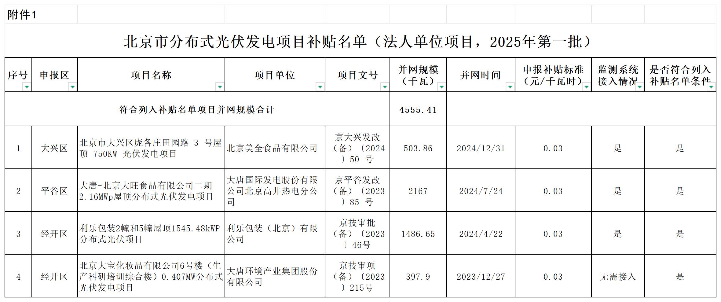北京2025年第一批分布式光伏項(xiàng)目補(bǔ)貼名單公布!2025-03-25 10:34來(lái)源:gessey瀏覽數(shù):229次