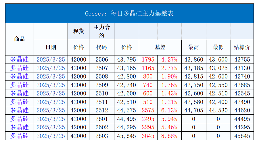 現(xiàn)貨市場(chǎng)價(jià)格變動(dòng): 多晶硅: 今日硅料價(jià)格整體維穩(wěn),N型料主流價(jià)格在40-45元/公斤,均價(jià)42元/公斤。N型顆粒硅主流價(jià)格在38-40元/公斤,均價(jià)39元/公斤。國(guó)產(chǎn)復(fù)投特級(jí)硅料主流價(jià)格在33-36元/公斤,均價(jià)35元/公斤,國(guó)產(chǎn)致密特級(jí)硅料主流價(jià)格在32-35元/公斤,均價(jià)34元/公斤。 硅片: 今日硅片價(jià)格整體維穩(wěn), 182mm單晶硅片主流現(xiàn)貨價(jià)格維持1-1.15元/片,均價(jià)1.08元/片。210mm單晶硅片主流現(xiàn)貨價(jià)格維持1.6-1.7元/片,均價(jià)1.65元/片。N型-183.75mm單晶硅片主流現(xiàn)貨價(jià)格維持1.18-1.2元/片,均價(jià)1.2元/片。N型-210mm單晶硅片主流現(xiàn)貨價(jià)格維持1.5-1.55元/片,均價(jià)1.55元/片。N型-210Rmm單晶硅片主流現(xiàn)貨價(jià)格1.35-1.45元/片,均價(jià)1.4元/片。 電池片: 今日電池片價(jià)格整體維穩(wěn),23%以上183.75mm尺寸雙面單晶perc主流價(jià)格在0.27-0.29元/瓦,均價(jià)0.275元/瓦。23%以上210mm雙面單晶perc主流價(jià)格在0.28-0.3元/瓦,均價(jià)0.28元/瓦。24.3%以上183.75mm雙面Topcon電池片主流價(jià)格在0.295-0.305元/瓦,均價(jià)0.3元/瓦。24.3%以上210mm雙面Topcon電池片主流價(jià)格在0.29-0.31元/瓦,均價(jià)0.305元/瓦。24.3%以上210Rmm雙面Topcon電池片主流價(jià)格在0.3-0.35元/瓦,均價(jià)0.35元/瓦。 組件: 今日組件價(jià)格小幅上漲,雙面單晶perc組件(182系列)價(jià)格在0.6-0.67元/ 瓦,均價(jià)為0.665元/瓦。雙面單晶perc組件(210系列)價(jià)格在0.62-0.68元/ 瓦,均價(jià)為0.67元/瓦。N型雙面Topcon 組件(182系列)價(jià)格在0.72-0.77元/ 瓦,均價(jià)為0.75元/瓦,上漲4.17%。N型雙面Topcon 組件(210系列)價(jià)格在0.72-0.78元/ 瓦,均價(jià)為0.75元/瓦,上漲3.45%。N型雙面HJT組件(210系列)價(jià)格在0.71-0.8元/ 瓦,均價(jià)為0.78元/瓦,上漲4%。中國(guó)區(qū)分布式項(xiàng)目(≥580W)價(jià)格在0.68-0.79元/瓦,均價(jià)為0.75元/瓦,中國(guó)區(qū)集中式項(xiàng)目(≥585W)價(jià)格在0.67-0.73元/ 瓦,均價(jià)為0.7元/瓦。歐洲港口現(xiàn)貨價(jià)格在0.088-0.96美元/ 瓦,均價(jià)為0.092美元/瓦。印度港口現(xiàn)貨價(jià)格在0.086-0.22美元/ 瓦,均價(jià)為0.21美元/瓦。美國(guó)港口現(xiàn)貨價(jià)格在0.26-0.28美元/ 瓦,均價(jià)為0.265美元/瓦。 玻璃: 今日玻璃價(jià)格小幅上漲,3.2mm雙層鍍膜光伏玻璃價(jià)格在22-23.5元/ 平方米,均價(jià)為22元/ 平方米,上漲10%。2.0mm雙層鍍膜光伏玻璃價(jià)格在12.5-14元/ 平方米,均價(jià)為13.5元/ 平方米,上漲3.85%。 聚焦今日核心價(jià)格波動(dòng): 今日組件價(jià)格小幅上漲 N型雙面Topcon 組件(182系列)價(jià)格在0.72-0.77元/ 瓦,均價(jià)為0.75元/瓦,上漲4.17%。 N型雙面Topcon 組件(210系列)價(jià)格在0.72-0.78元/ 瓦,均價(jià)為0.75元/瓦,上漲3.45%。 N型雙面HJT組件(210系列)價(jià)格在0.71-0.8元/ 瓦,均價(jià)為0.78元/瓦,上漲4%。 今日玻璃價(jià)格小幅上漲 3.2mm雙層鍍膜光伏玻璃價(jià)格在22-23.5元/ 平方米,均價(jià)為22元/ 平方米,上漲10%。 2.0mm雙層鍍膜光伏玻璃價(jià)格在12.5-14元/ 平方米,均價(jià)為13.5元/ 平方米,上漲3.85%。 今日光伏組件市場(chǎng)延續(xù)強(qiáng)勢(shì)表現(xiàn),主流企業(yè)報(bào)價(jià)普遍企穩(wěn)于0.75元/瓦及以上,部分 N 型615W+高功率產(chǎn)品報(bào)價(jià)突破0.78元/瓦。市場(chǎng)成交活躍度顯著提升,尤其是分布式項(xiàng)目集中釋放的搶裝需求是本輪價(jià)格上漲的主要?jiǎng)恿?,目前?lái)看,目前主流企業(yè)訂單排期已至4月下旬至5月初。 今日玻璃報(bào)價(jià)繼續(xù)調(diào)漲0.5元/平方米。由于組件企業(yè) 4 月排產(chǎn)計(jì)劃環(huán)比增幅達(dá) 25%,主流企業(yè)企業(yè)產(chǎn)能利用率普遍回升至 95% 以上,幾乎接近滿產(chǎn),從而帶動(dòng)玻璃訂單量激增?;谟唵位嘏?,玻璃廠預(yù)期后續(xù)4月仍有上漲空間。 期貨市場(chǎng) 行情走勢(shì):主力合約收盤(pán)價(jià)為43795元 / 噸,前結(jié)算價(jià)為43590元/噸,收盤(pán)價(jià)較前結(jié)算價(jià)漲幅為0.47% ,收盤(pán)價(jià)較開(kāi)盤(pán)價(jià)漲155元/噸,漲幅為0.36%,成交量為9404手,持倉(cāng)量為27517手。