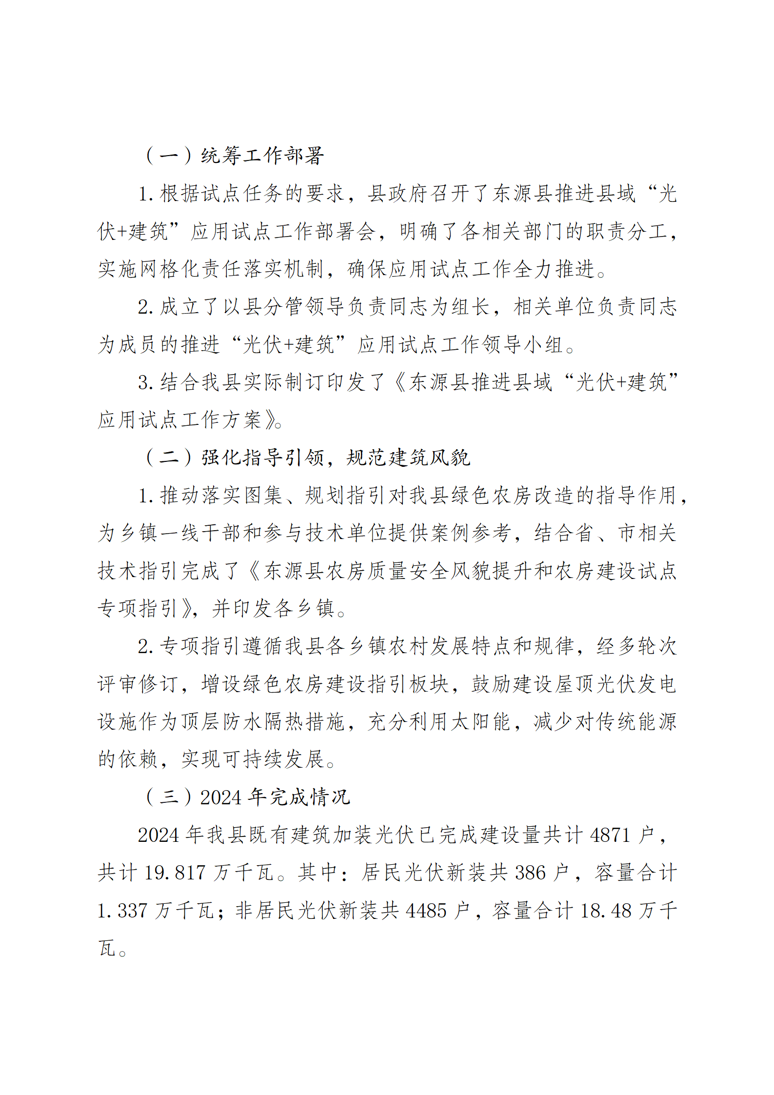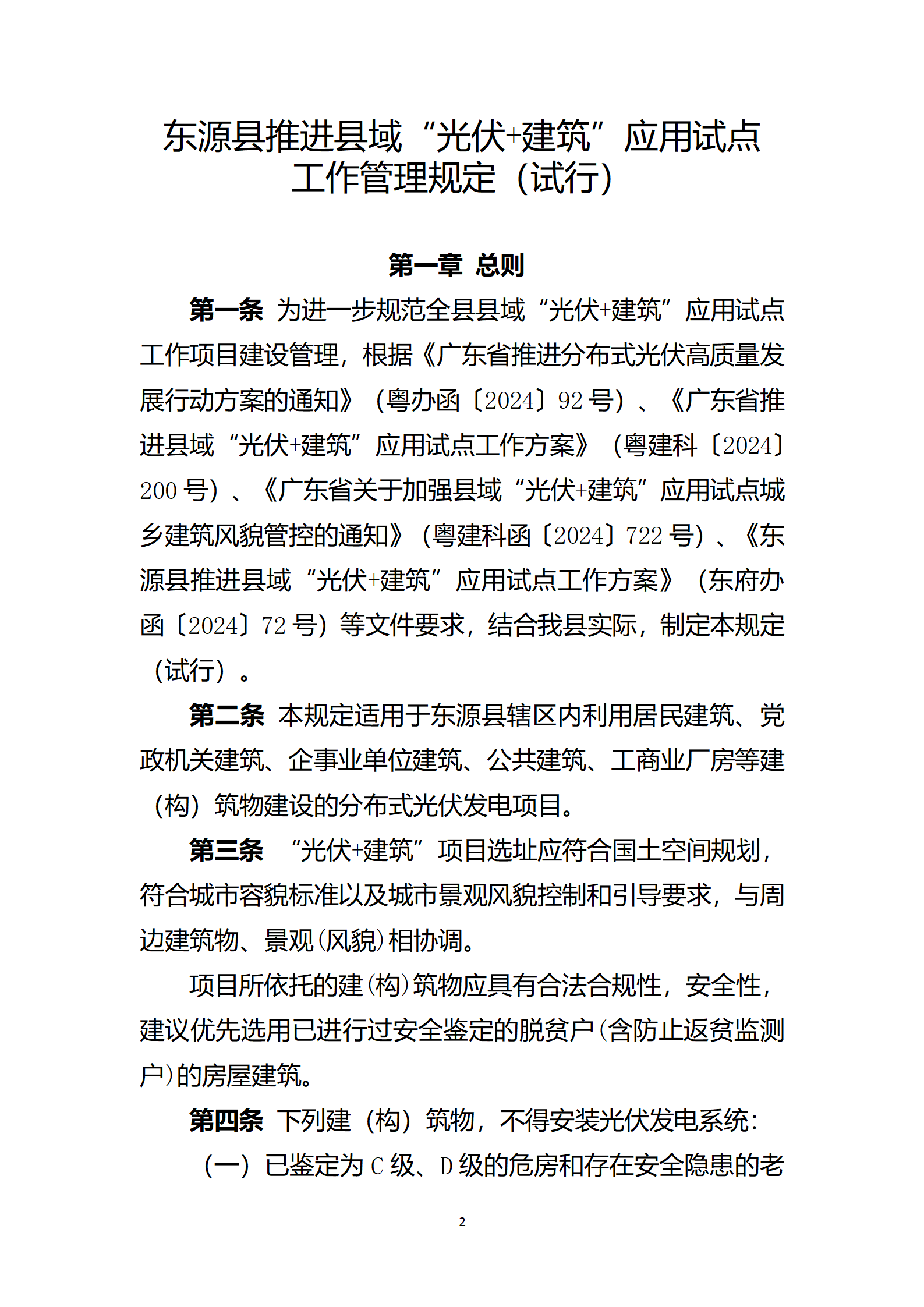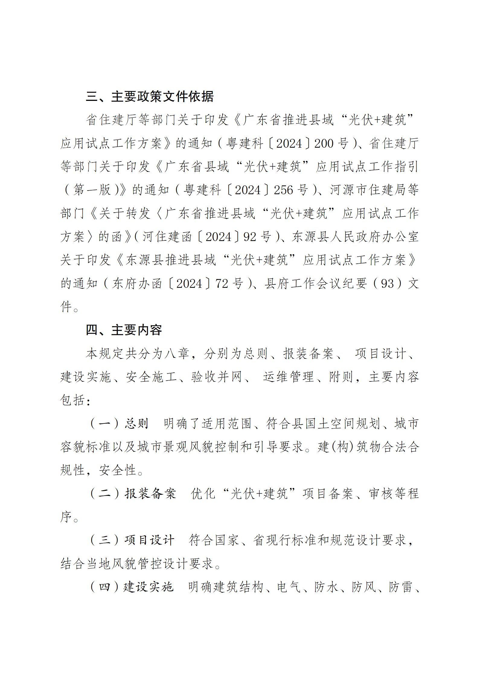 4月1日,廣東省東源縣住房和城鄉(xiāng)建設(shè)局發(fā)布關(guān)于公開征求《東源縣推進(jìn)縣域“光伏+建筑”應(yīng)用試點(diǎn)工作管理規(guī)定(試行)》(征求意見稿)意見的公告。 意見稿對在實(shí)施“光伏+建筑”項(xiàng)目的報(bào)裝備案、項(xiàng)目設(shè)計(jì)標(biāo)準(zhǔn)和規(guī)范、施工建設(shè)標(biāo)準(zhǔn)、安全生產(chǎn)、驗(yàn)收并網(wǎng)、運(yùn)維管理提出了具體要求。 文件指出,下列建(構(gòu))筑物,不得安裝光伏發(fā)電系統(tǒng): (一)已鑒定為C級(jí)、D級(jí)的危房和存在安全隱患的老舊房屋; (二)火災(zāi)危險(xiǎn)性分類為甲類、乙類的建筑; (三)周邊存在大量粉塵和腐蝕氣體的建筑; (四)已列入拆遷計(jì)劃的建筑; (五)文物建筑; (六)風(fēng)景名勝區(qū)、歷史建筑的核心保護(hù)范圍、傳統(tǒng)村落、文物保護(hù)單位保護(hù)范圍和建控地帶內(nèi)安裝后對整體風(fēng)貌造成不良影響的建筑。 (七)其它不宜加裝光伏的建(構(gòu))筑物。 原文見下: 關(guān)于公開征求《東源縣推進(jìn)縣域“光伏+建筑”應(yīng)用試點(diǎn)工作管理規(guī)定(試行)》(征求意見稿)意見的公告 根據(jù)《廣東省推進(jìn)縣域“光伏+建筑”應(yīng)用試點(diǎn)工作方案的通知》(粵建科〔2024〕200號(hào)),縣府工作會(huì)議紀(jì)要(93)文件的要求,根據(jù)縣人民政府工作安排,我局研究起草了《東源縣推進(jìn)縣域“光伏+建筑”應(yīng)用試點(diǎn)工作管理規(guī)定(試行)》( 征求意見稿),現(xiàn)向社會(huì)公開征求意見,具體事項(xiàng)明確如下: 一、征求意見時(shí)間:2025年3月31日—2025年4月21日 二、提交意見方式:各界人士可通過信函或電子郵件形式提出意見和建議,郵件標(biāo)題及信封請注明《東源縣推進(jìn)縣域“光伏+建筑”應(yīng)用試點(diǎn)工作管理規(guī)定(試行)》(征求意見稿)意見。 (一)電子郵件:發(fā)送至電子郵箱dyzjjng@163.com (二)書面信函:請郵寄至廣東省河源市東源縣建設(shè)一路,郵編:517500;聯(lián)系電話:0762-8831537 附件:1.東源縣推進(jìn)縣域“光伏十建筑”應(yīng)用試點(diǎn)工作管理規(guī)定(試行).wps 2.東源縣縣域“光伏十建筑”試點(diǎn)工作項(xiàng)目申請表.docx 3.《關(guān)于東源縣推進(jìn)縣域“光伏十建筑”應(yīng)用試點(diǎn)工作管理規(guī)定(試行)(審議稿)》的起草說明.docx 東源縣住房和城鄉(xiāng)建設(shè)局 2025年3月28日