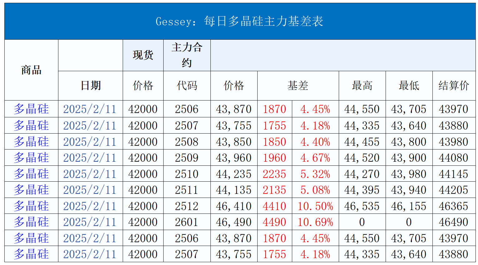 2月11日多晶硅主力基差表