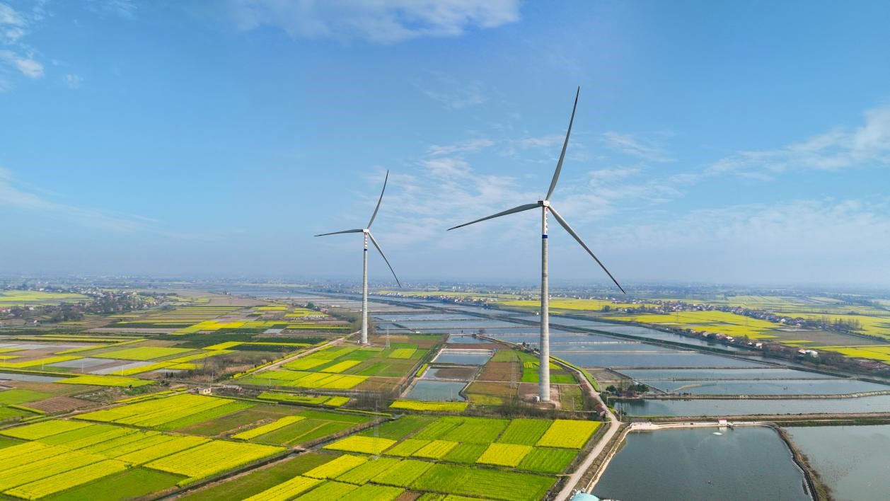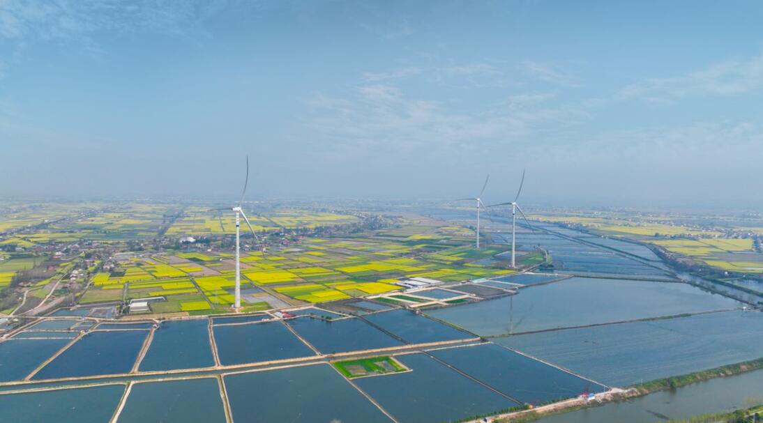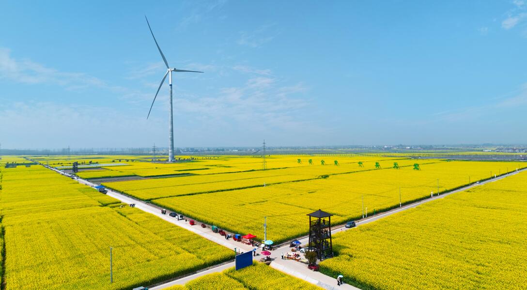 最美四月天,湖南鼎城十美堂鎮(zhèn)的萬畝油菜花田迎來盛放季。金燦燦的花田中,白色風車隨風旋轉。這里是鼎城200MW風電場,由國家電投五凌電力、陽光新能源聯合投資建成,系湖南首個大型平原混塔風電場。