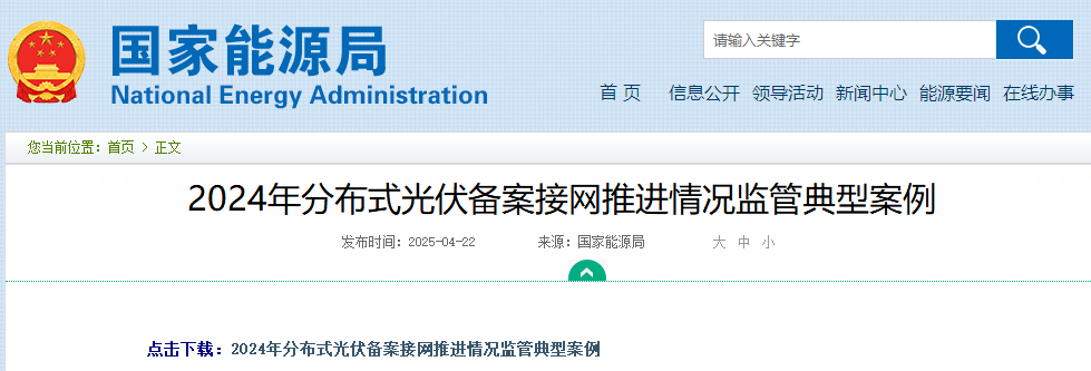 重磅!國家能源局通報11個省24項分布式光伏問題2025-04-22 14:37來源:gessey瀏覽數(shù):143次