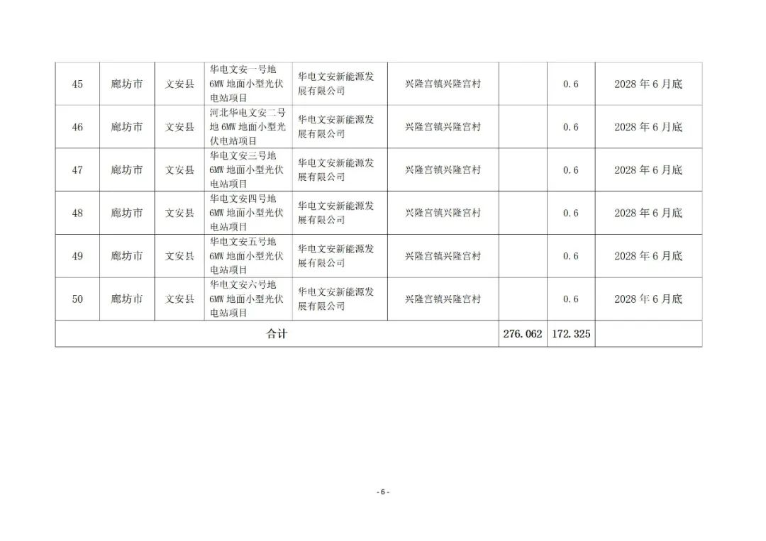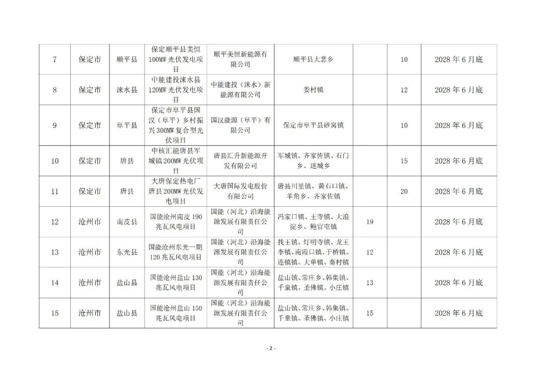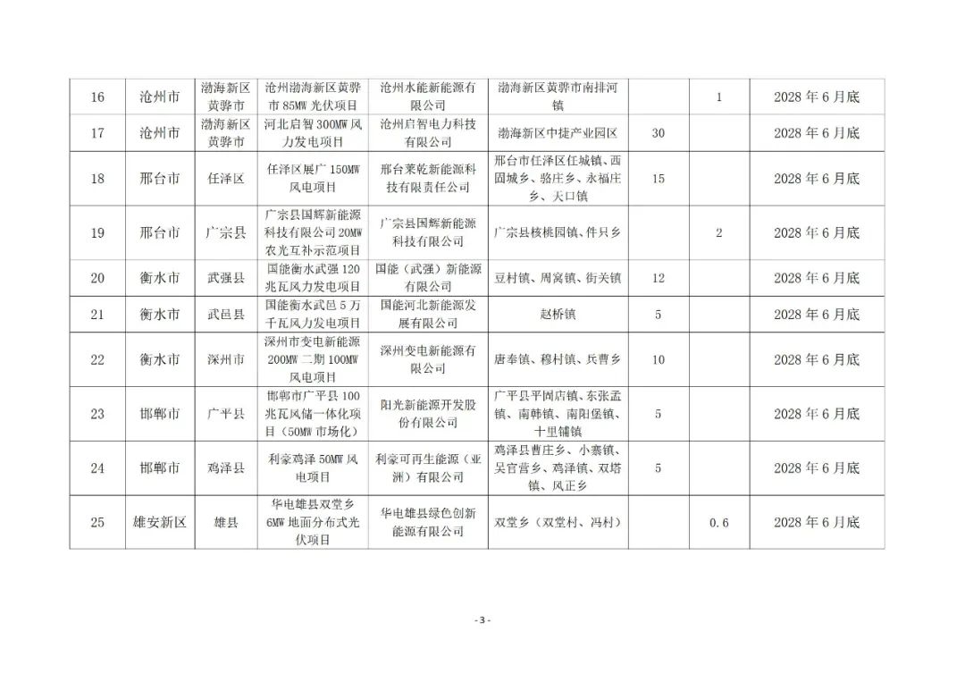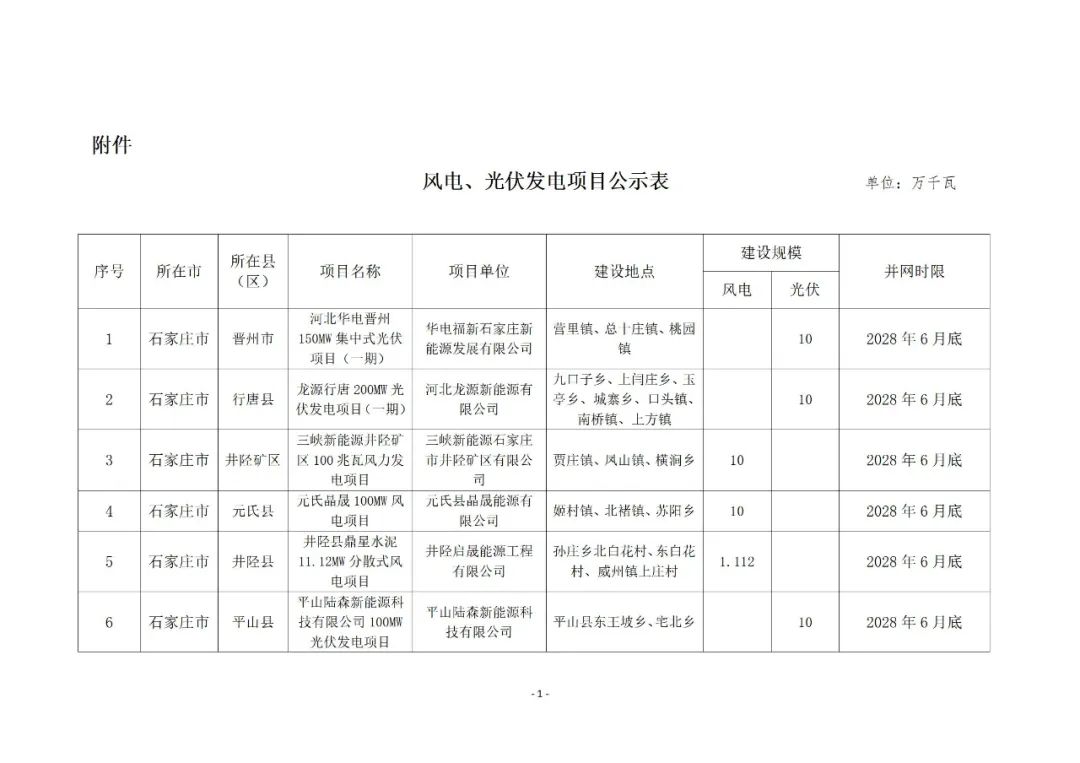 4月22日,河北發(fā)改委發(fā)布《河北省2025年風(fēng)電、光伏發(fā)電年度開發(fā)建設(shè)方案第一批擬安排項(xiàng)目情況公示》。本次擬公示項(xiàng)目共50個、448.387萬千瓦。其中,光伏項(xiàng)目172.325萬千瓦,風(fēng)電項(xiàng)目276.062萬千瓦。 從業(yè)主來看,國家能源集團(tuán)所獲規(guī)模最多,達(dá)到91萬千瓦,主要以風(fēng)電項(xiàng)目為主,華電集團(tuán)拿到64.4萬千瓦,華能集團(tuán)、北京國網(wǎng)電力技術(shù)股份有限公司及承德碩躍新能源所獲規(guī)模均超30萬千瓦,此外,晶科、晶澳、通威、陽光新能源等頭部光伏企業(yè)也參與其中。 該批項(xiàng)目最晚并網(wǎng)時(shí)限為2028年6月底,項(xiàng)目覆蓋石家莊、保定、滄州、邢臺、衡水、邯鄲、雄安新區(qū)等多個地級市。 全文見下: 河北省2025年風(fēng)電、光伏發(fā)電年度開發(fā)建設(shè)方案第一批擬安排項(xiàng)目情況公示 根據(jù)《關(guān)于組織申報(bào)2025年風(fēng)電、光伏發(fā)電年度開發(fā)建設(shè)方案第一批項(xiàng)目的通知》(冀發(fā)改能源〔2024〕1691號)要求,經(jīng)各市組織評審、電網(wǎng)公司對接入和消納條件確認(rèn)及第三方咨詢單位對基本要件審核,現(xiàn)對符合用地條件且電網(wǎng)公司出具支持意見的項(xiàng)目予以公示。本次擬公示項(xiàng)目共50個、448.387萬千瓦。具體名單見附件。 公示時(shí)間為2025年4月22日至4月26日。期間如有異議,請向省發(fā)展改革委(能源局)新能源處反映。 河北省發(fā)展和改革委員會 2025年4月22日 附件: