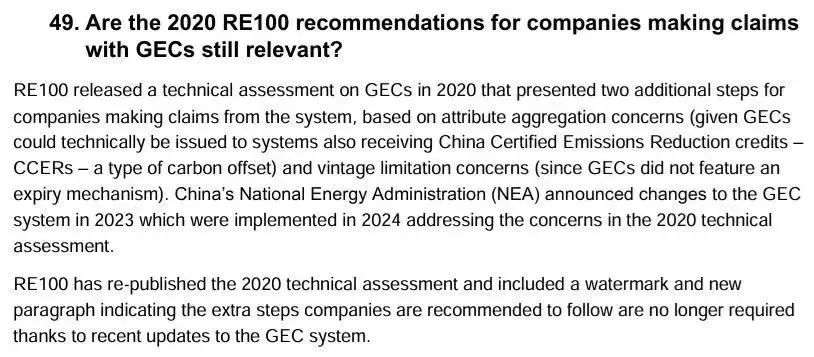 RE100 官網(wǎng)最新FAQ第49項內(nèi)容